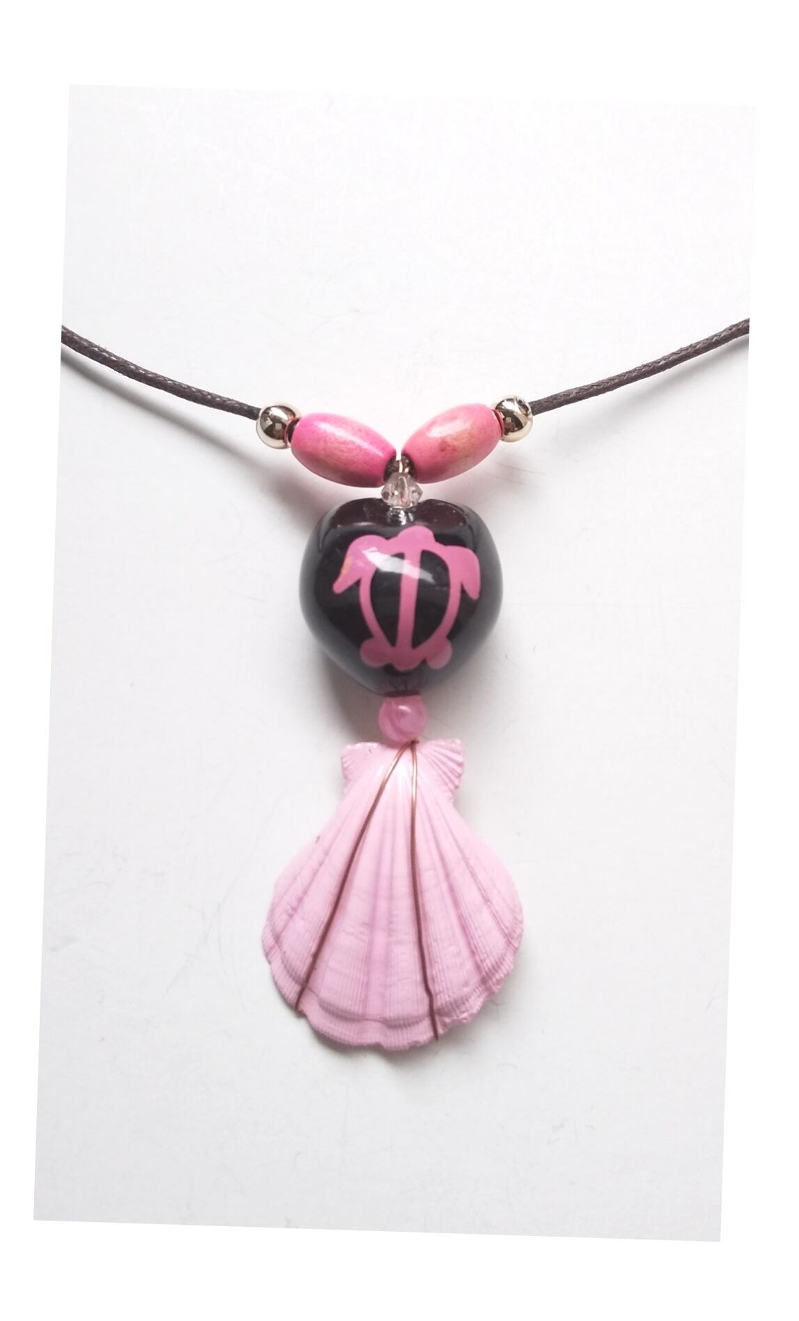 ハワイアンネックレス ククイホヌ&ピンクシェル ブラウン紐 S-322