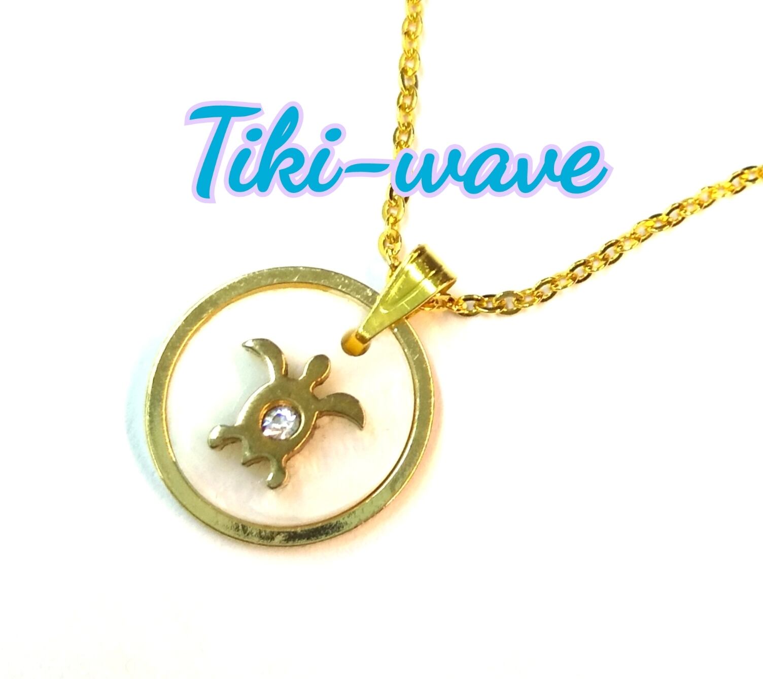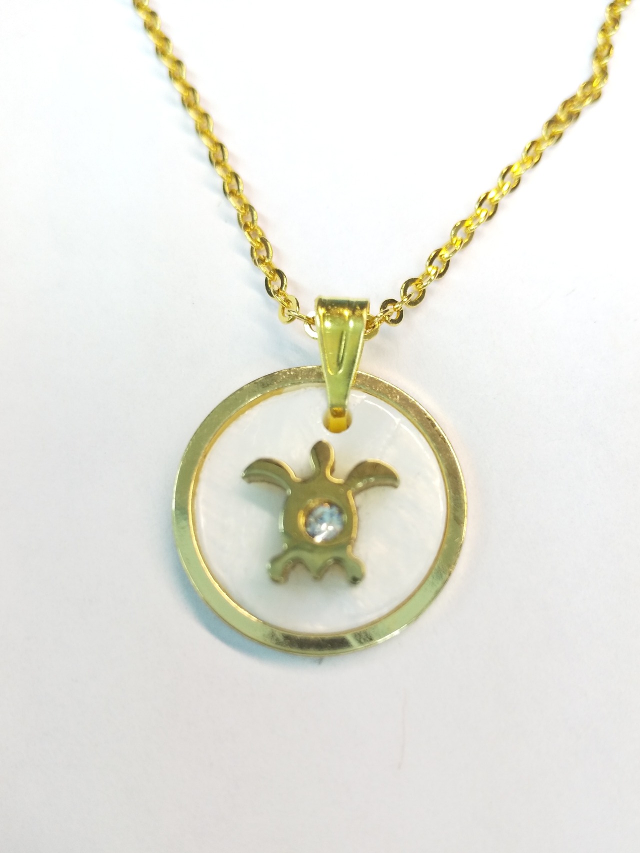 ハワイアンネックレス ゴールドカラーCZ付きホヌ&ホワイトシェル U-119