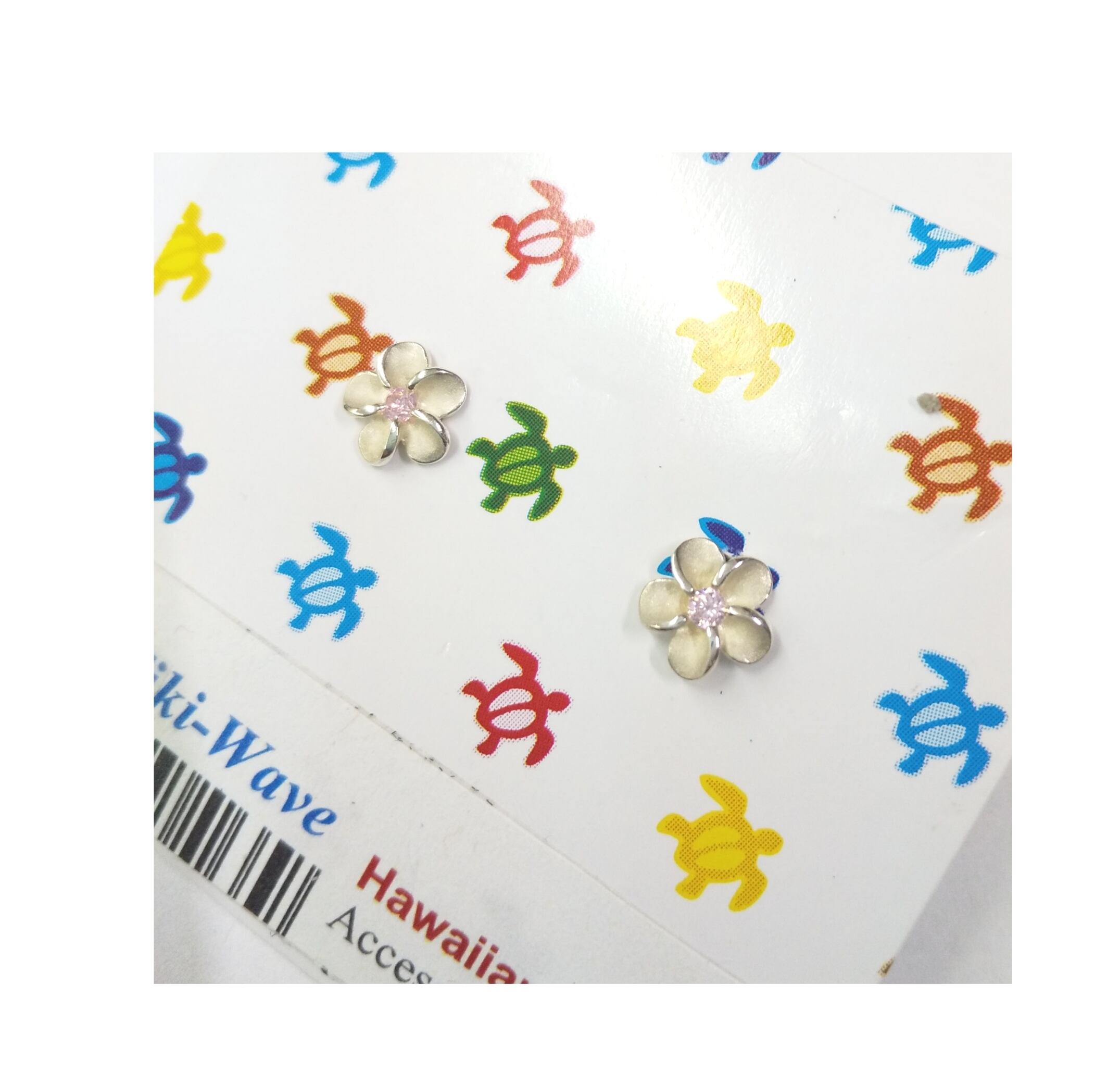 ハワイアクセサリー シルバー925 ピンクCZ プルメリア ピアス A-116