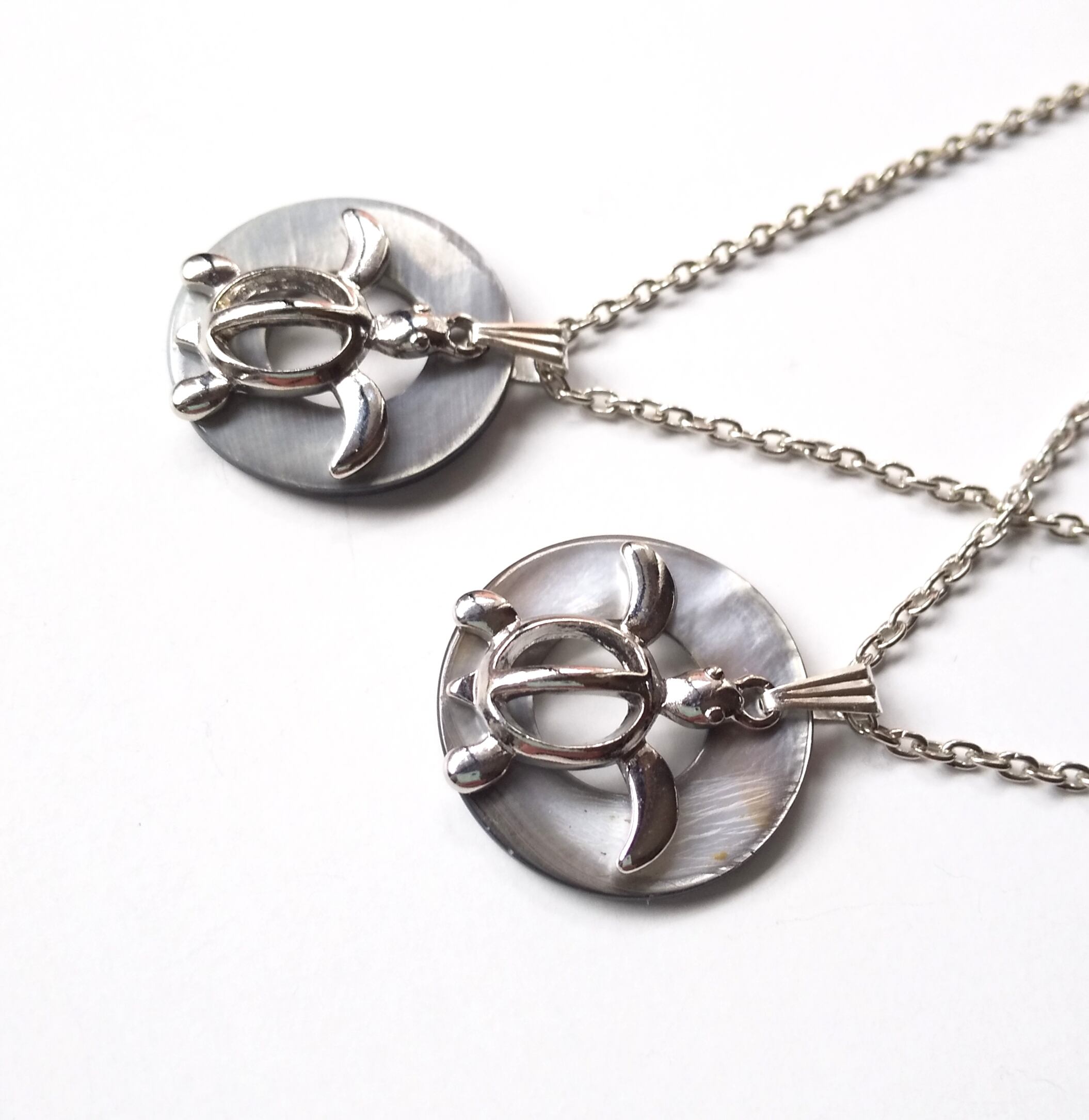ハワイアンペアネックレス シルバーカラーホヌ&グレーカラーシェル P-633