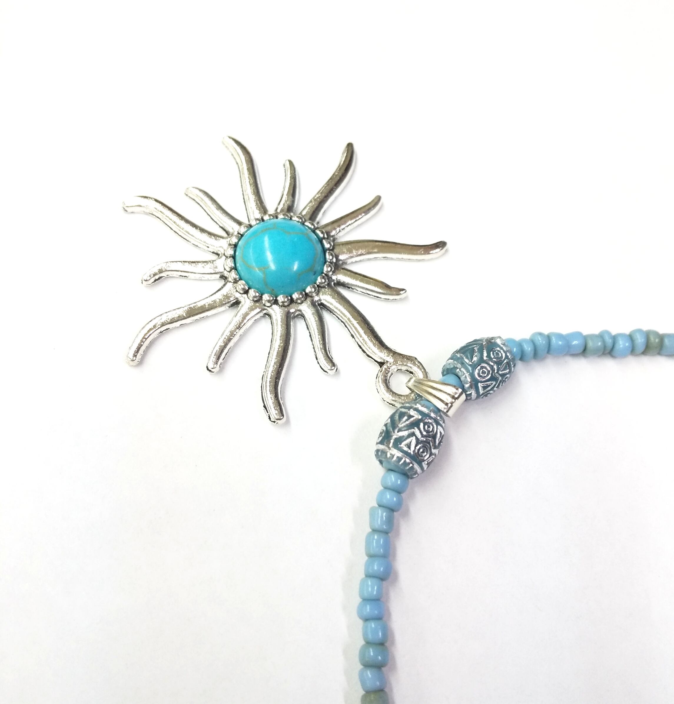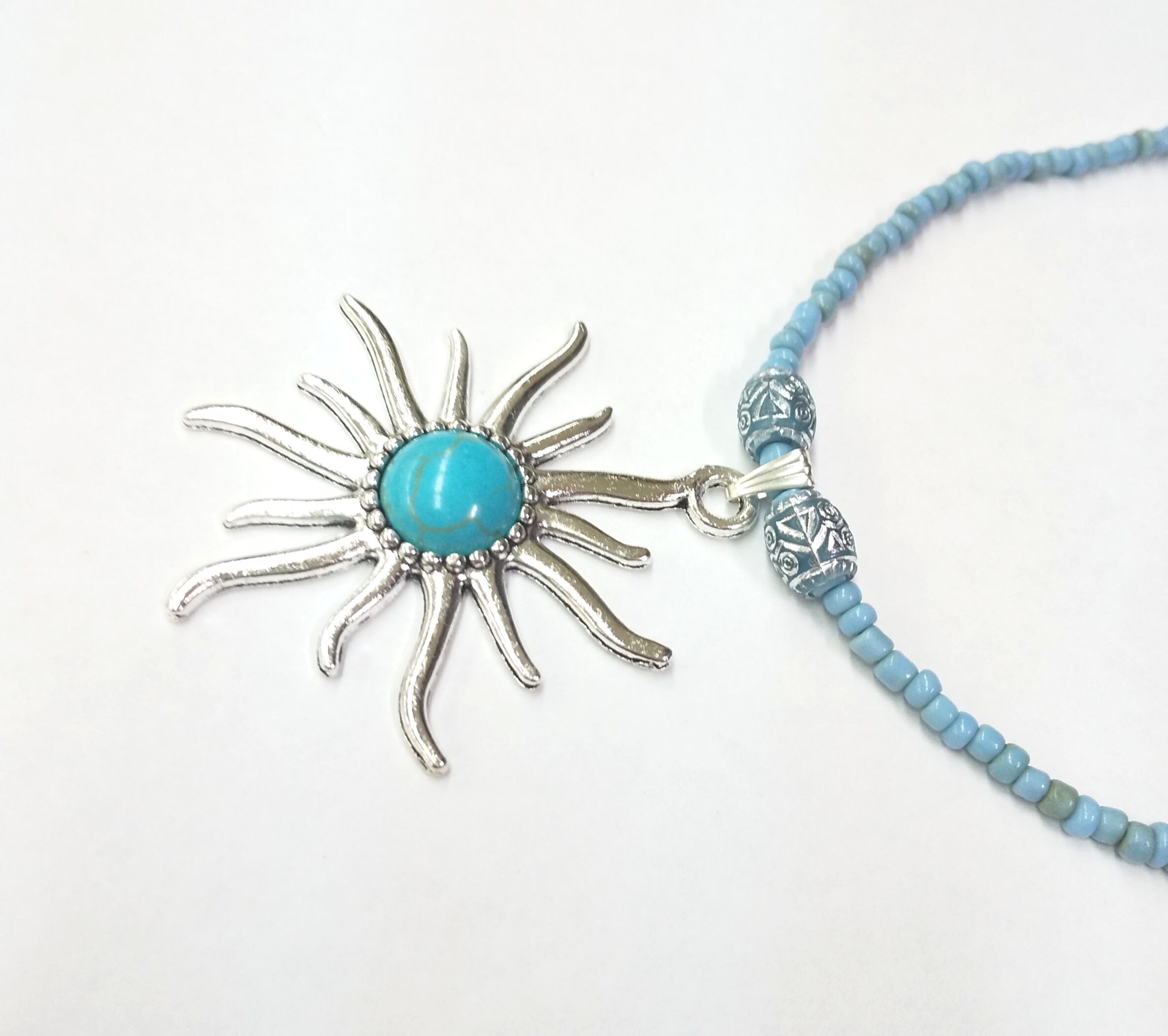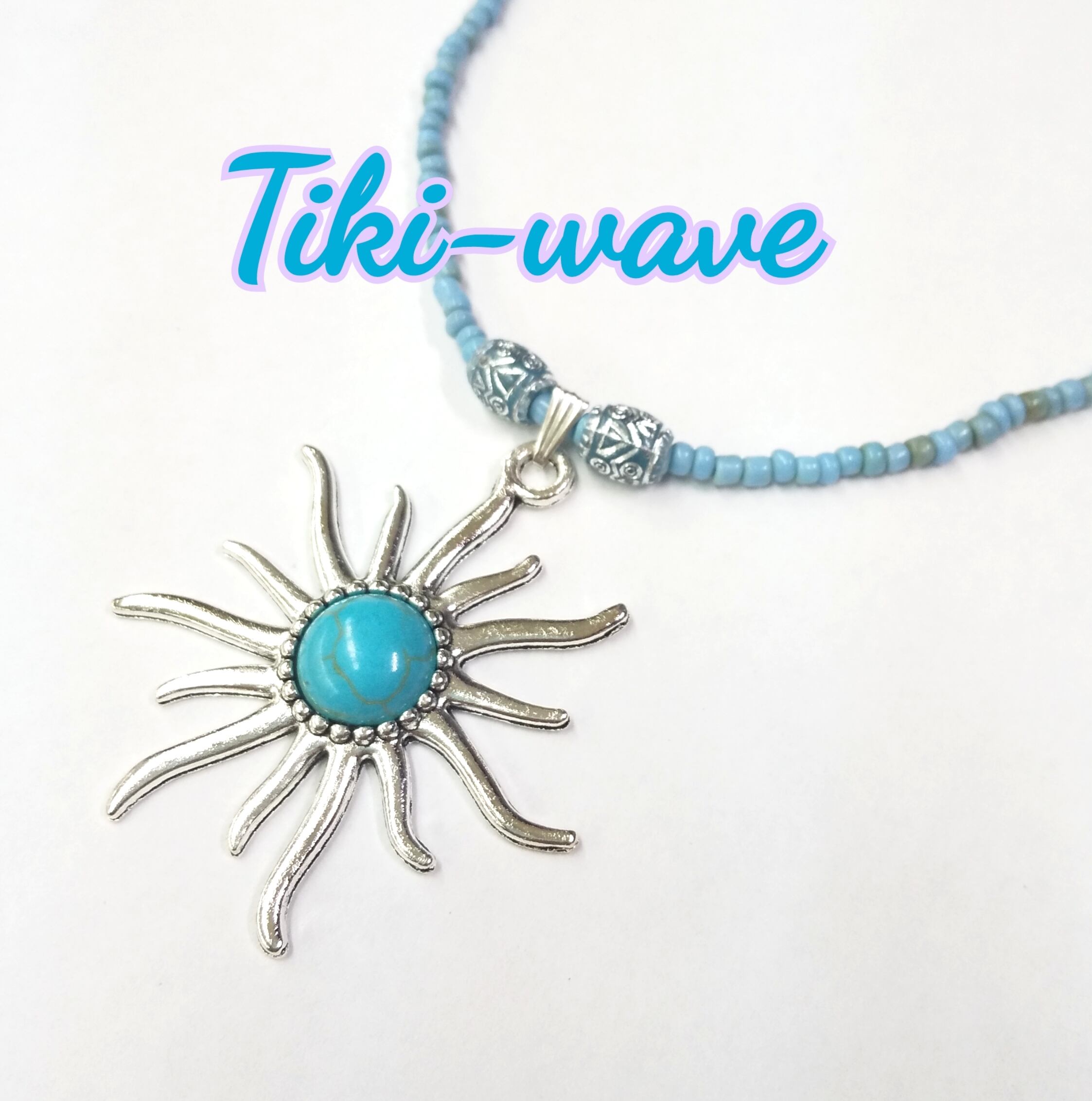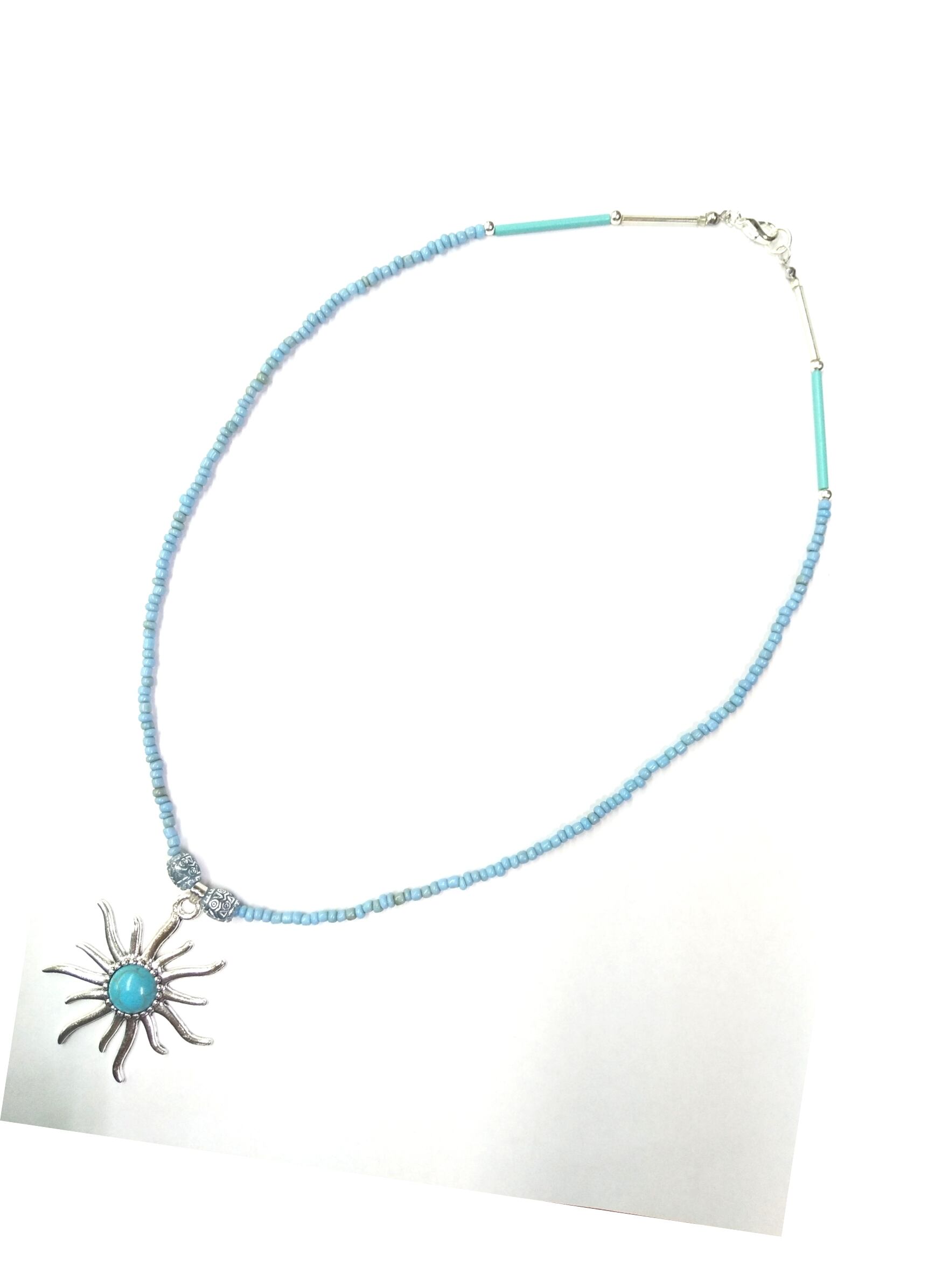 メンズネックレス ブルーターコイズ&シルバー ラジアルデザイン U-534