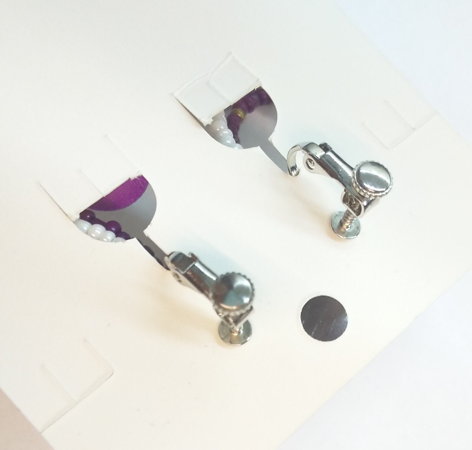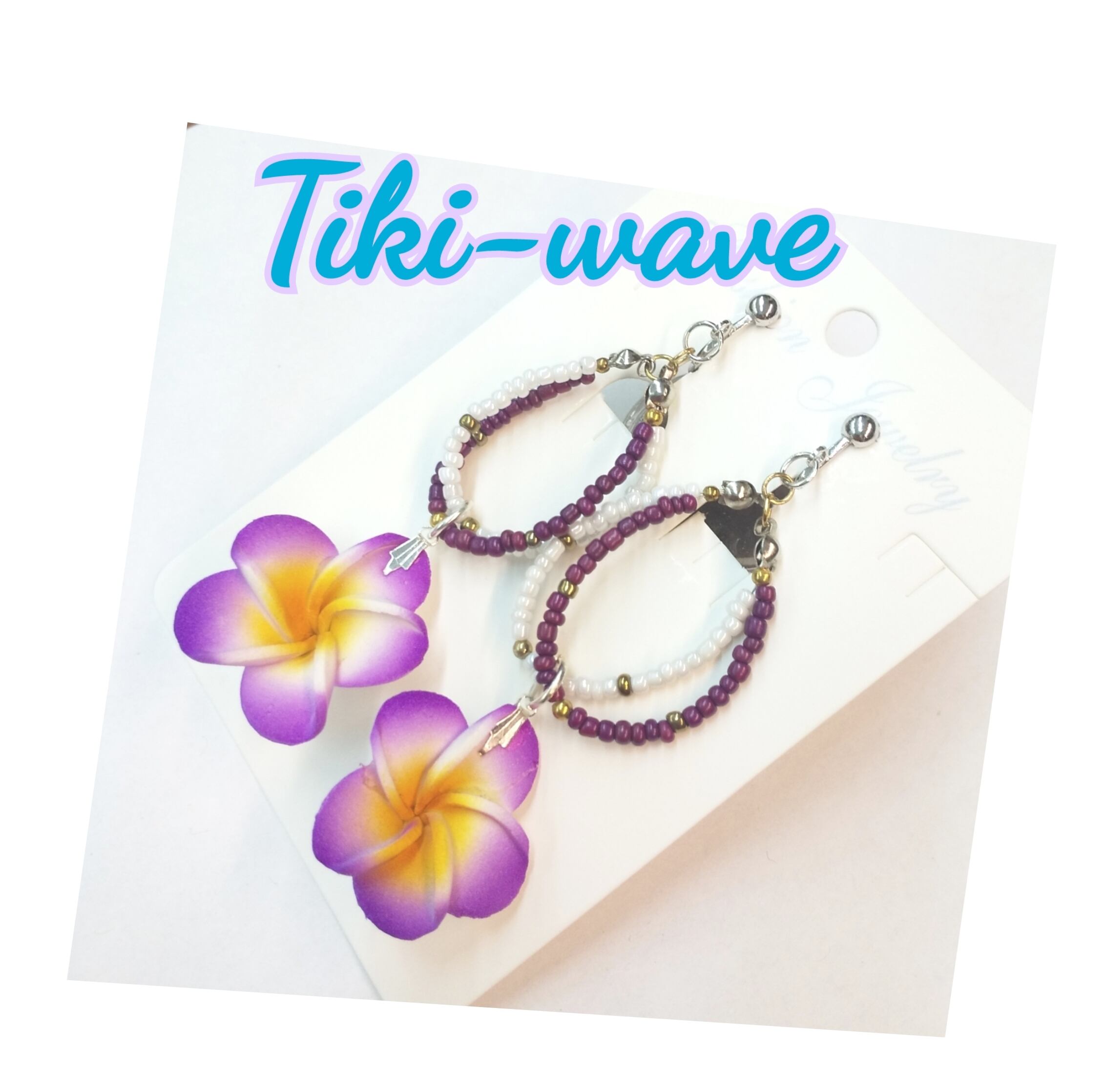 ハワイアンイヤリング ホワイト&パープルビーズ プルメリア A-118