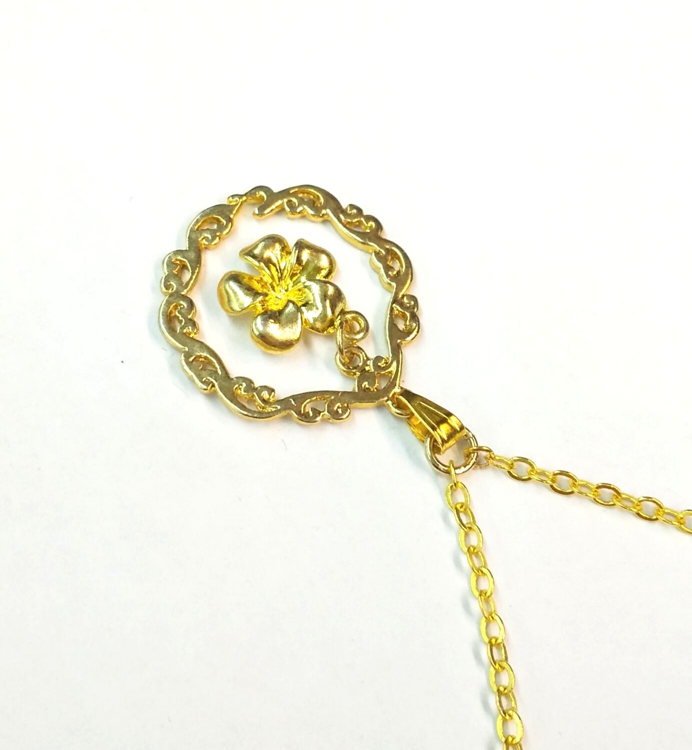 ハワイアンネックレス ゴールドカラー プルメリア&ウェーブ枠 P-634