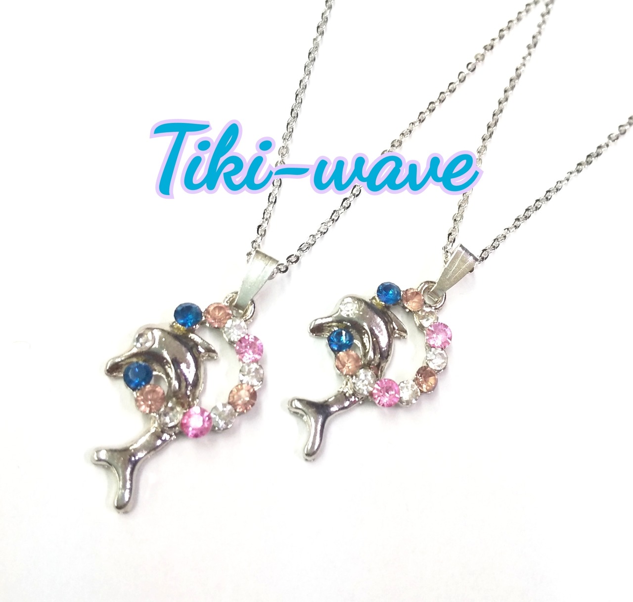 ハワイアンネックレス 2本ペア シルバードルフィン 4カラーCZ D-217