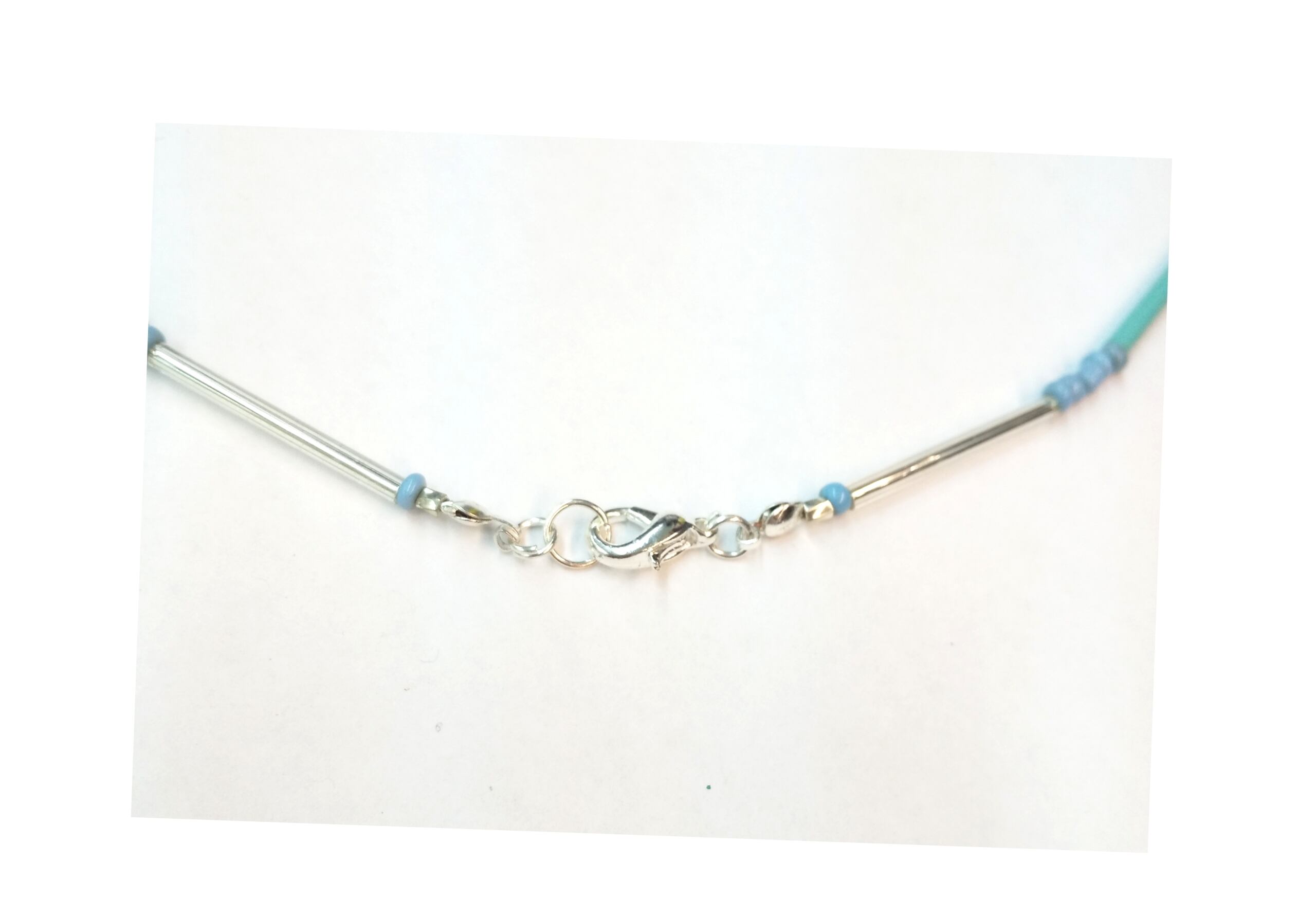 ネックレス ブルーターコイズ ドロップ&ボール シルバーガラスライン T-806