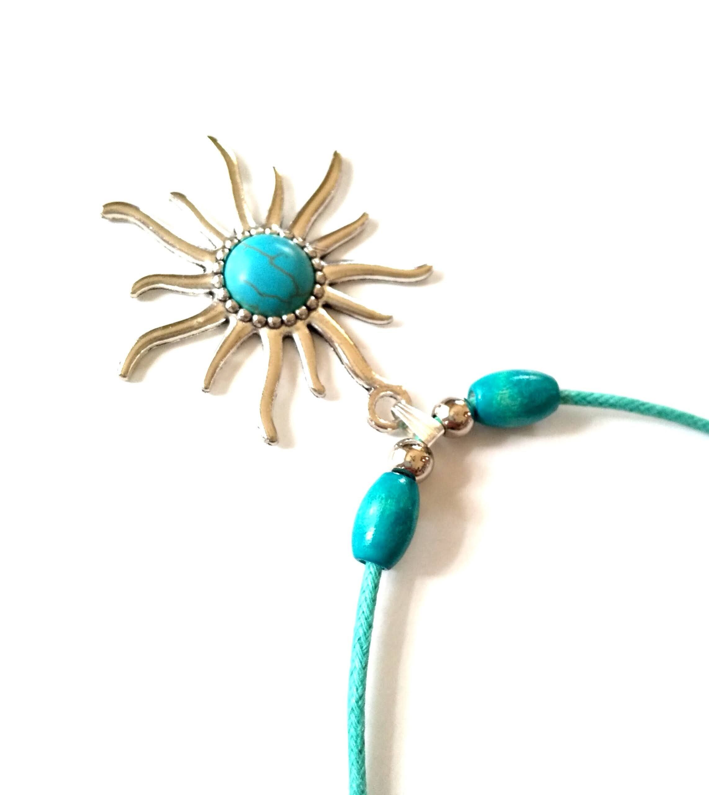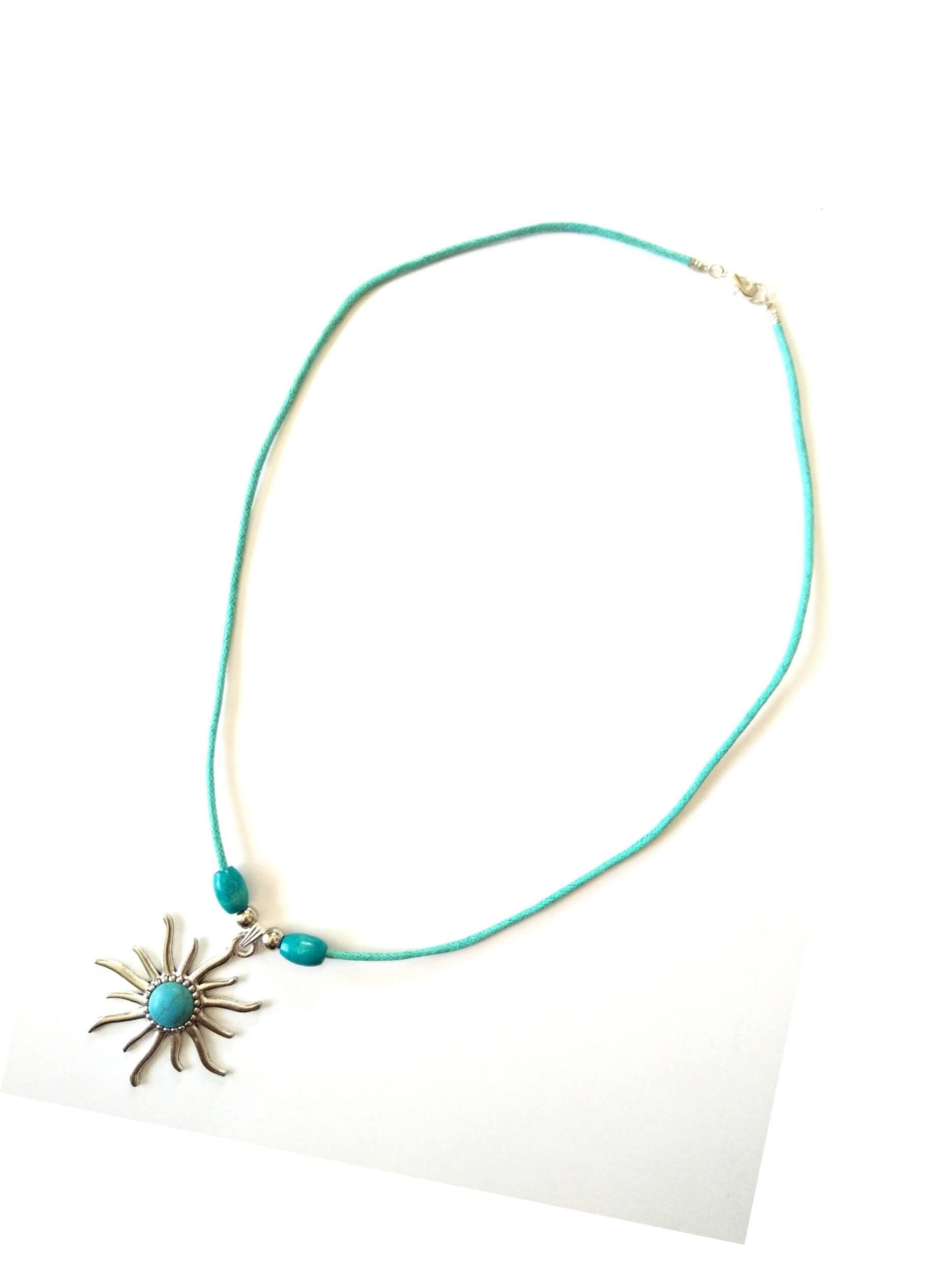 メンズネックレス ブルーターコイズ&シルバー ラジアルデザイン T-850