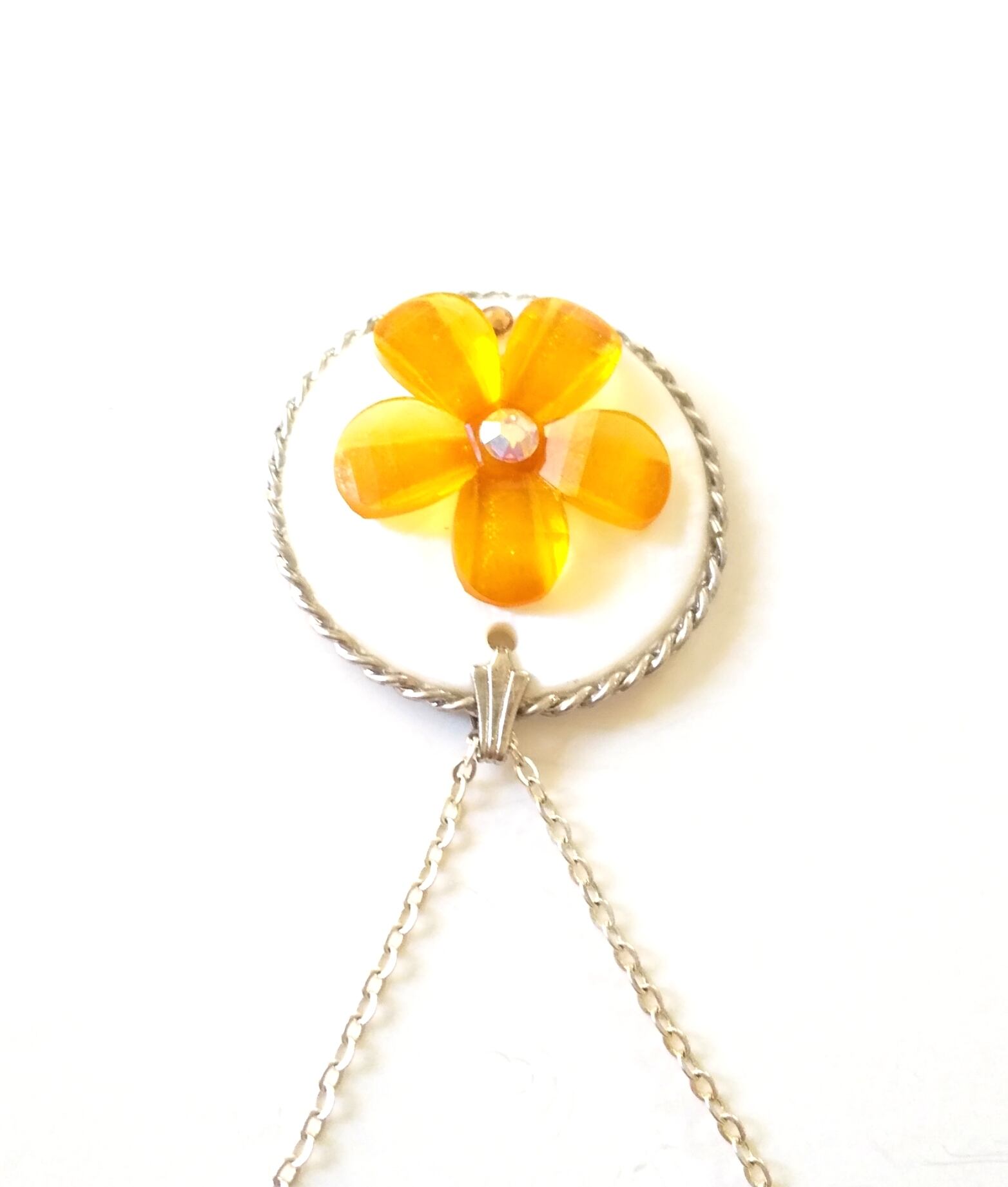 ハワイアンネックレス オレンジカラー プルメリア &ホワイトシェル P-635