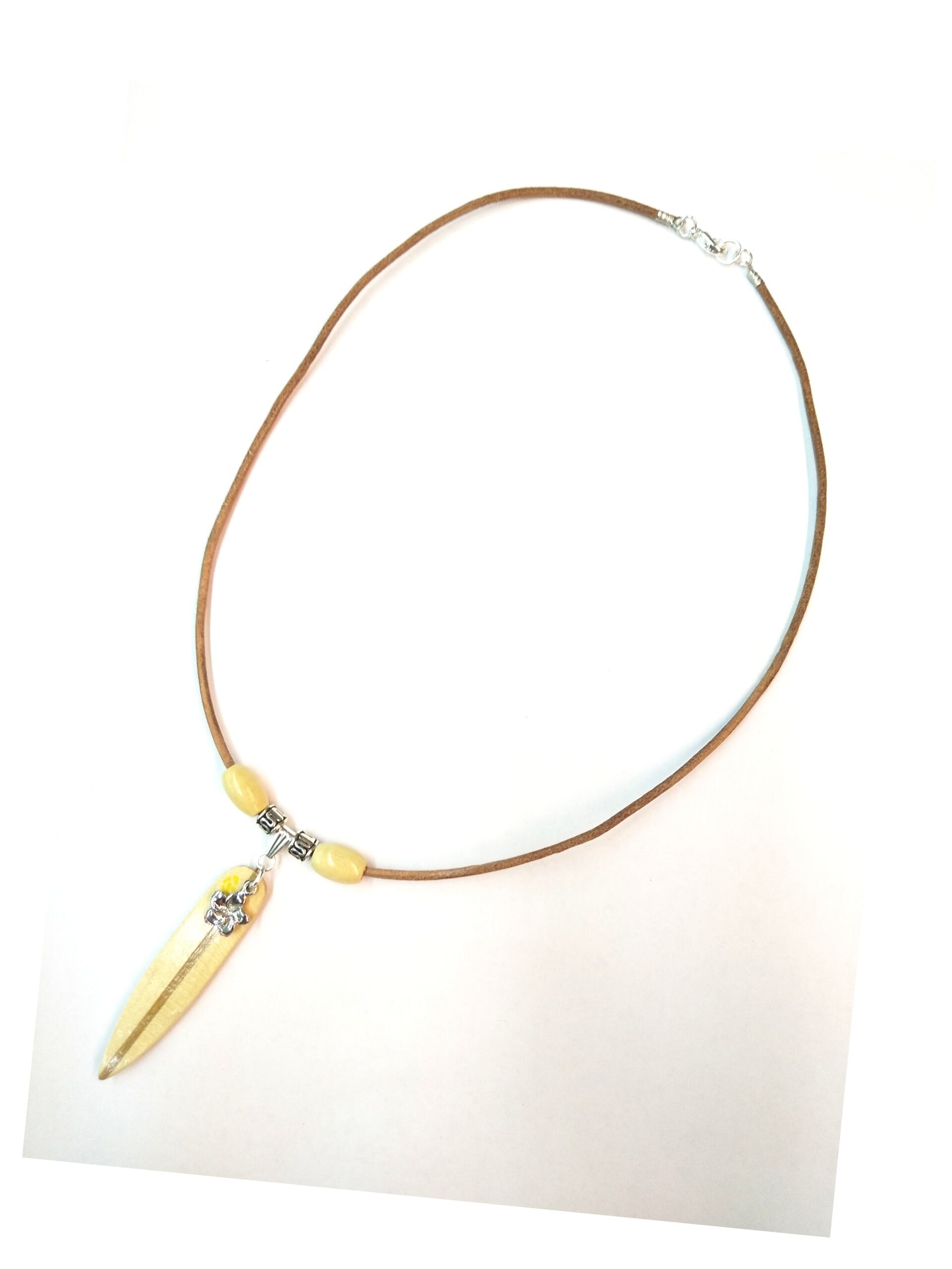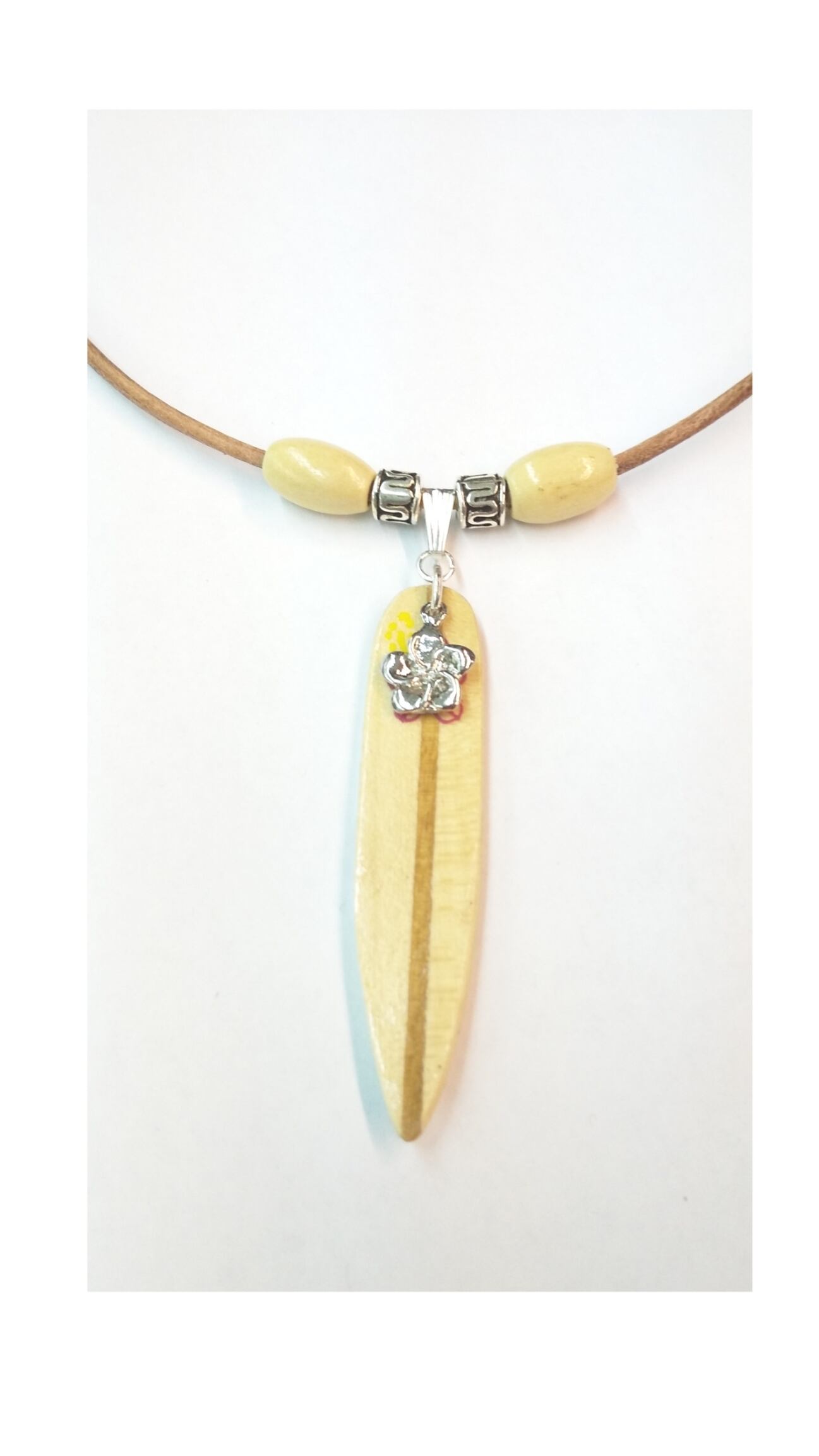 ハワイアンネックレス 天然ウッドサーフボード&シルバープルメリア B-308