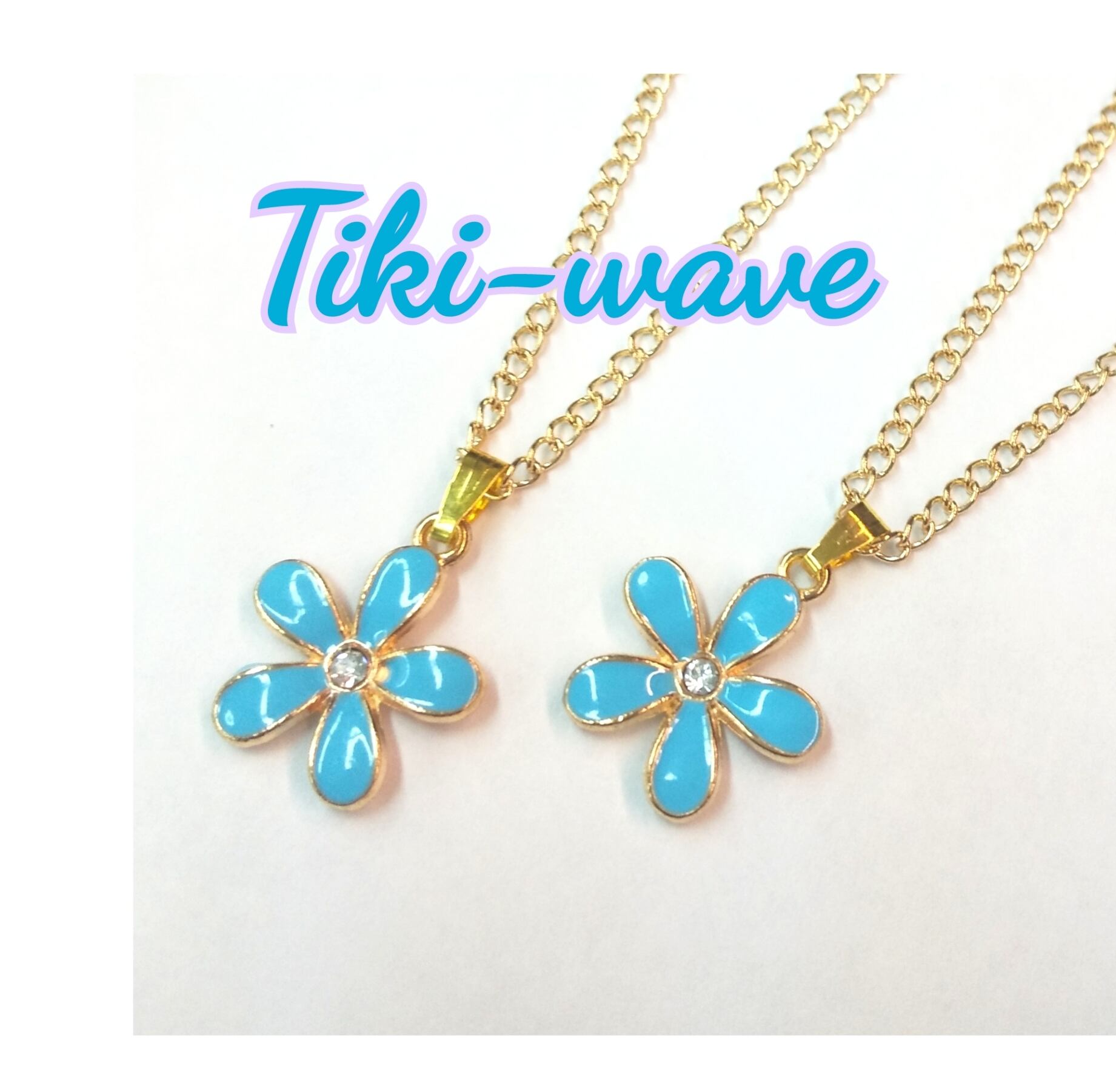 ハワイアンネックレス ペア 2本セット ライトブルーカラープルメリア P-639