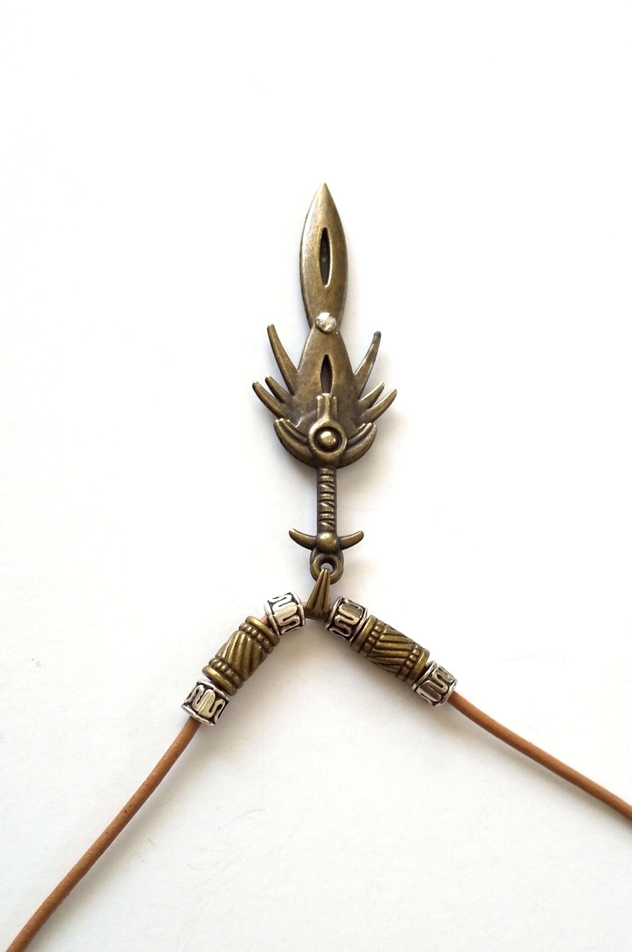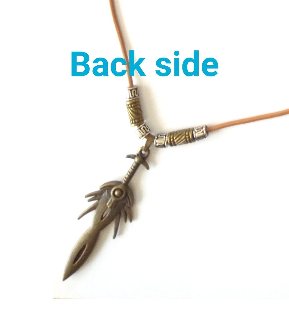 メンズネックレス 金古美カラー ブレイド&CZ ブラウン本革紐 Y-705