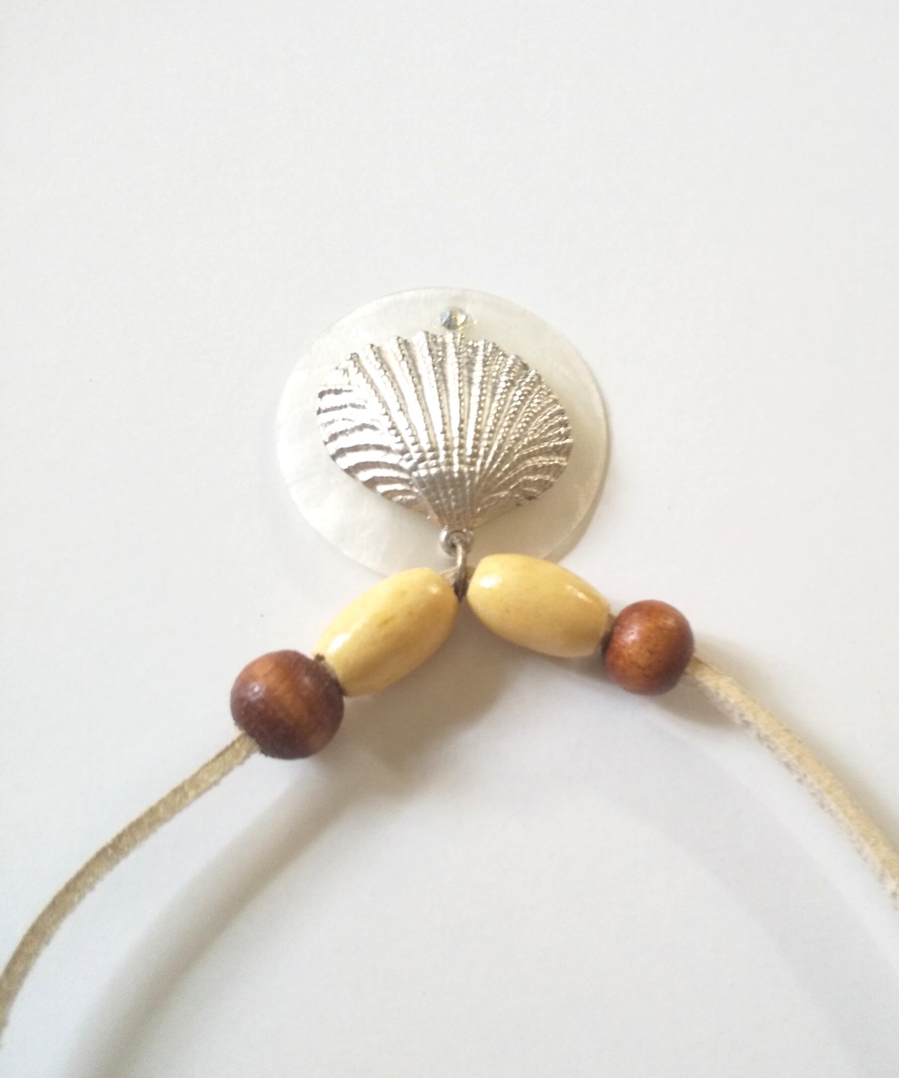 ハワイアンネックレス シルバーシェルチャーム& ホワイトシェルサーク S-327