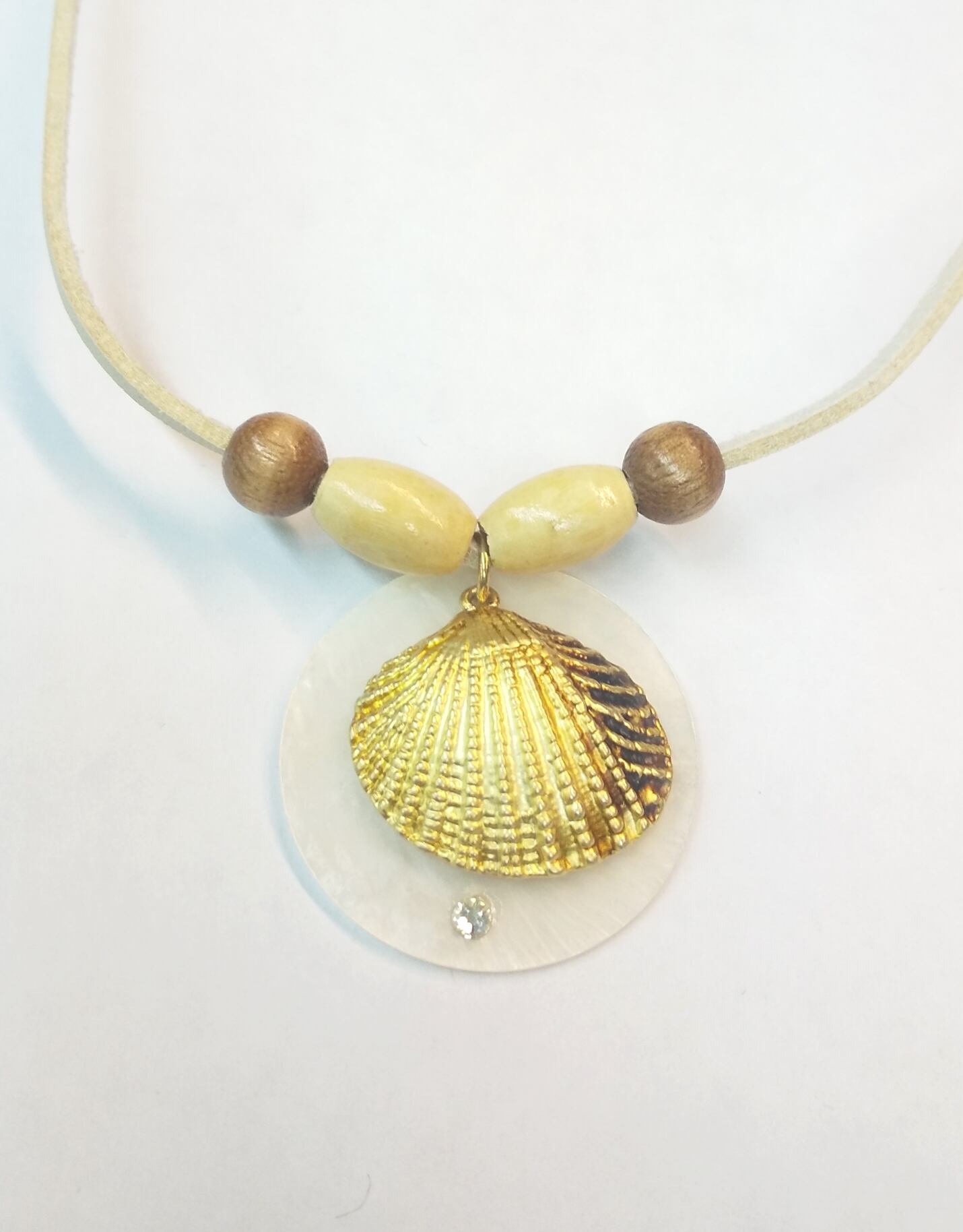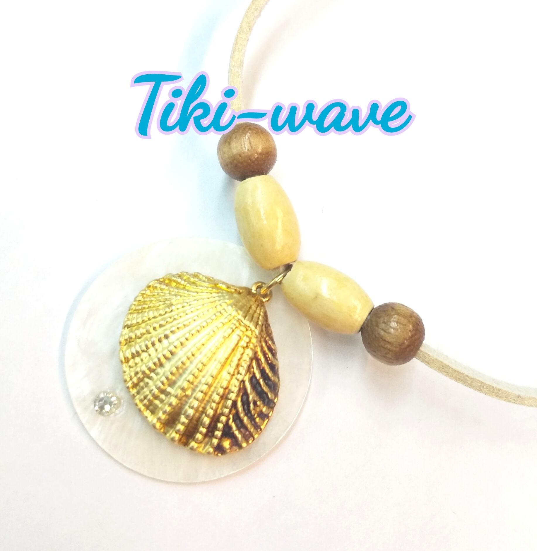 ハワイアンネックレス ゴールドシェルチャーム&ホワイトシェルサーク S-328