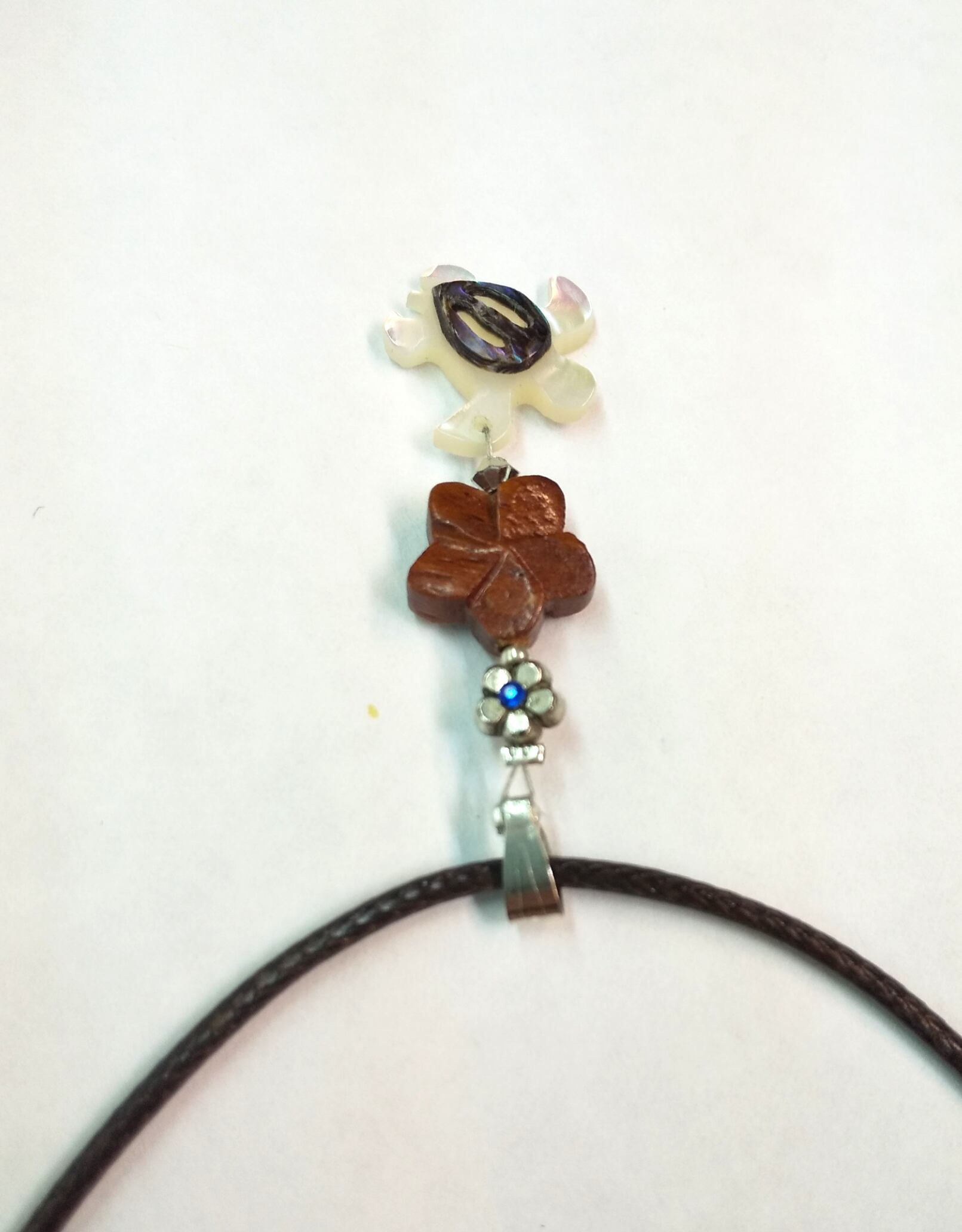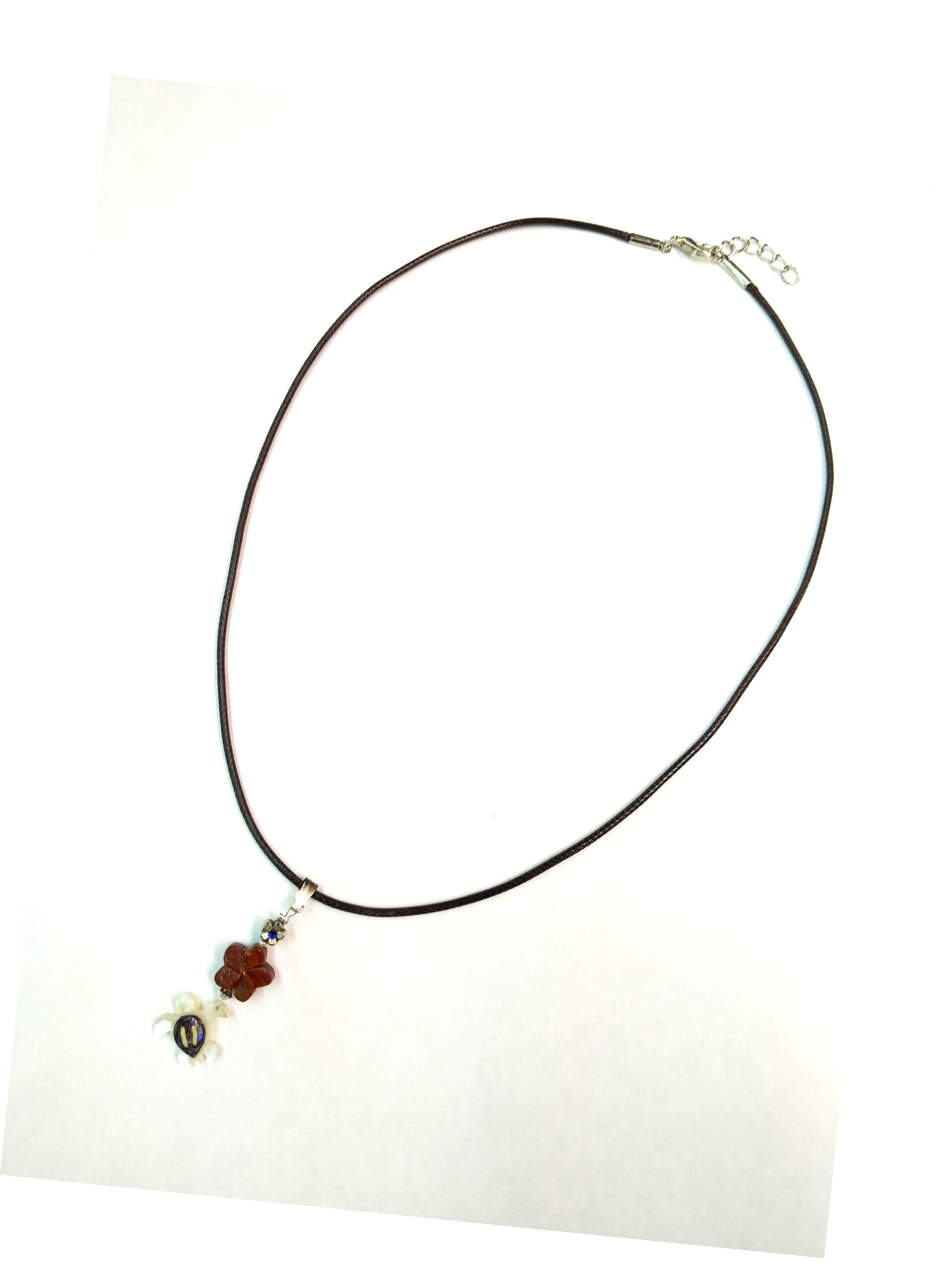 ハワイアンネックレス 天然シェルホヌ& ハワイウッドプルメリア H-129