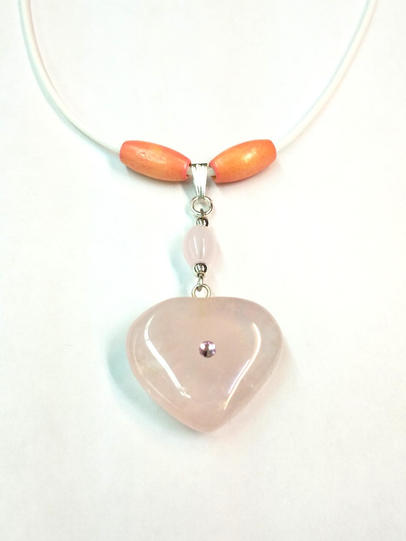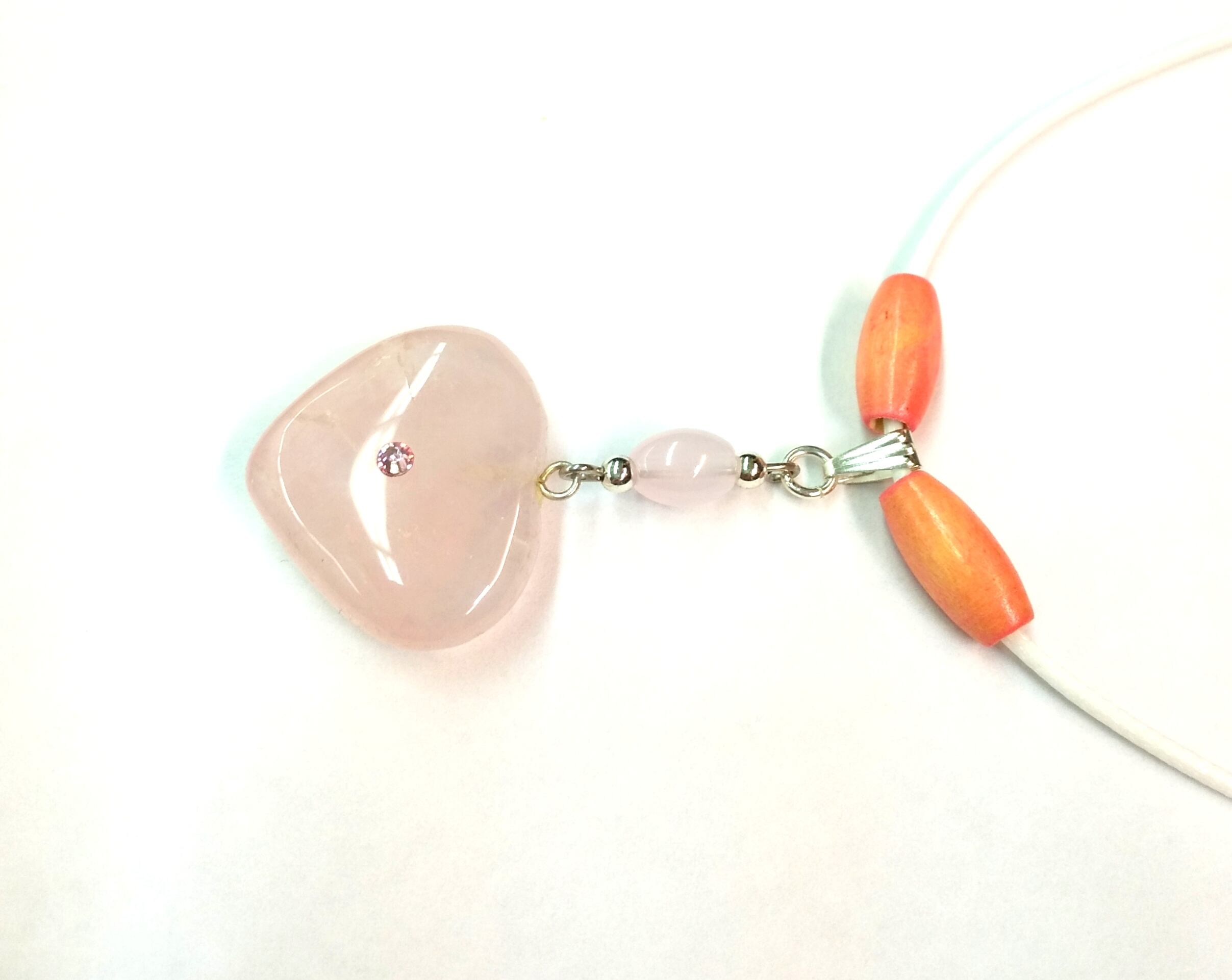 天然石ネックレス ローズクォーツ 大きめハート&樽ボール T-712