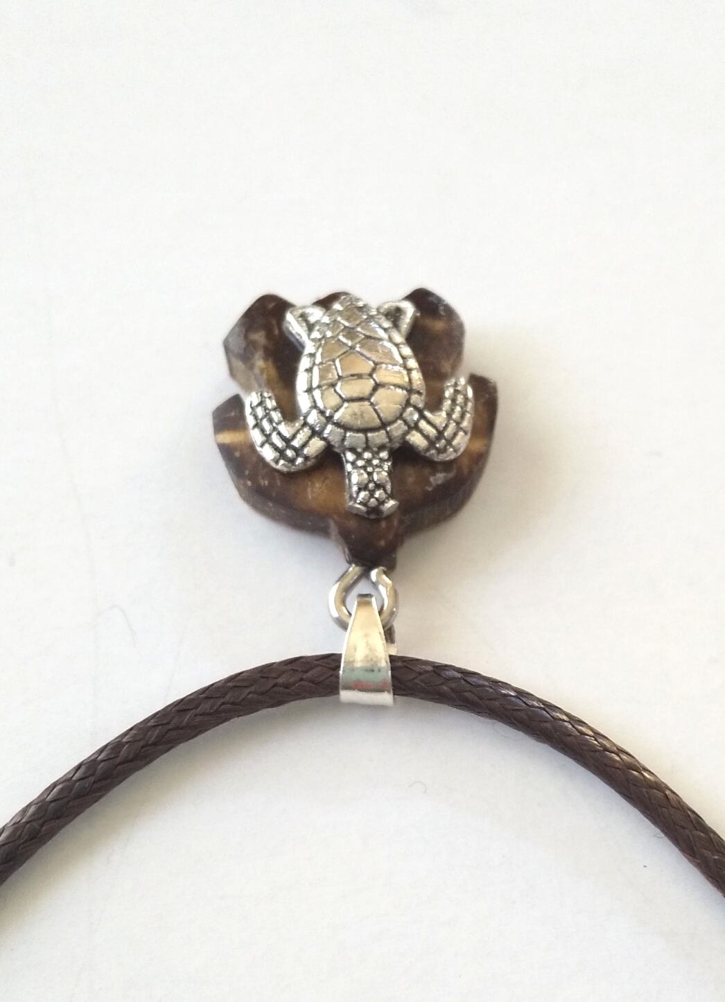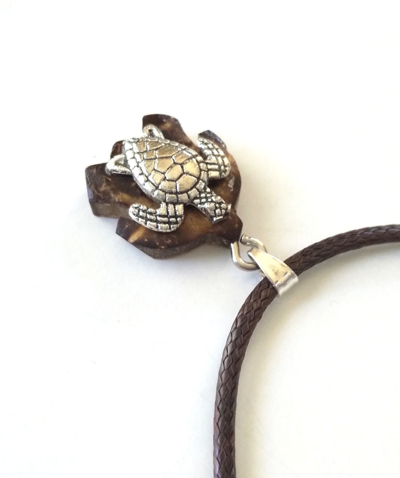 ハワイアンネックレス シルバー&椰子ウッド ホヌ ブラウン紐 H-132