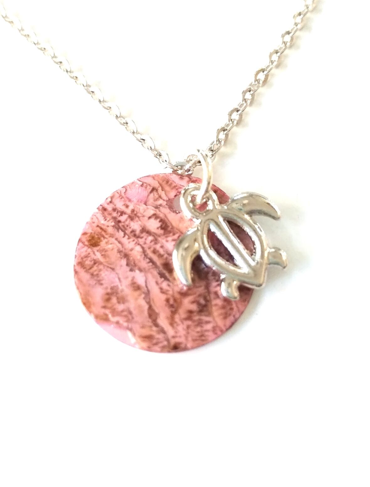 ハワイアンネックレス シルバーホヌ&天然シェル ピンクカラー H-134