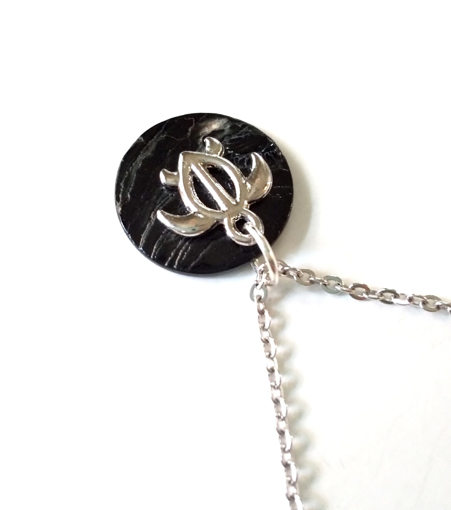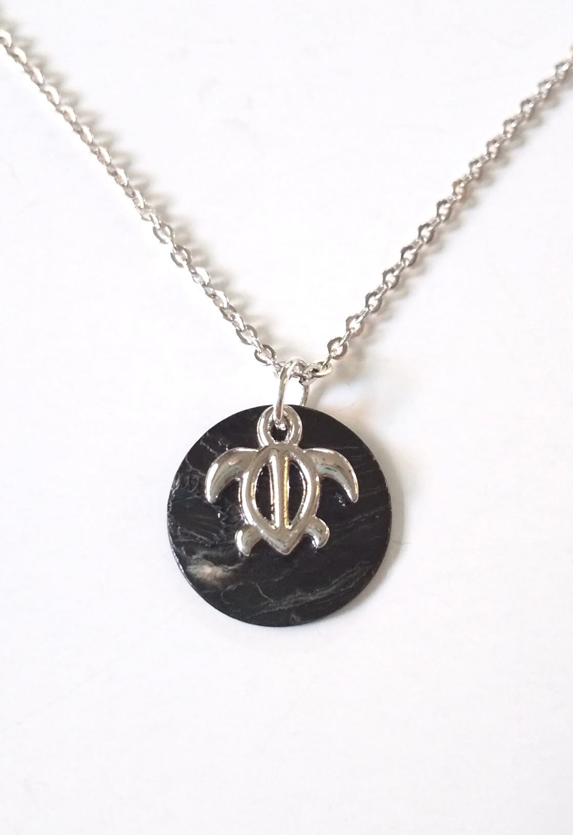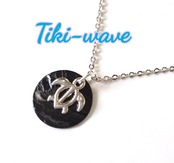 ハワイアンネックレス シルバーホヌ&天然シェル ブラックカラー H-135