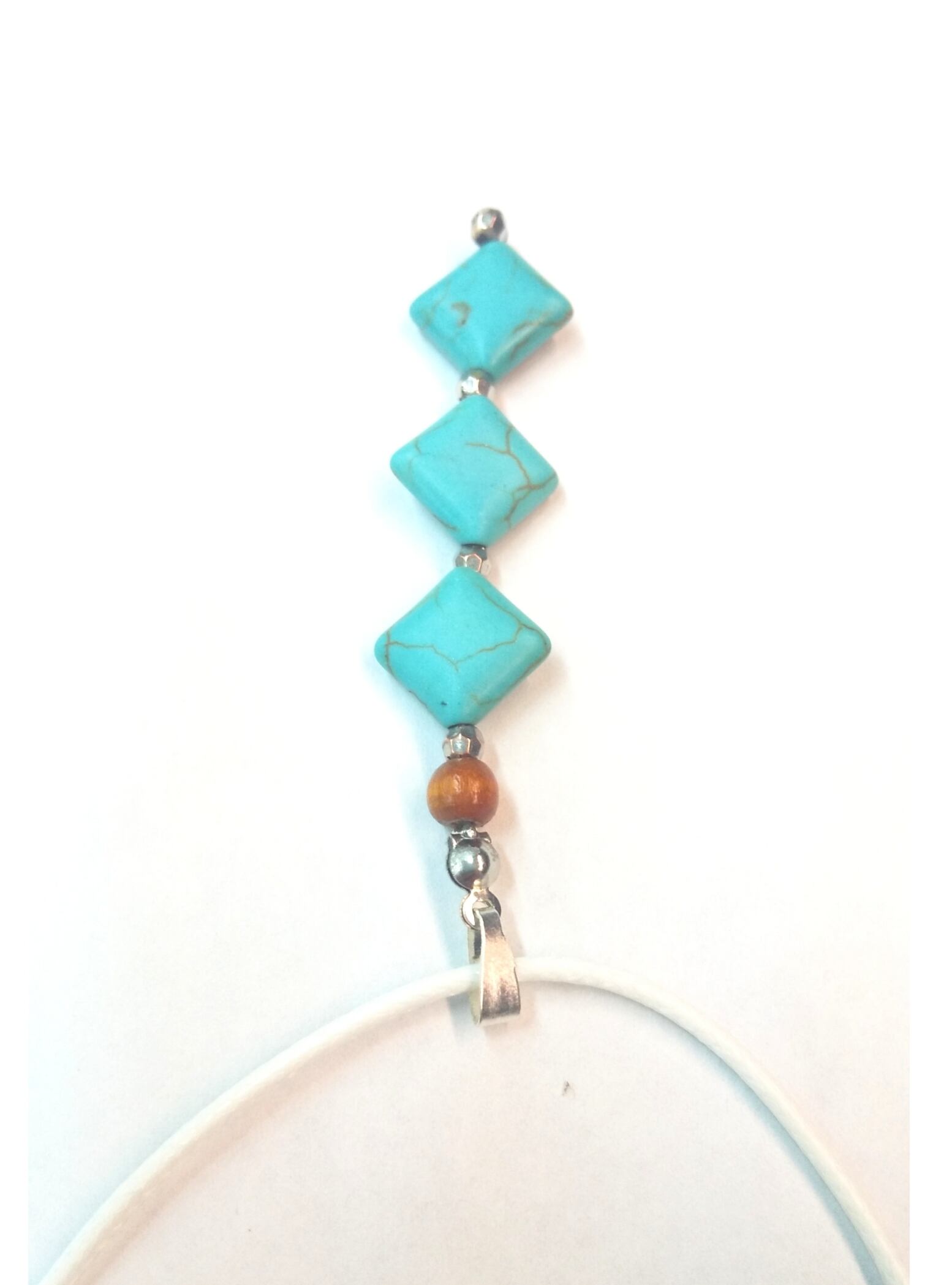 ネックレス ブルーターコイズ 3連スクエア シルバー&ハワイウッド T-854