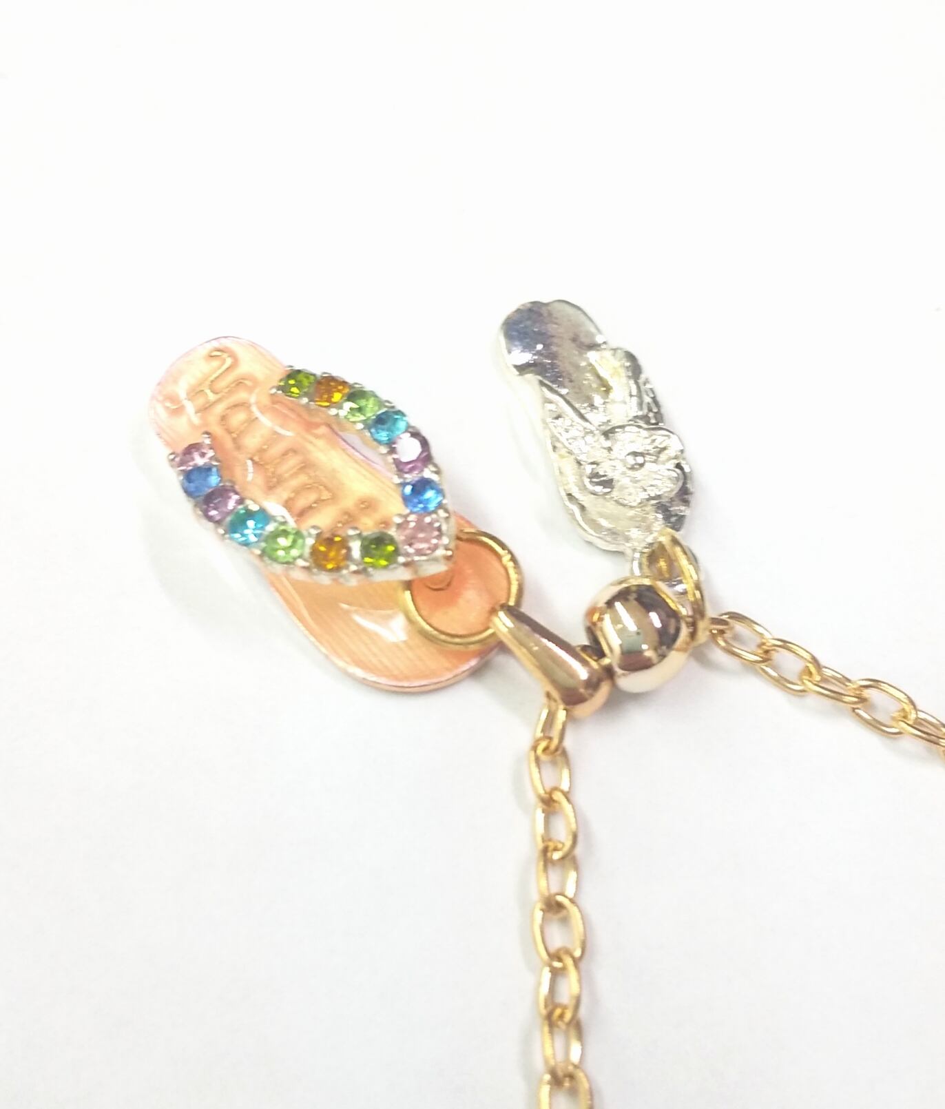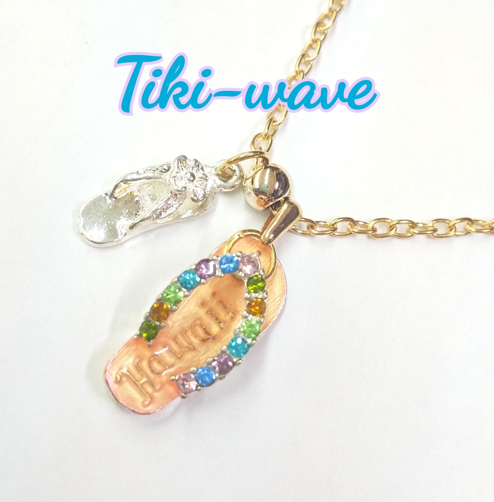 ハワイアンネックレス ピンク&シルバーサンダル ピンクゴールドチェーン D-402