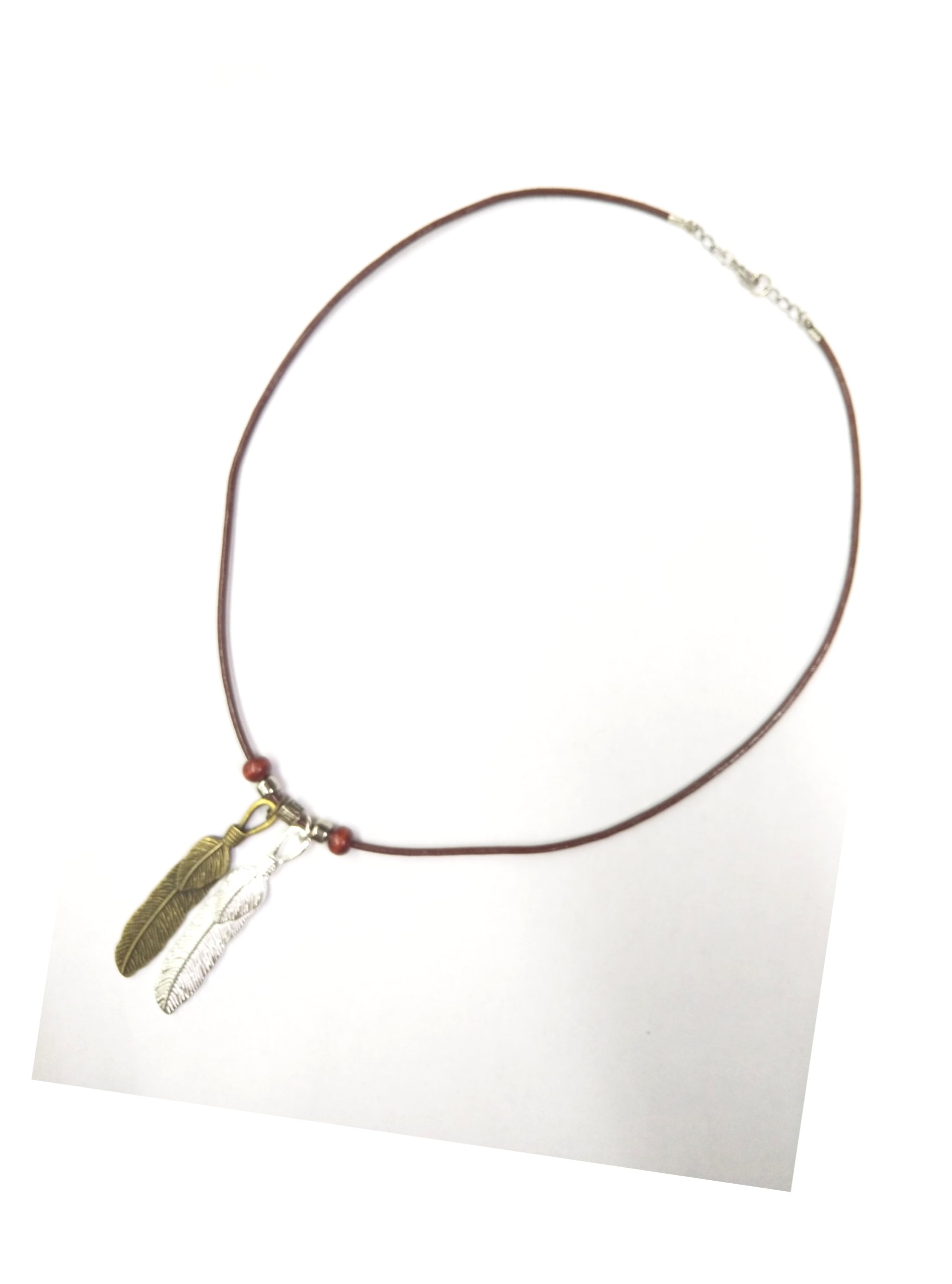 メンズネックレス 金古美&シルバーカラー フェザー 本革紐 Y-518