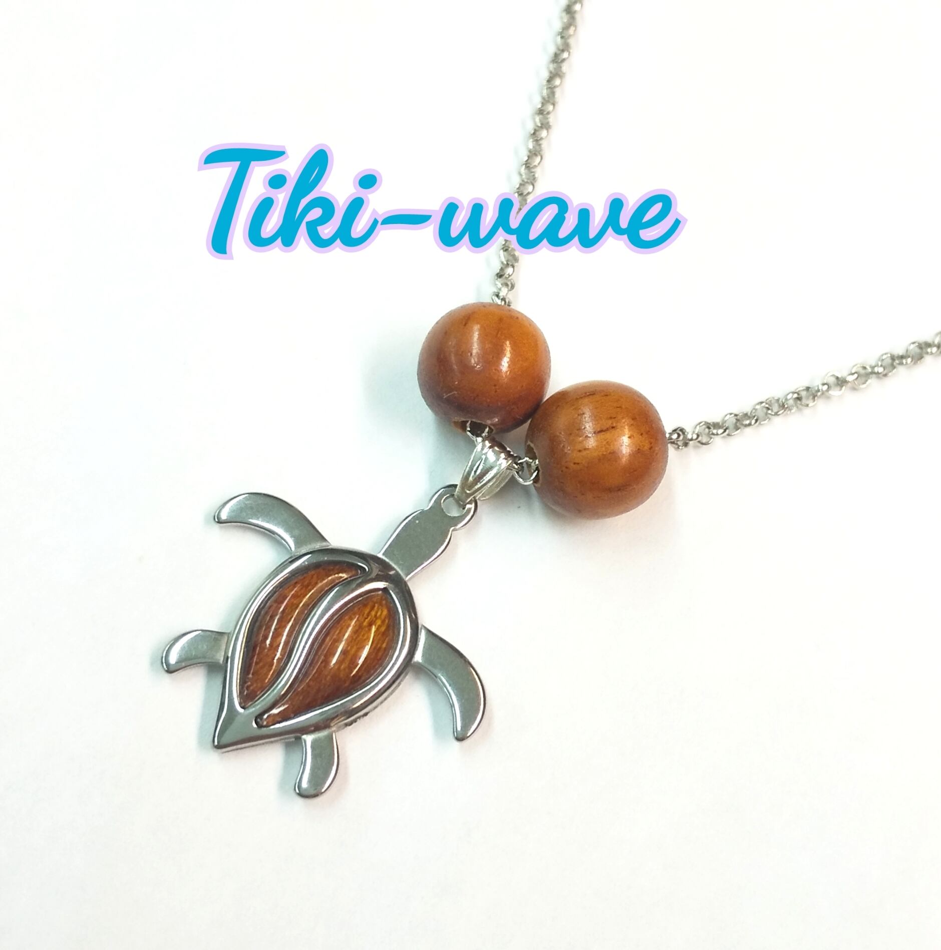 ハワイアンネックレス シルバーステンレスホヌ ブラウンウッドカラー H-136