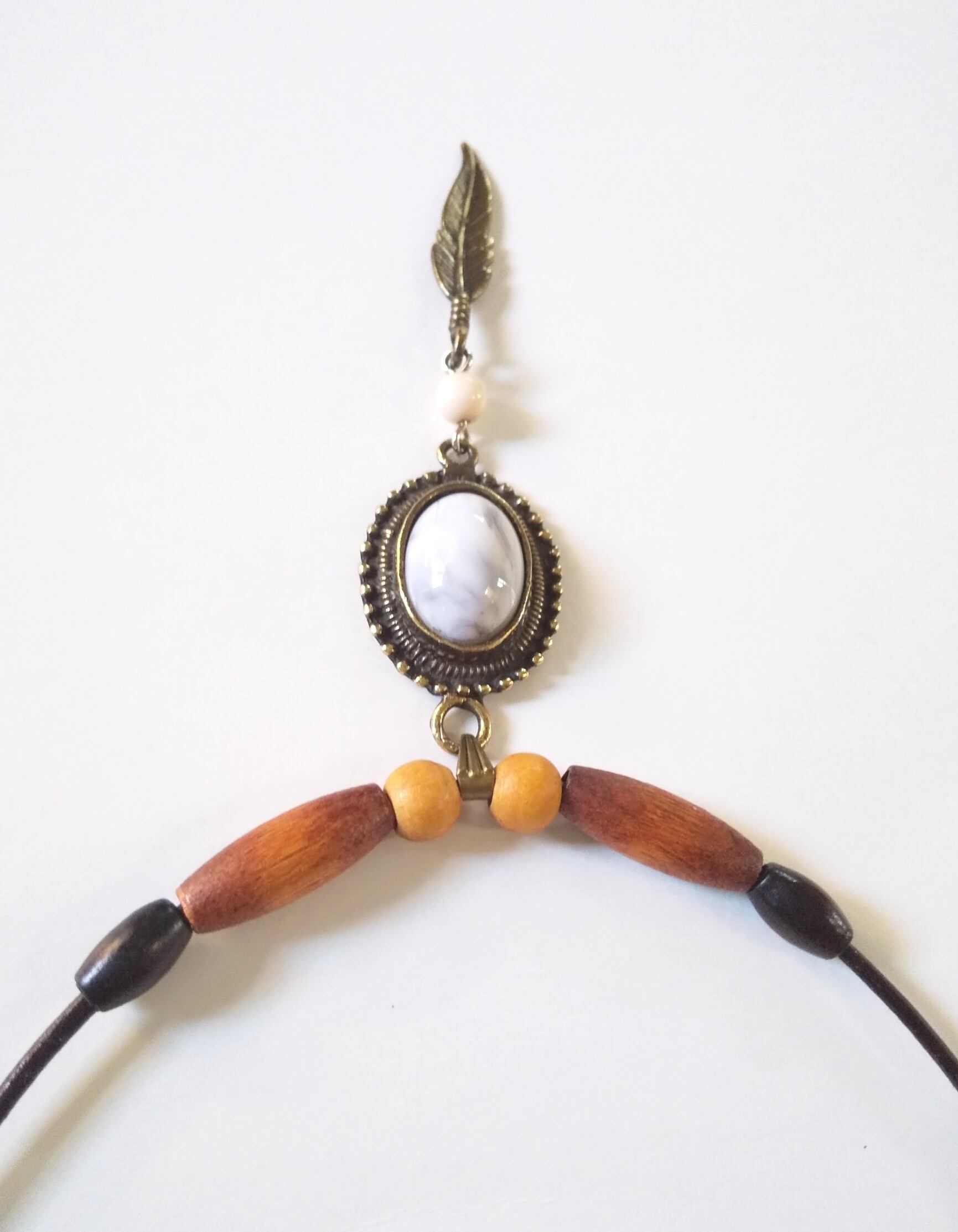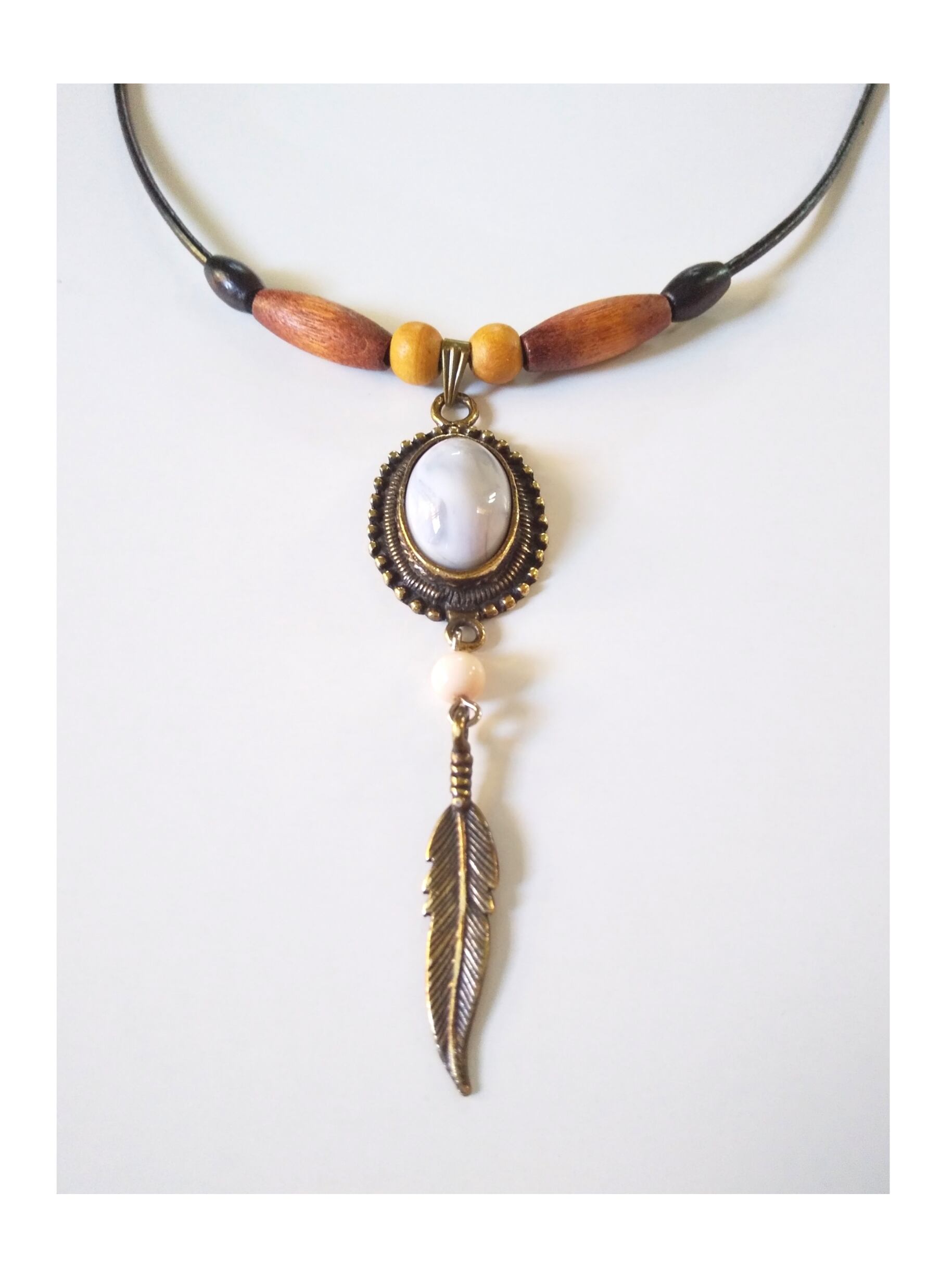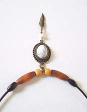 メンズネックレス 金古美オーバル&フェザー ブラック本革紐 Y-519