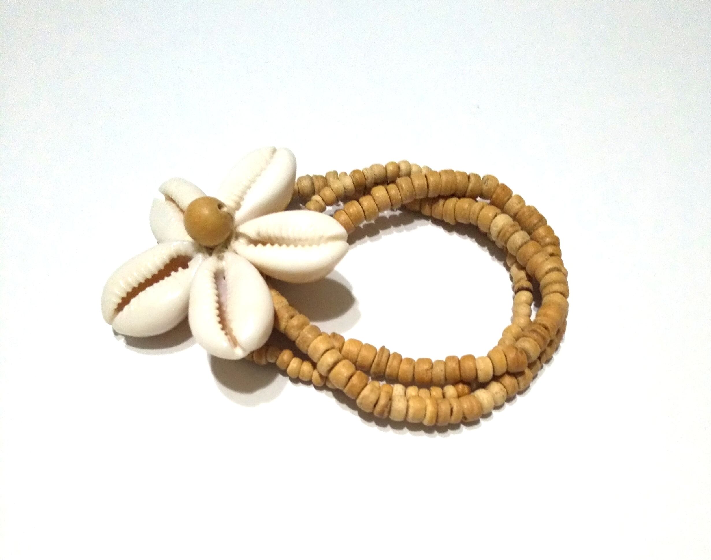 ハワイアンブレス 天然シェル フラワーデザイン&ウッドビーズ R-400