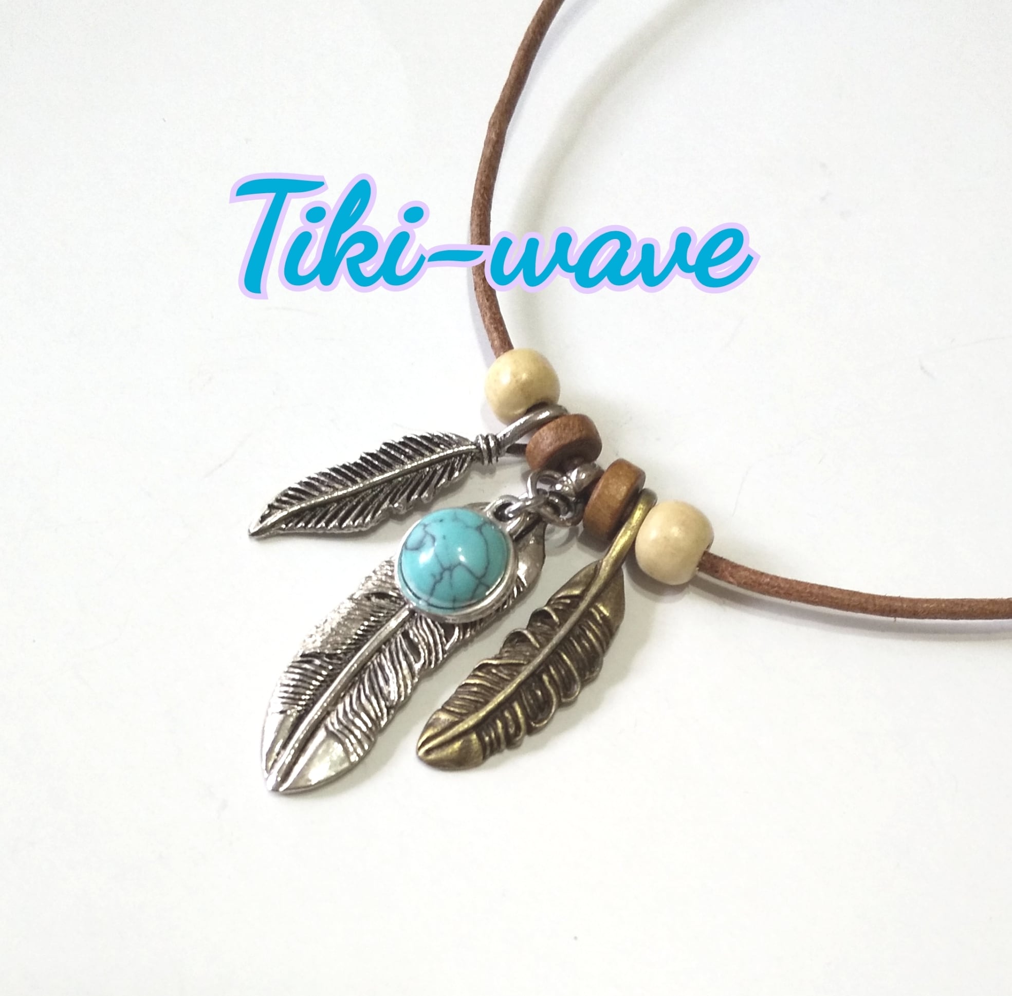 メンズネックレス 金古美&シルバーカラー フェザー 本革紐 Y-520