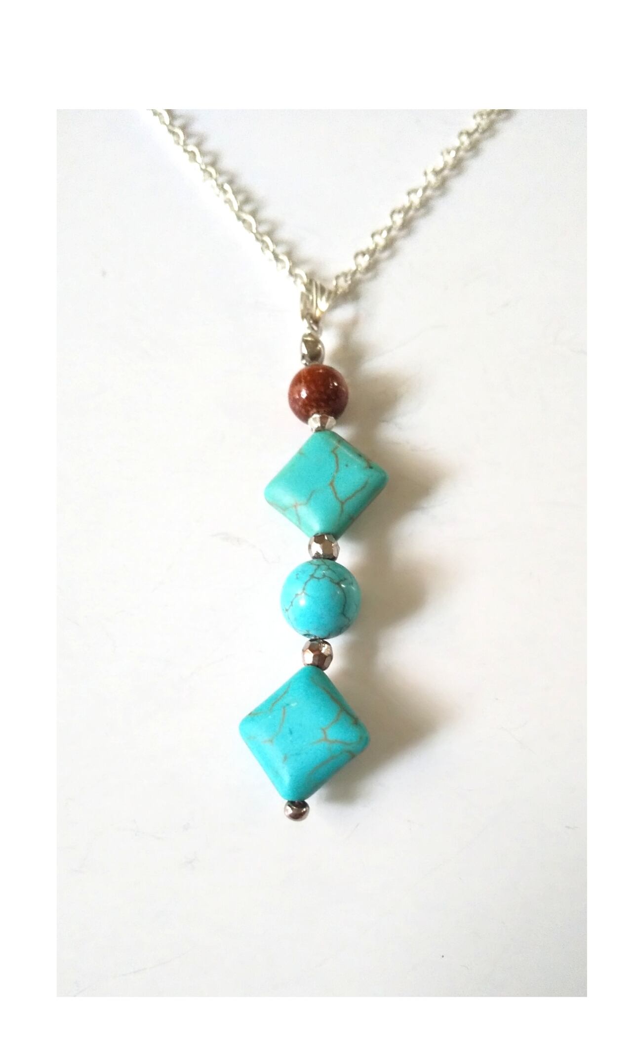 ネックレス ブルーターコイズ 3連スクエア シルバー&ハワイウッド T-858