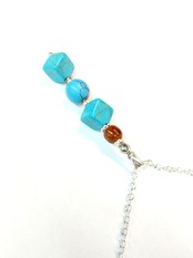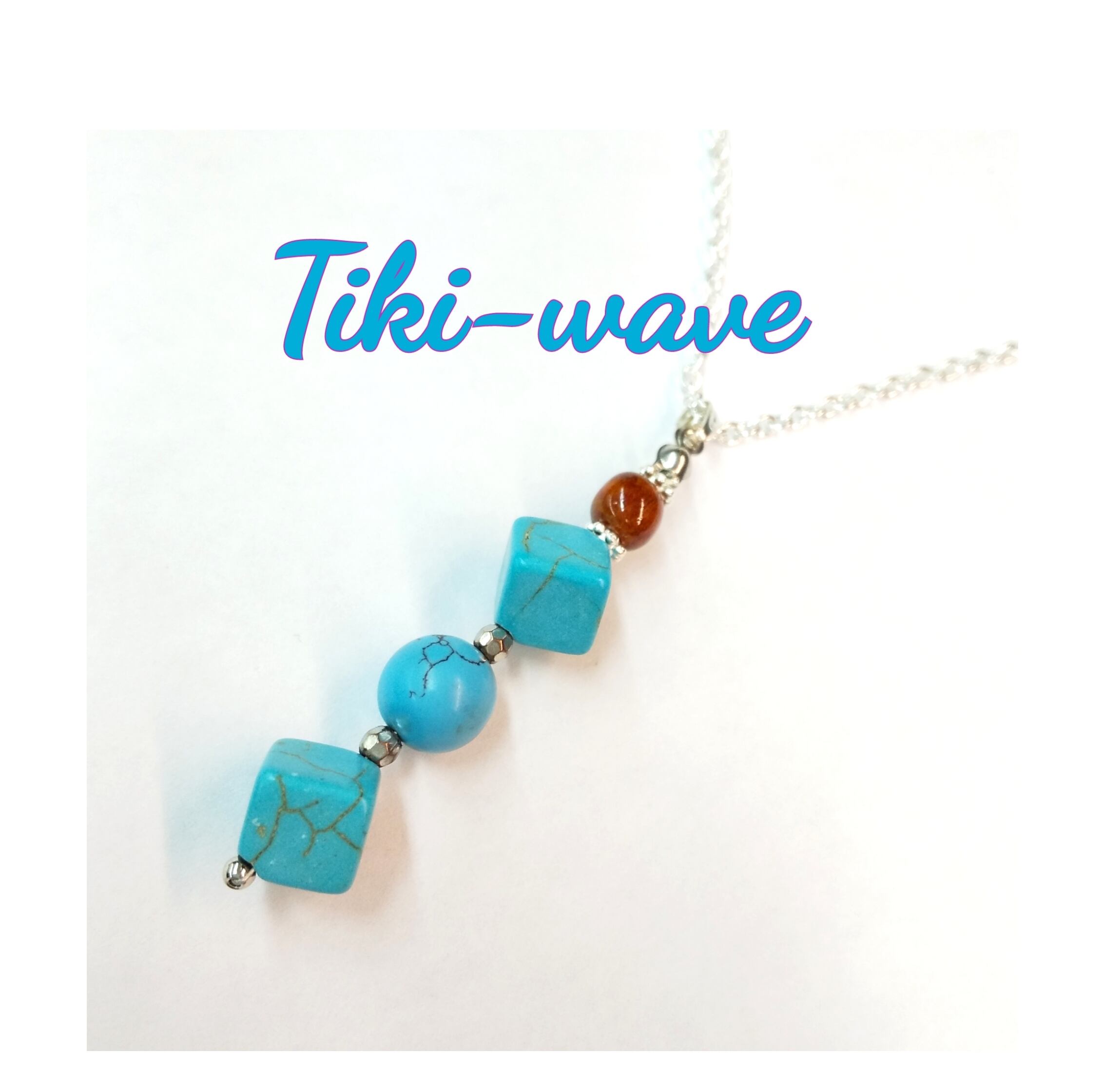 ネックレス ブルーターコイズ 3連 キューブ&ボール ハワイウッド T-859