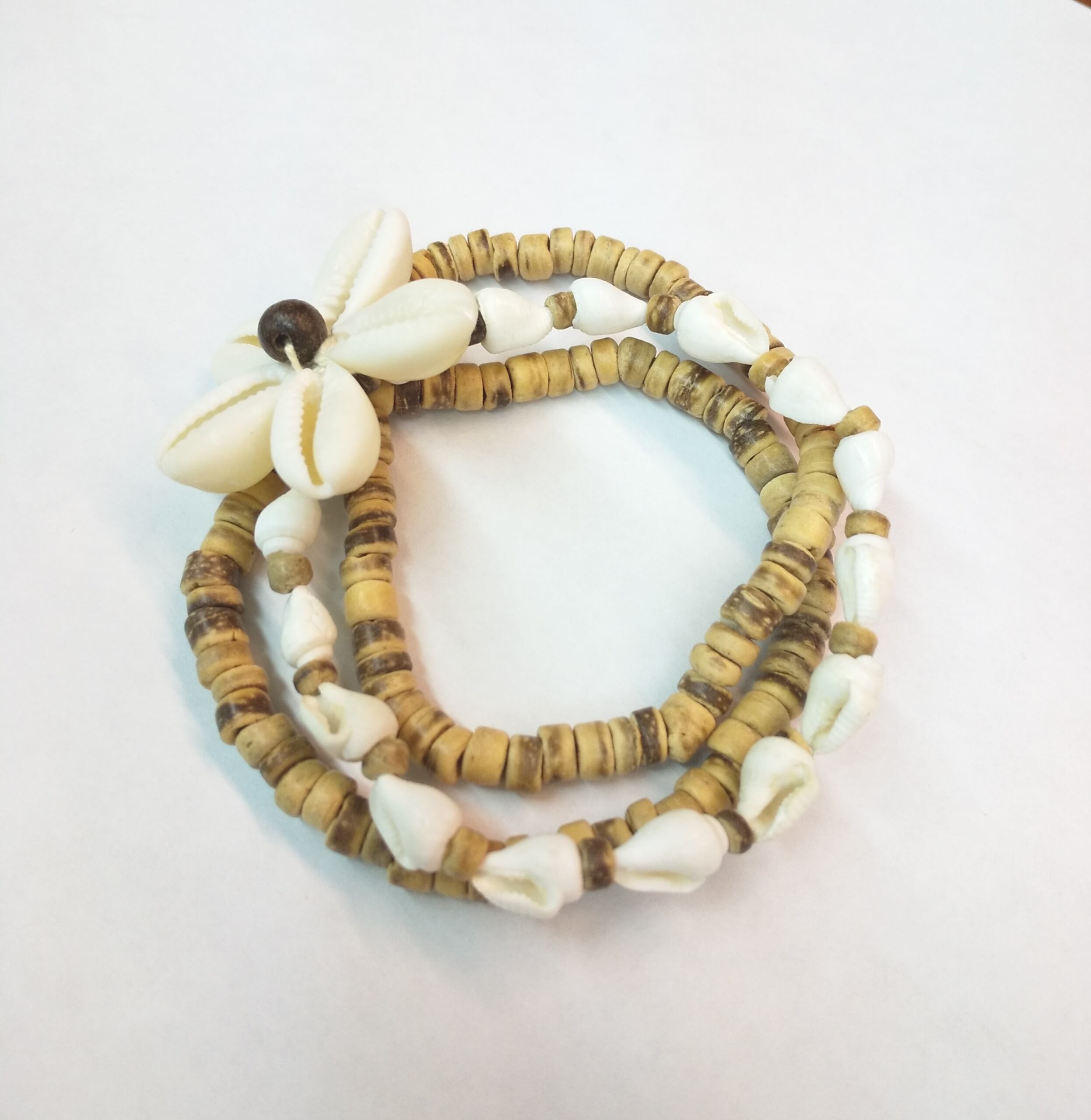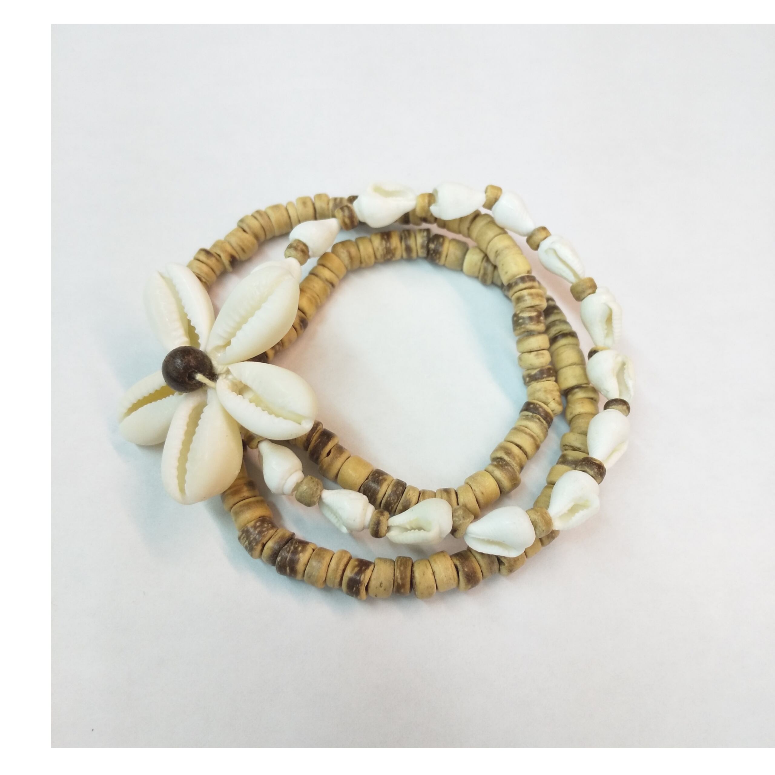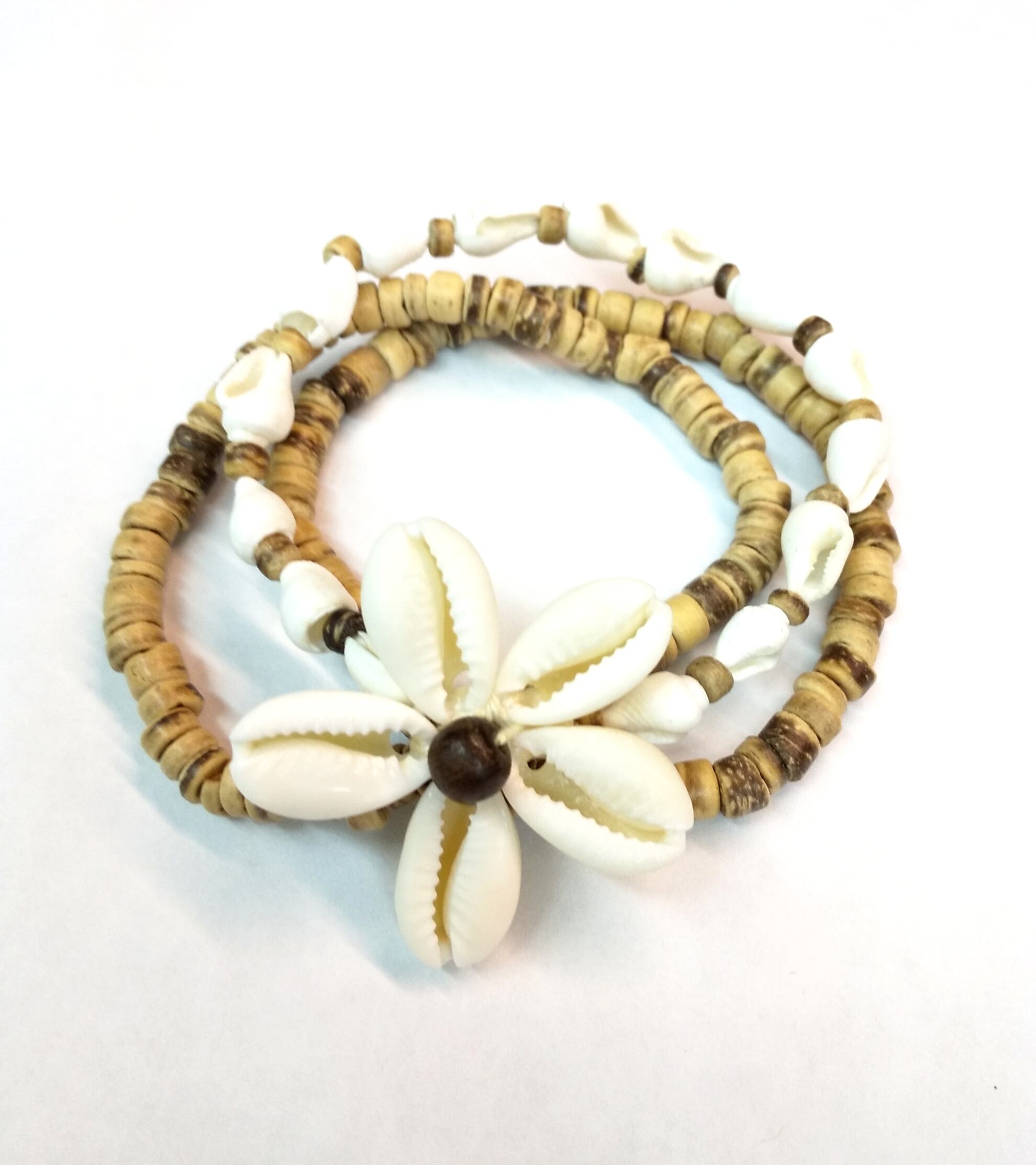 ハワイアンブレス 天然シェル フラワーデザイン&ウッドビーズ R-402