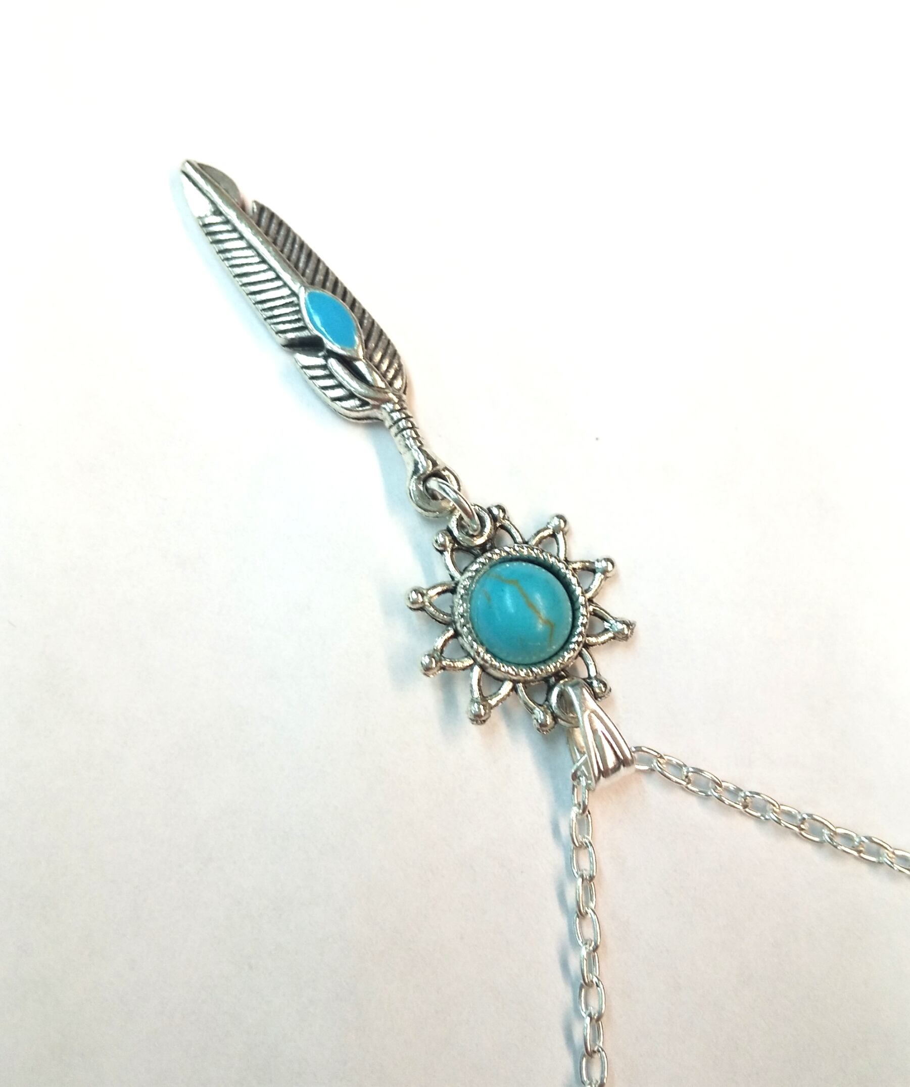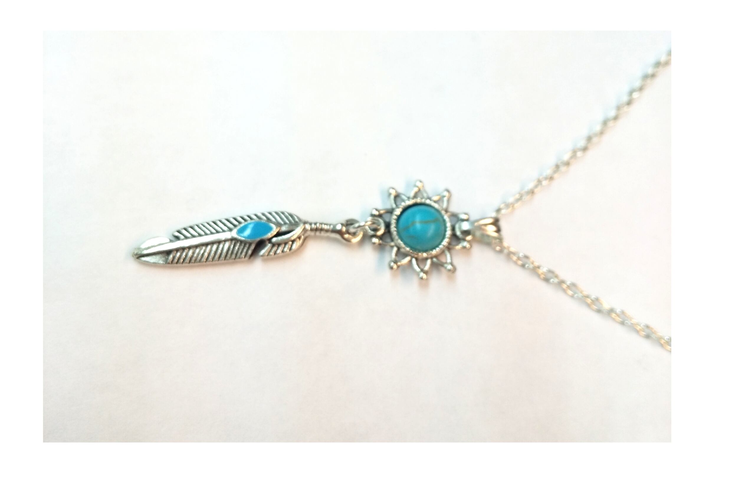 ハワイアンネックレス ターコイズ シルバー ラジアル&フェザー T-860