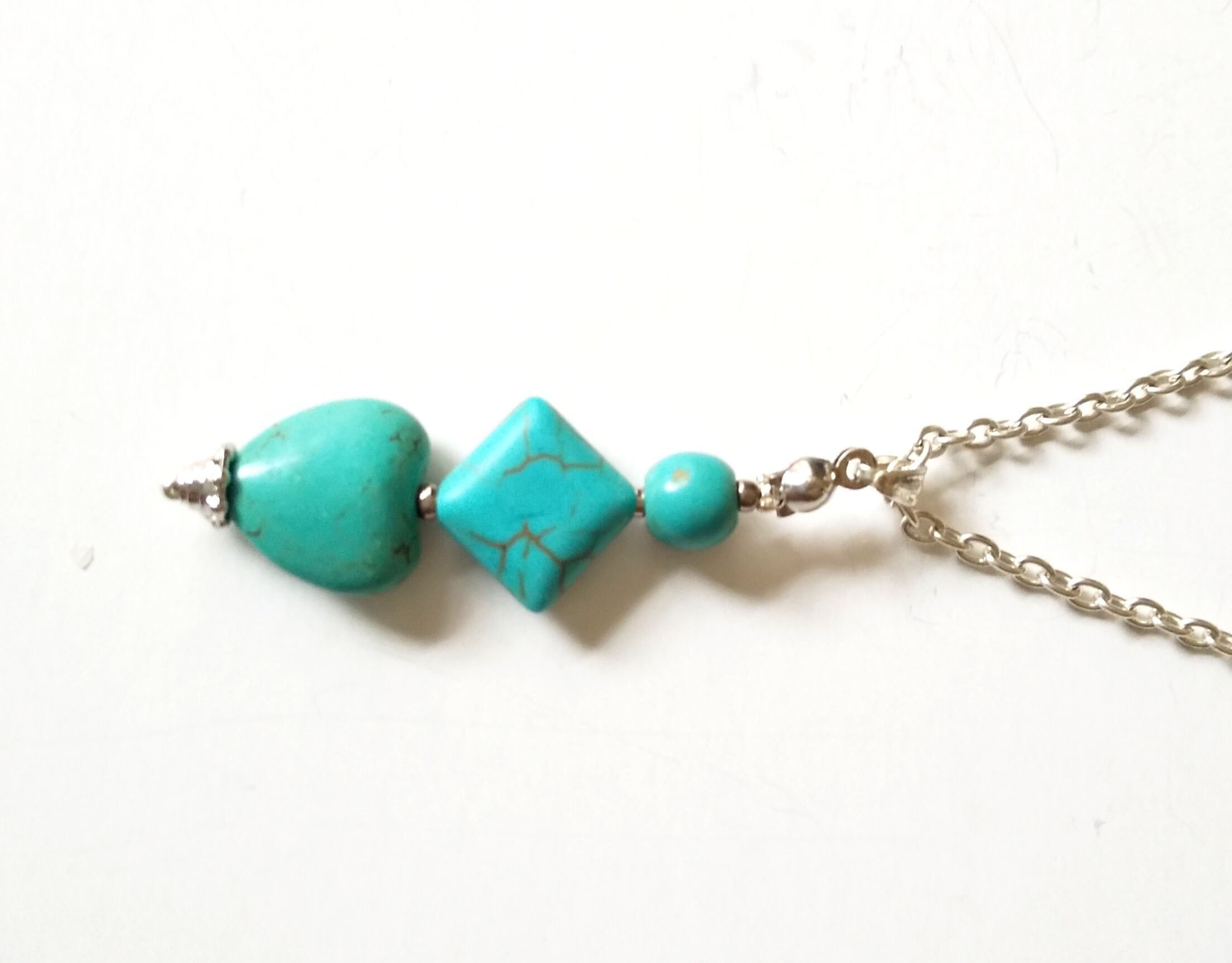 ネックレス ブルーターコイズ 3連 ハート&スクエア ボール T-862