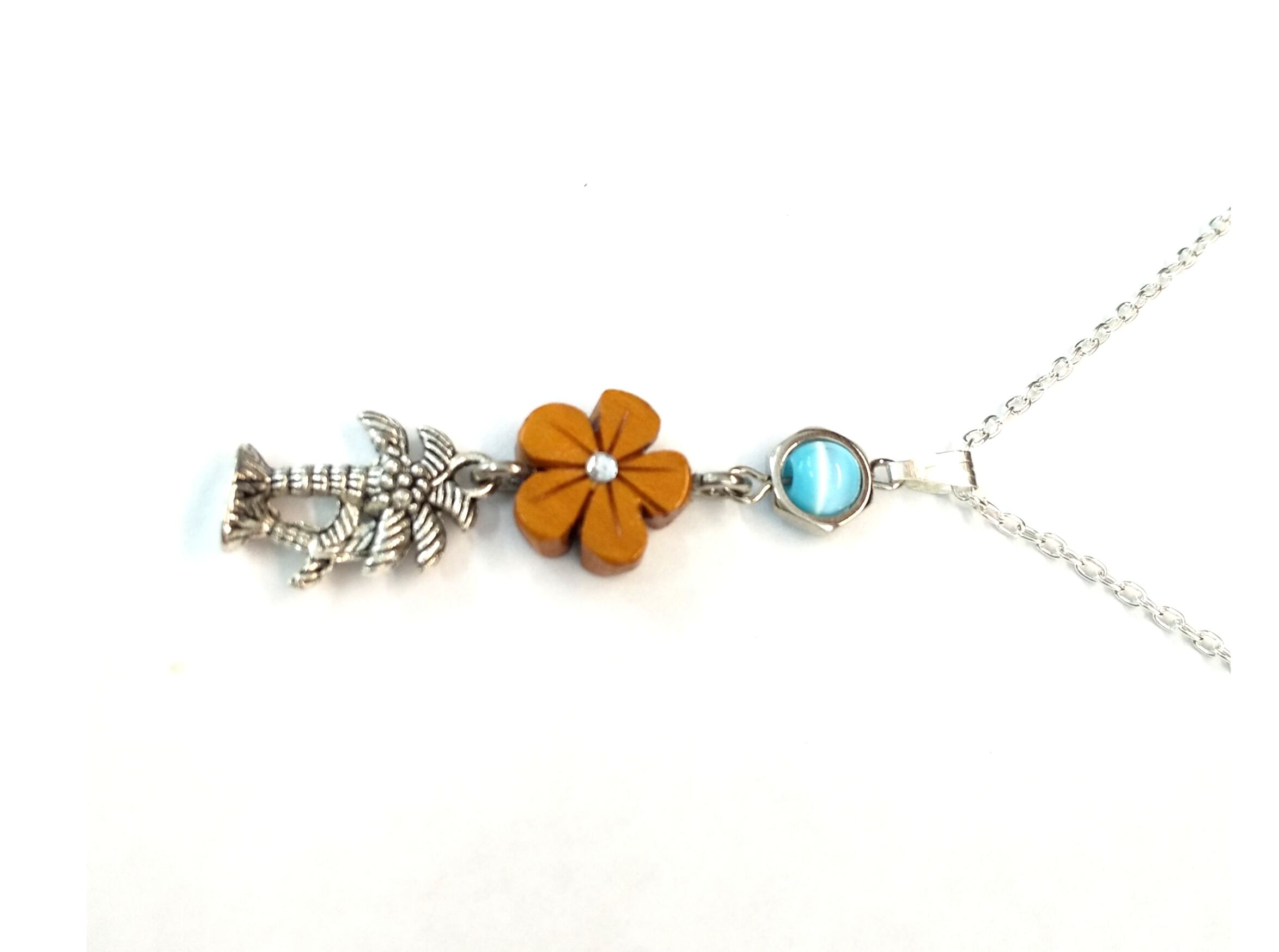 ハワイアンネックレス シルバーカラー椰子& ウッドプルメリア U-508