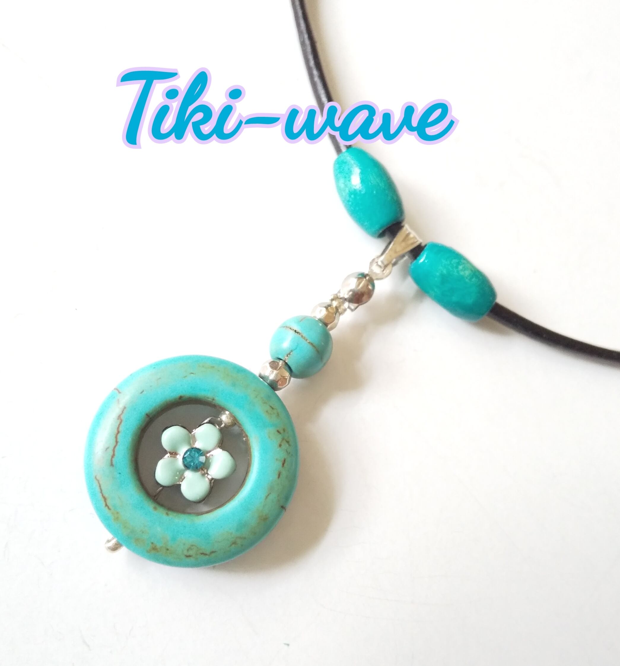 レディースネックレス ブルーターコイズ プルメリア&リング T-865