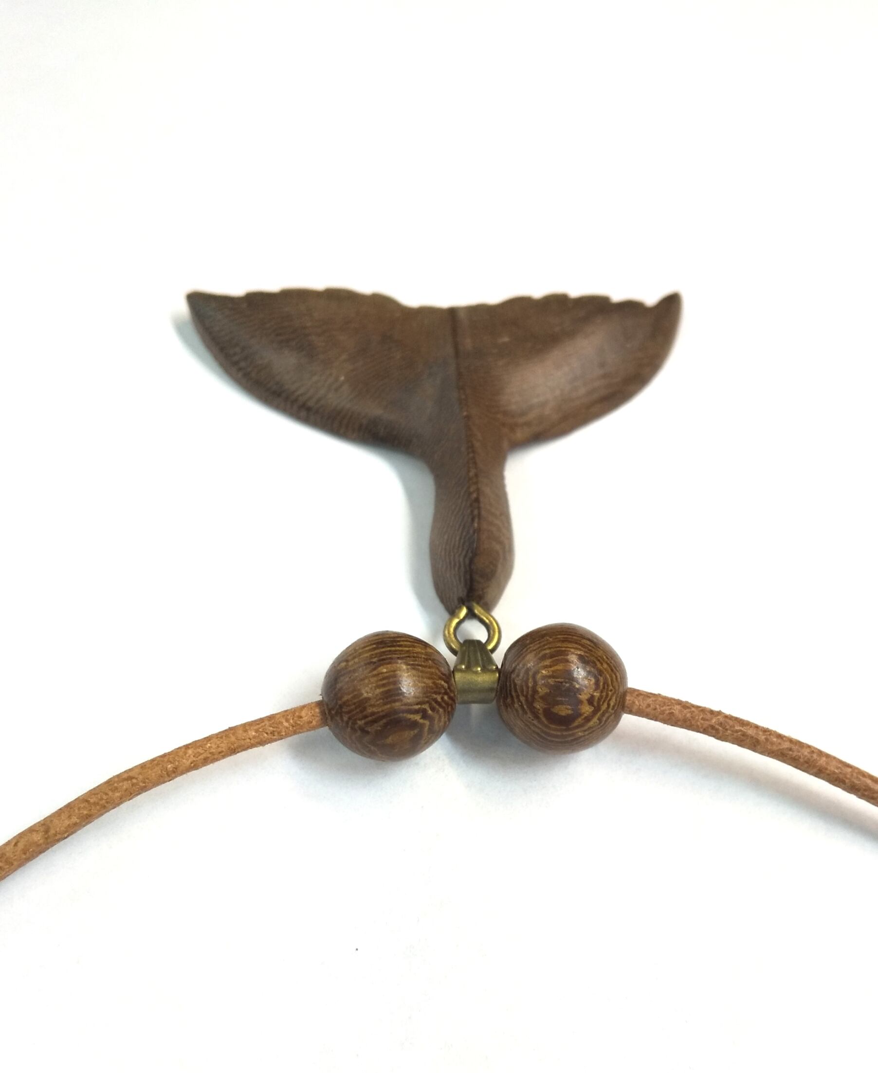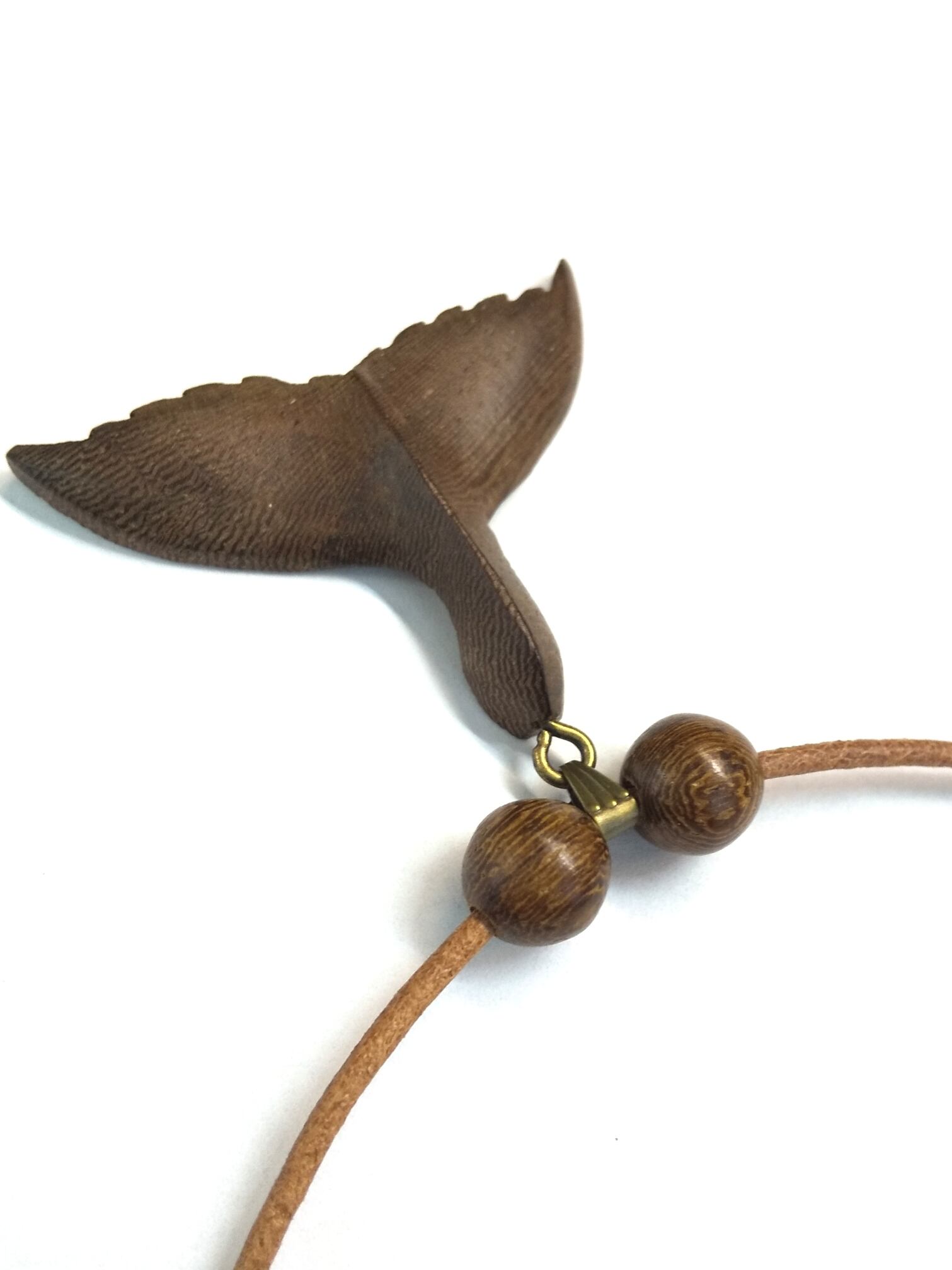 ハワイアンネックレス ハワイコアウッド ホエールテール&本革紐 D-225