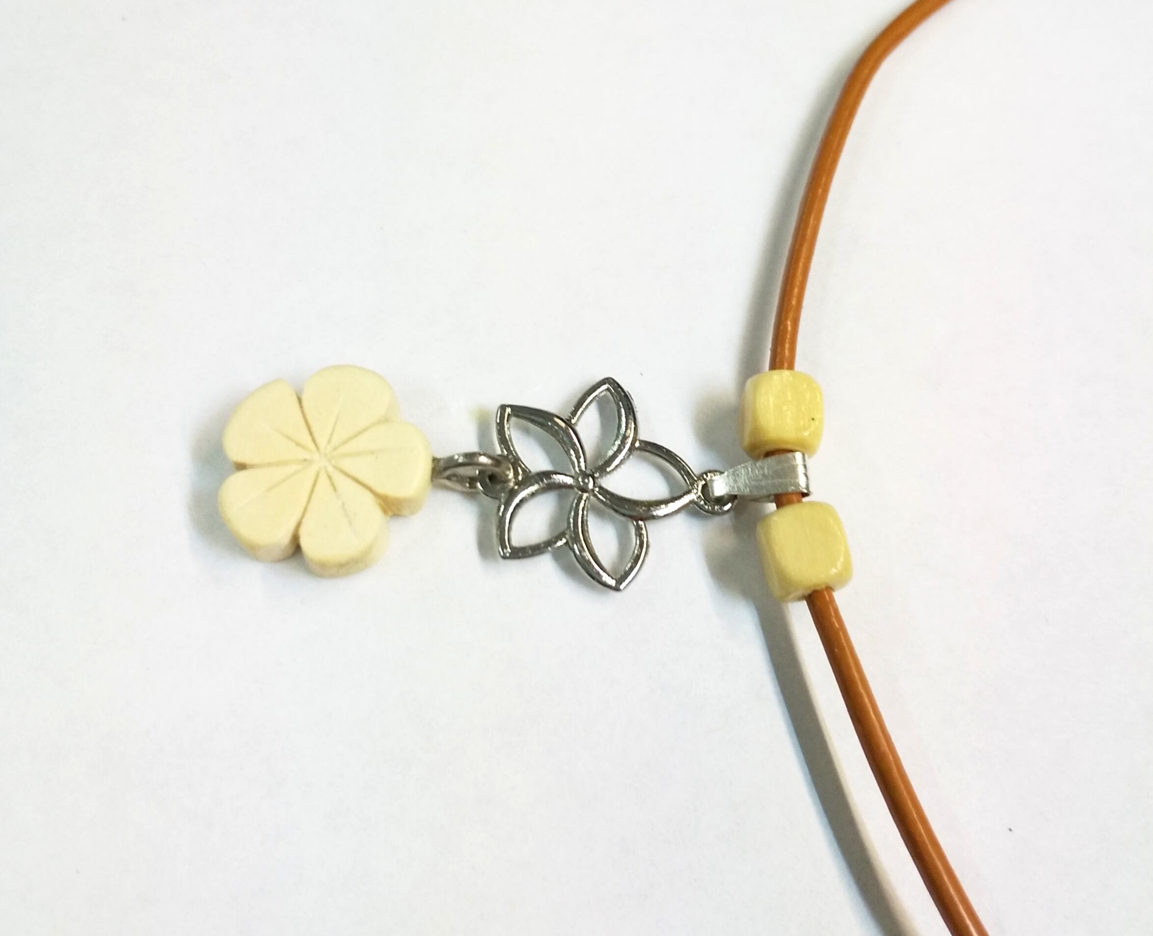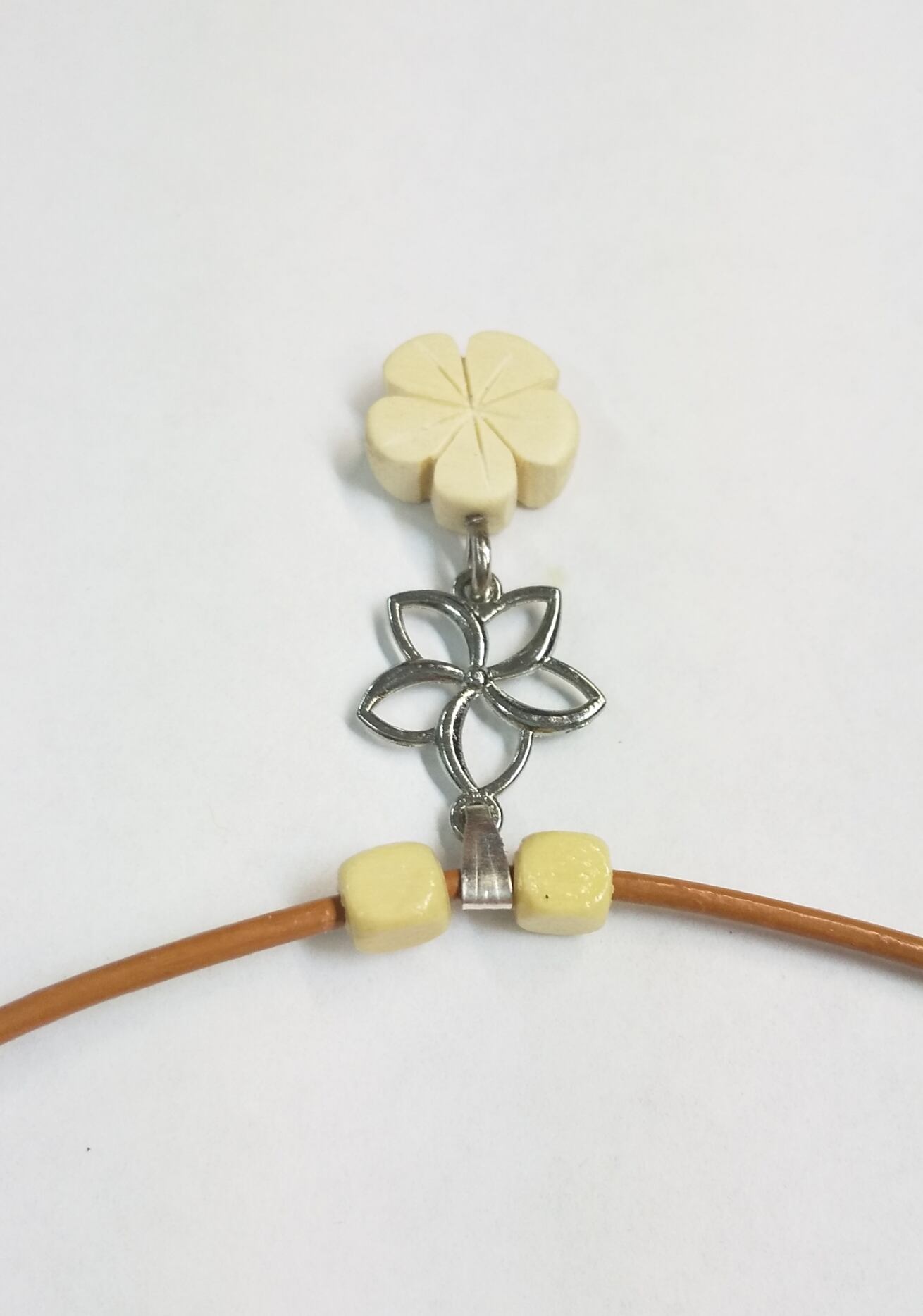 ハワイアンネックレス ホワイトウッド&シルバー プルメリア 本革紐 P-655