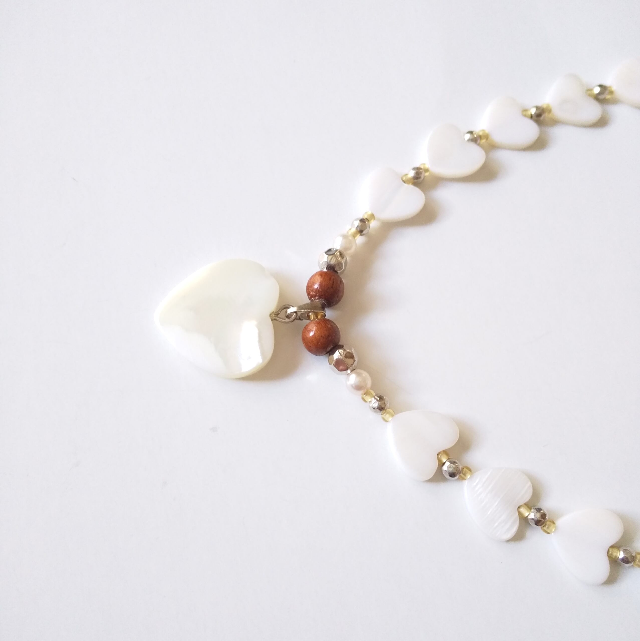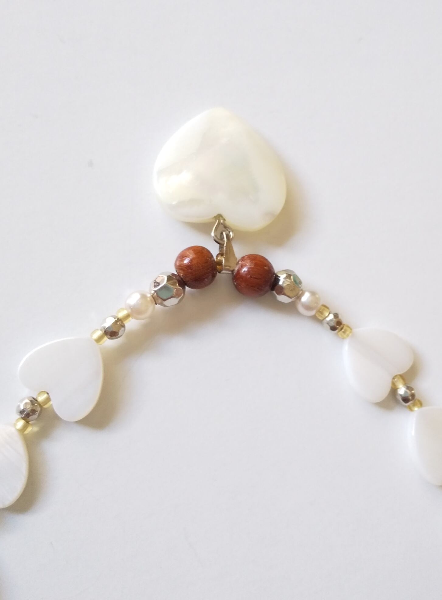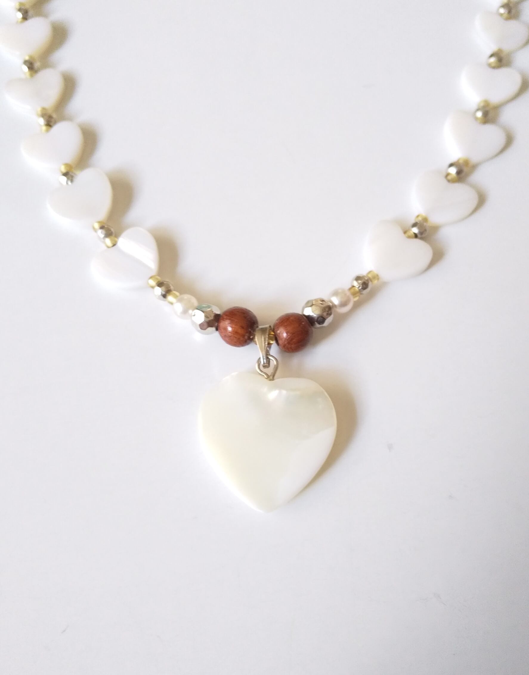ハワイアンネックレス 天然シェル ハートデザイン&ハートライン S-337
