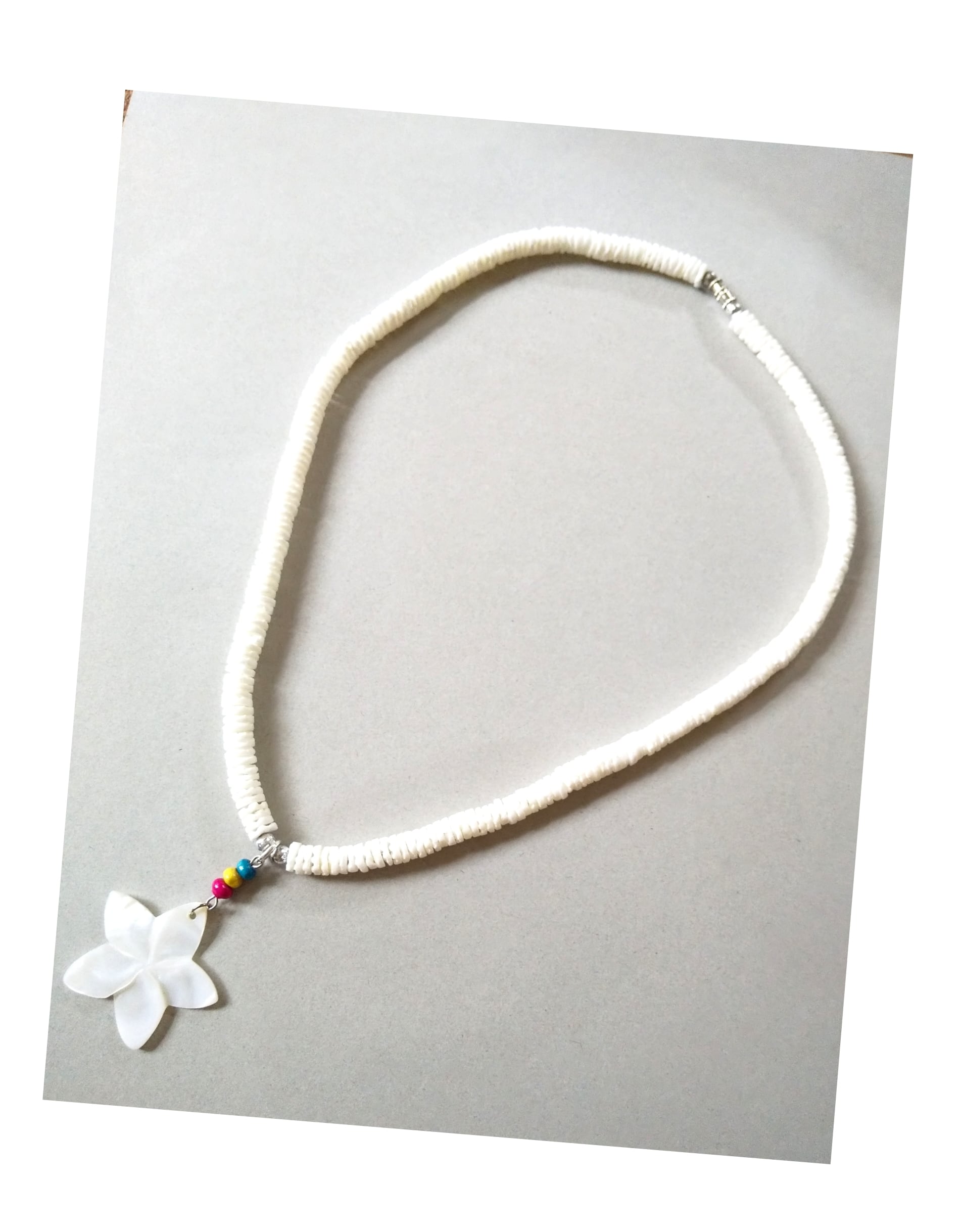 ハワイアンネックレス ホワイトシェルプルメリア&シェルビーズ P-656