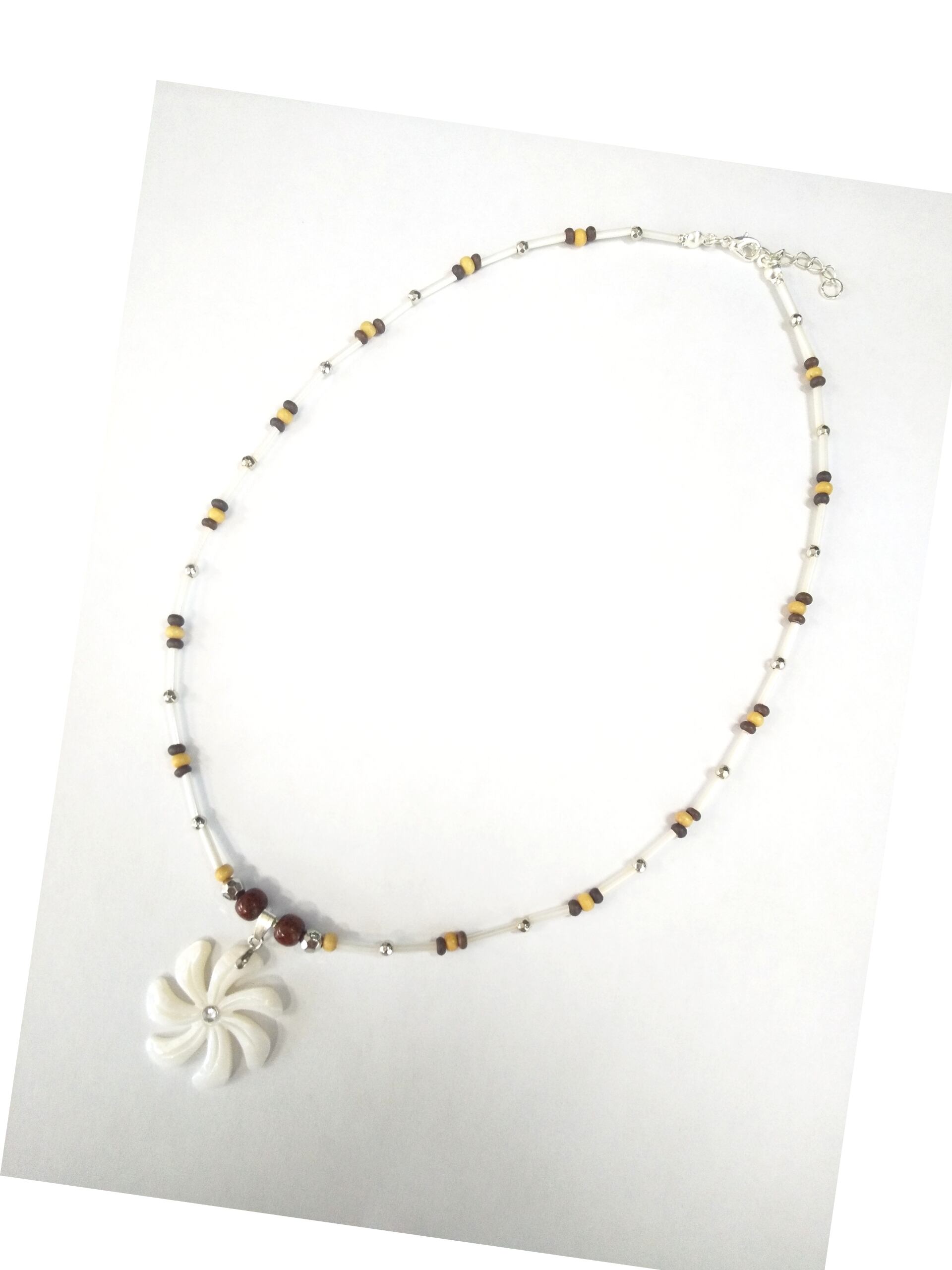 ハワイアンネックレス 天然シェルホワイトティアレ& ホワイトビーズ T-204