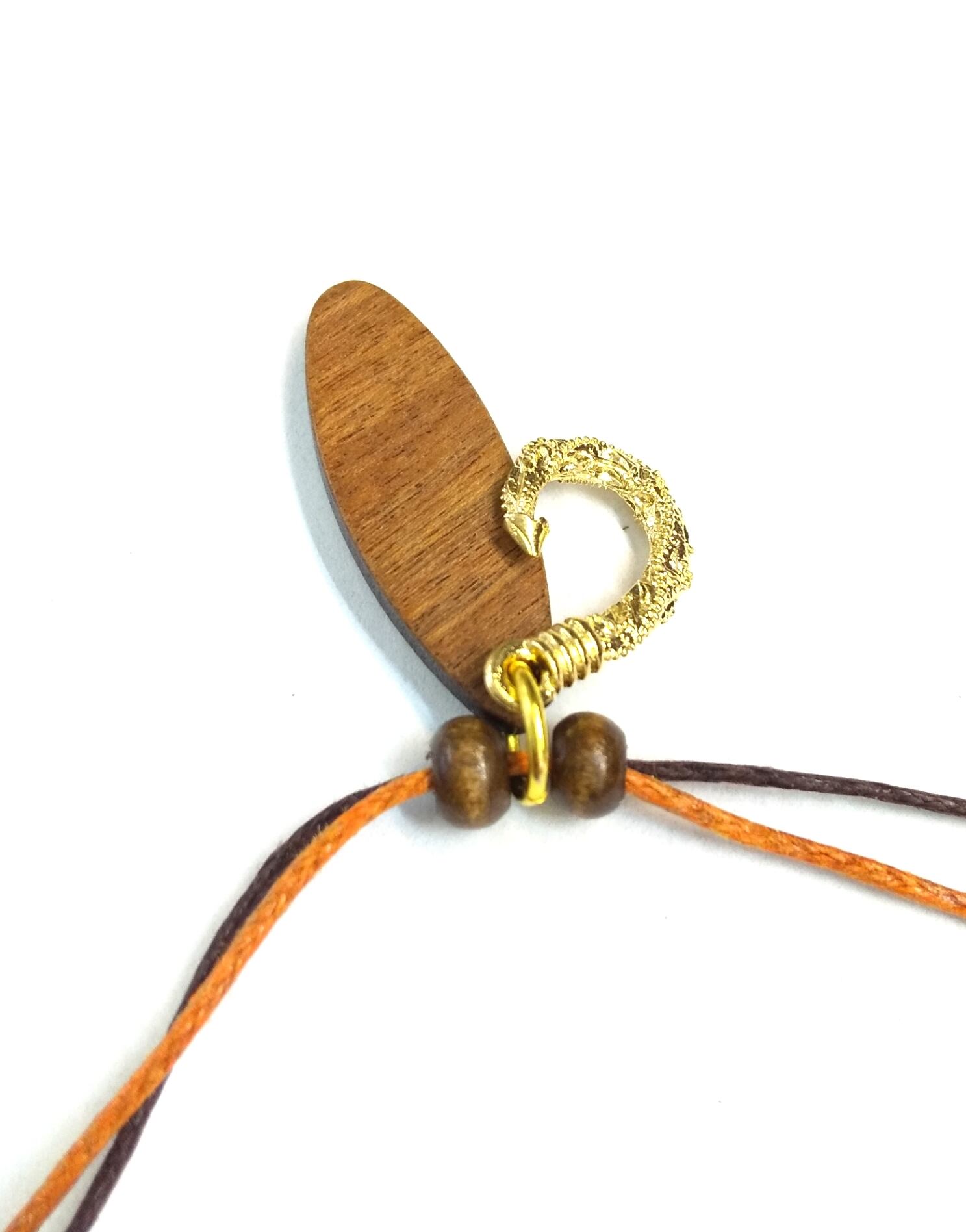 ハワイアンネックレス ゴールドカラー フィッシュフック &ウッドボード F-104
