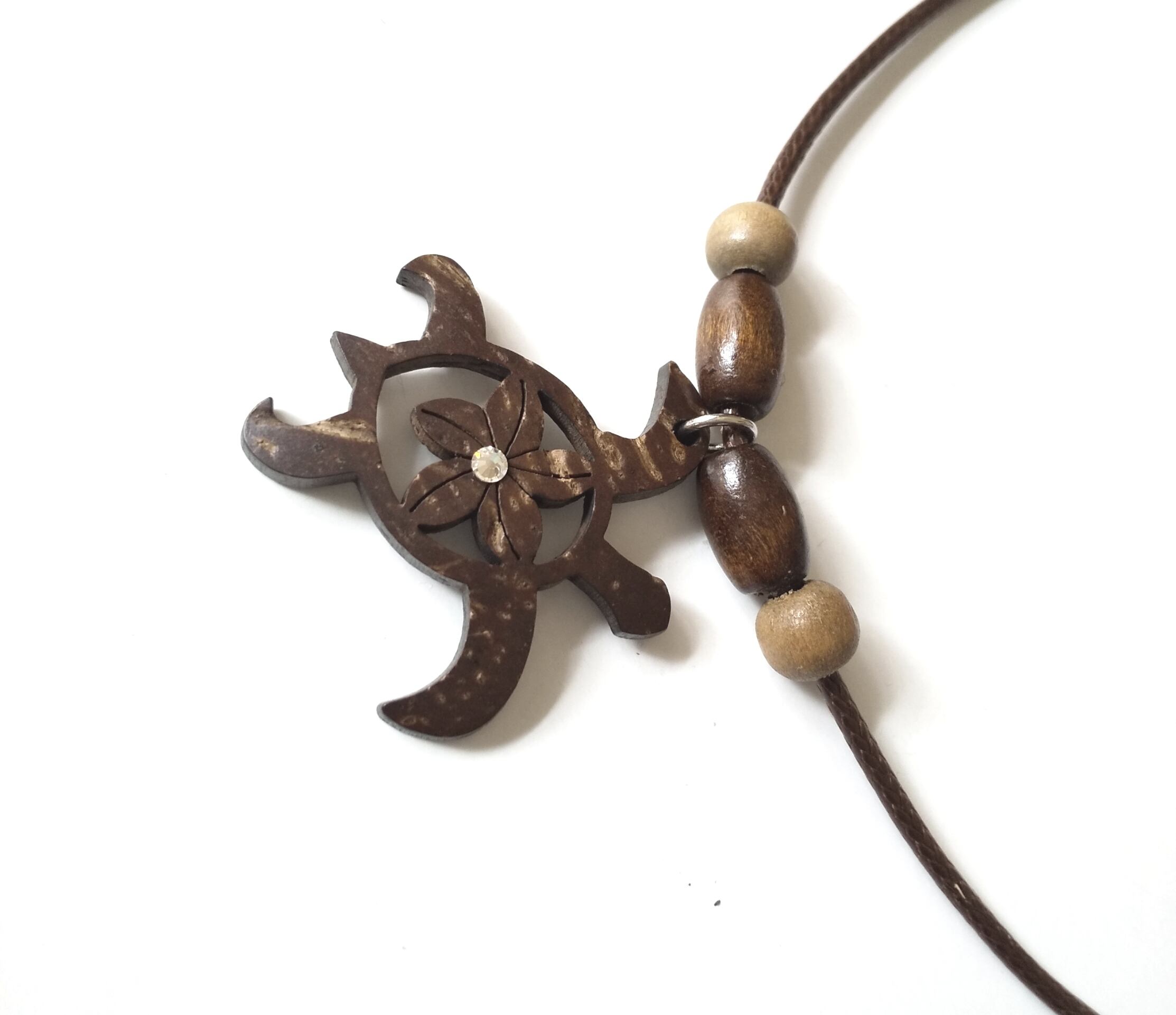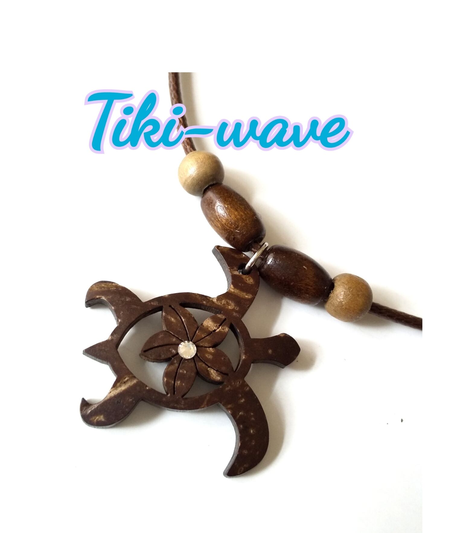 ハワイアンネックレス 椰子ウッド ブラウンホヌ& ナイロン紐 H-140
