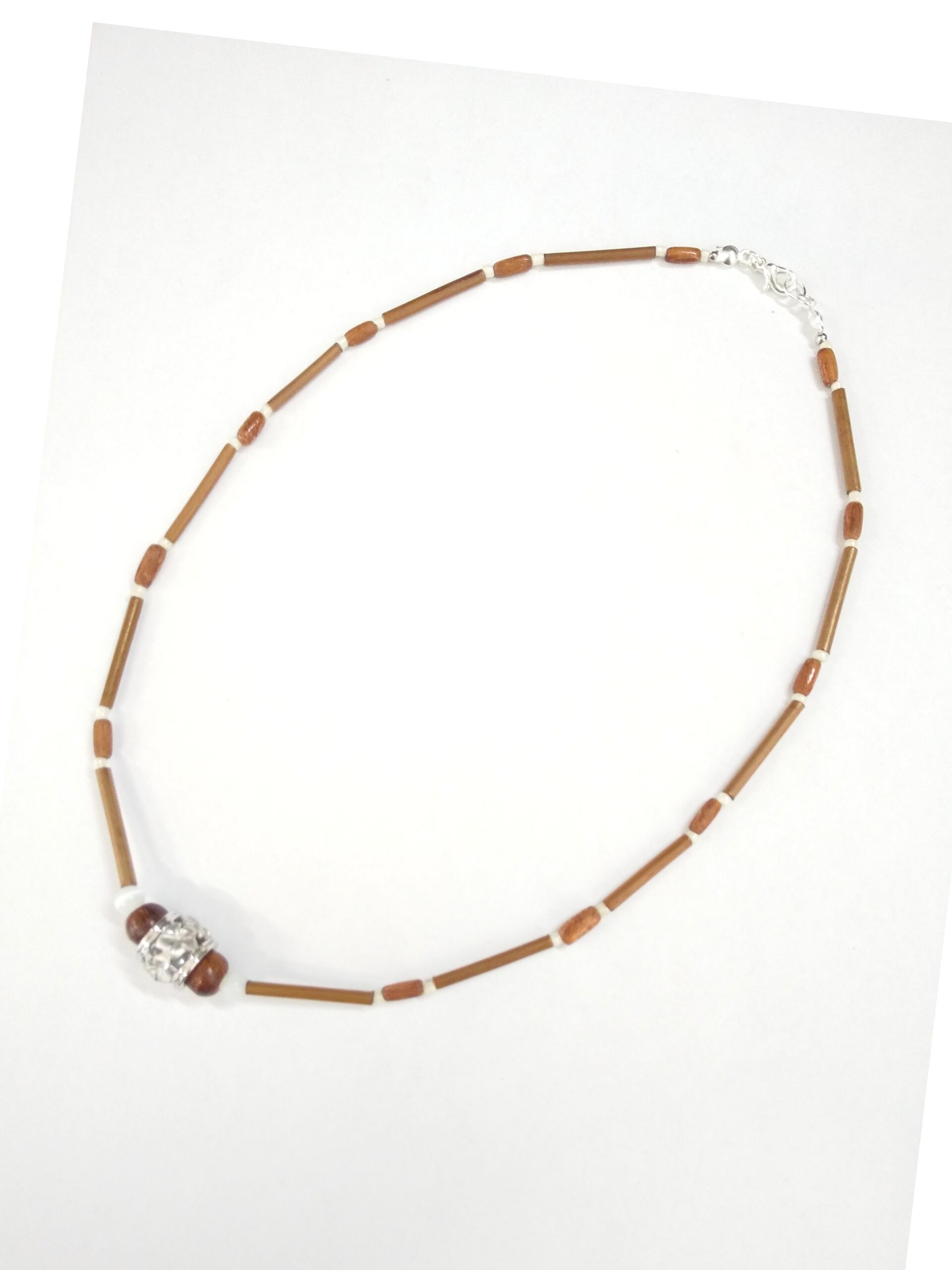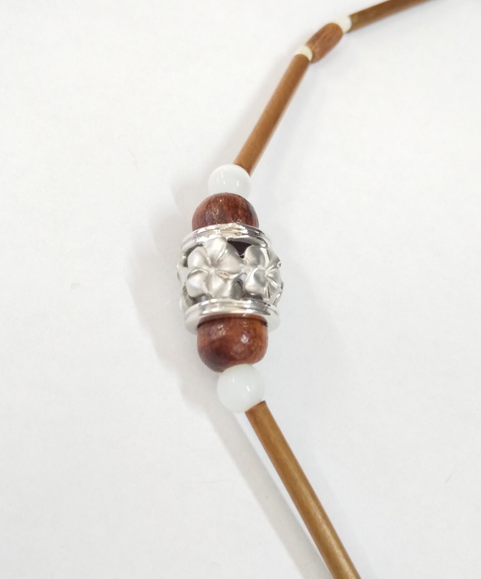 ハワイアンネックレス シルバーカラー樽プルメリア&ウッドライン P-663