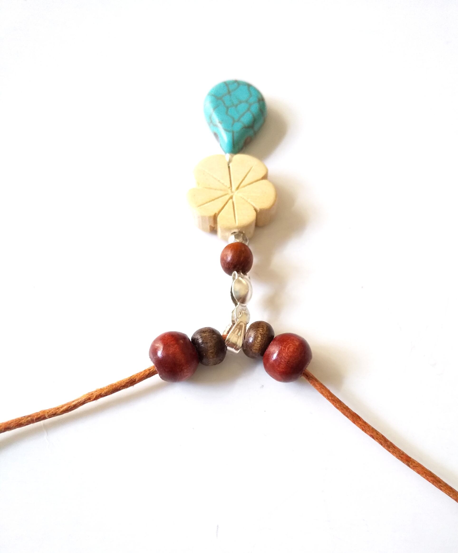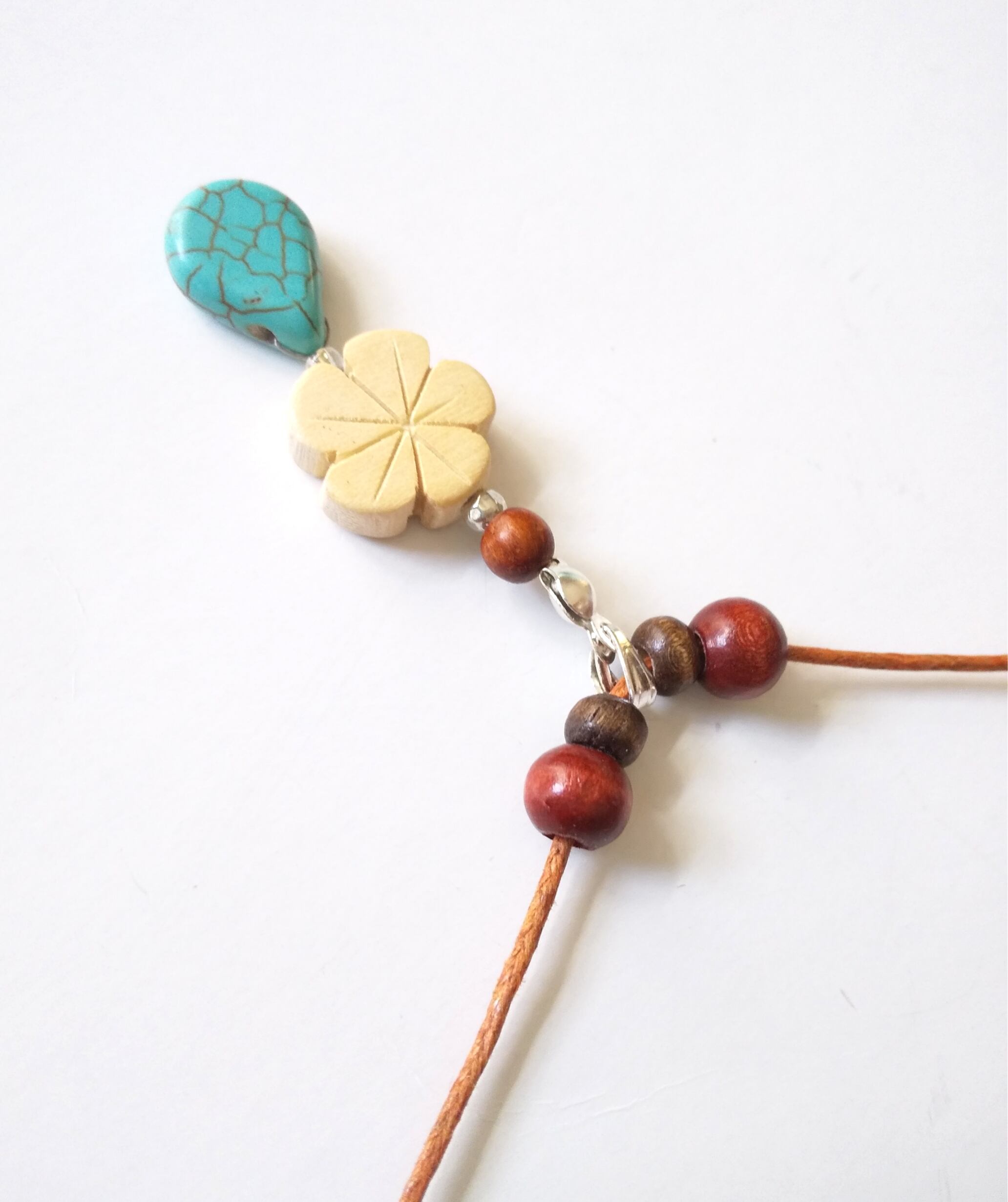 ハワイアンネックレス 天然ウッドプルメリア&ドロップターコイズ T-878