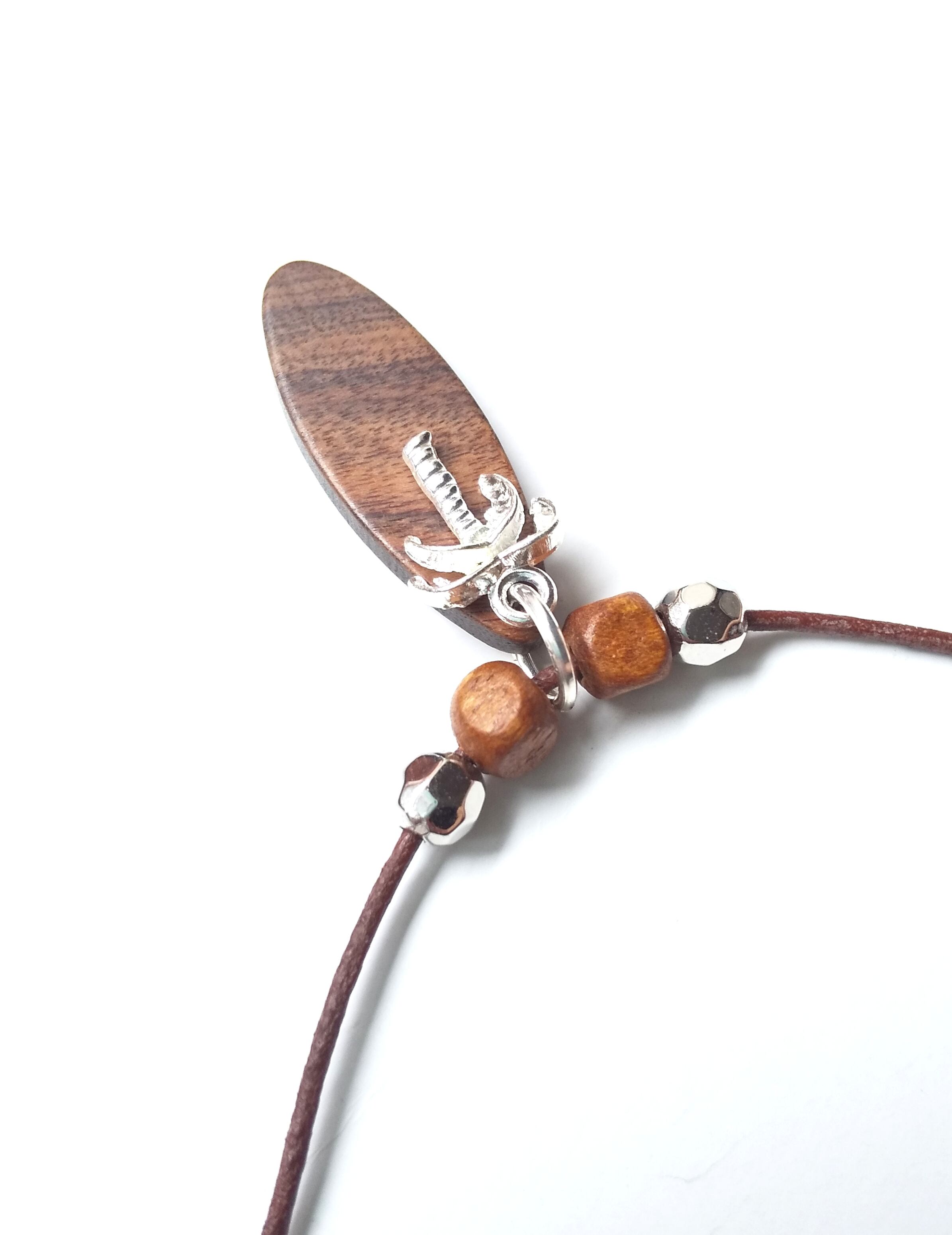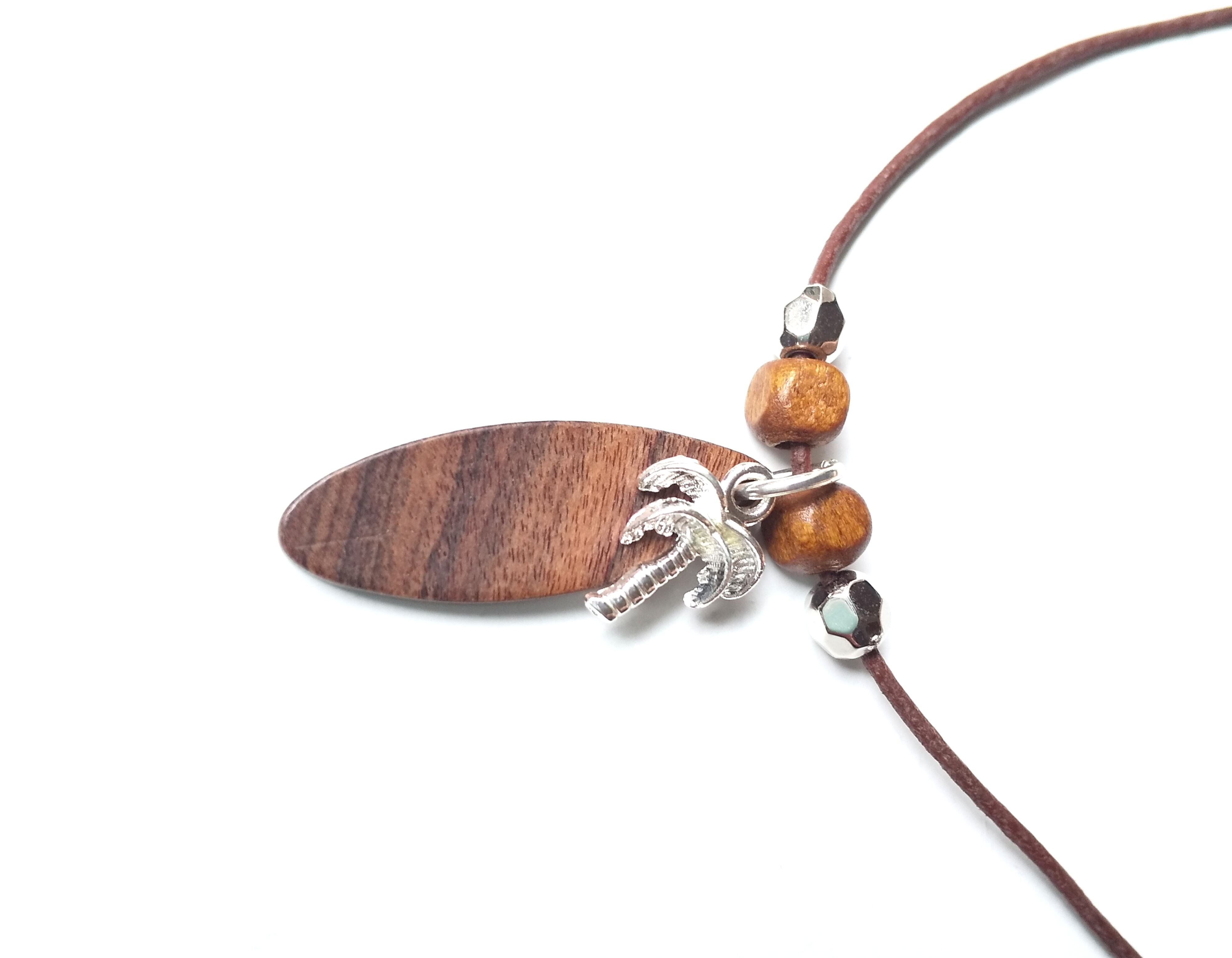 ハワイアンネックレス ブラウンウッドオーバルボード& シルバー椰子 B-319