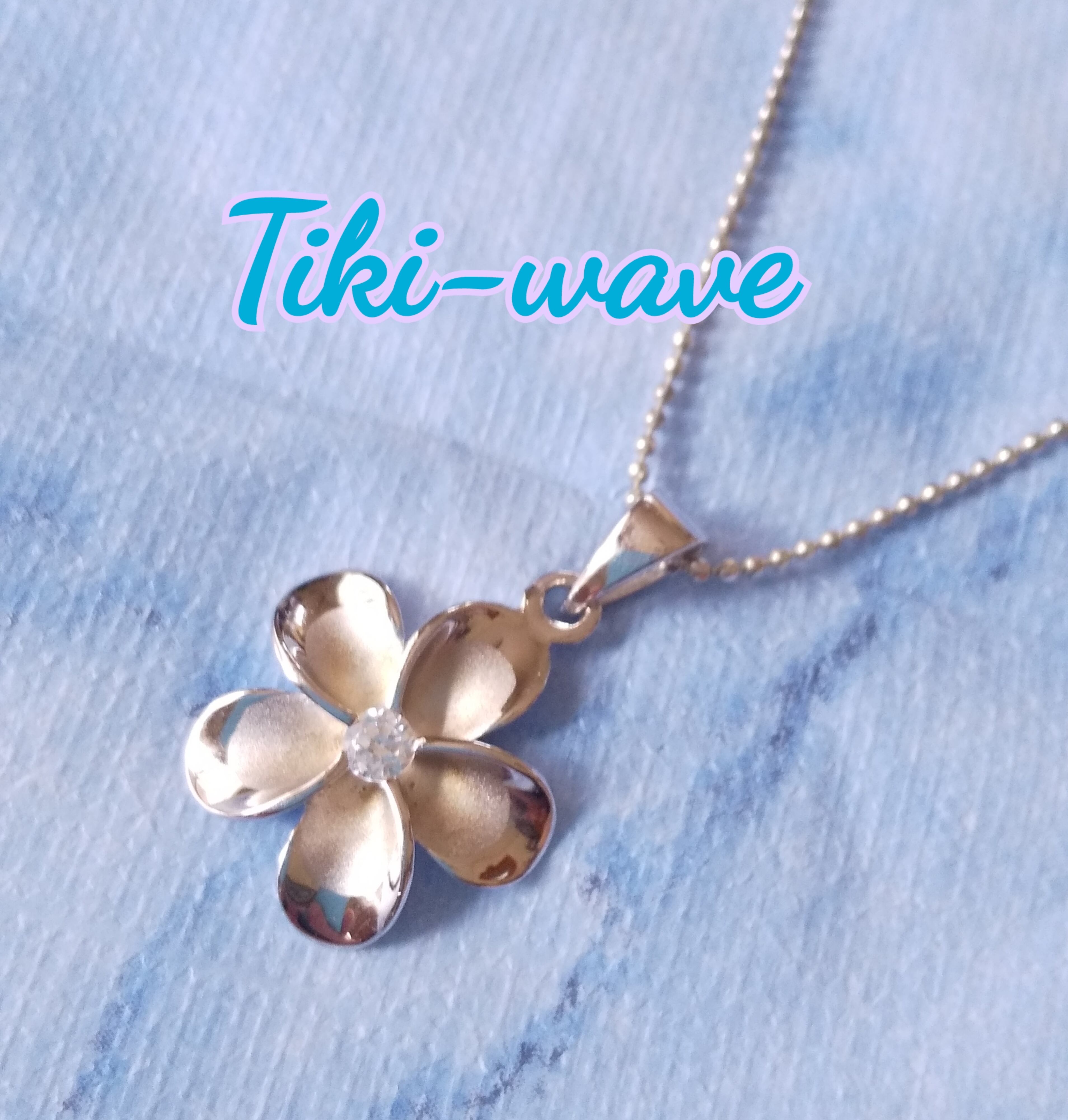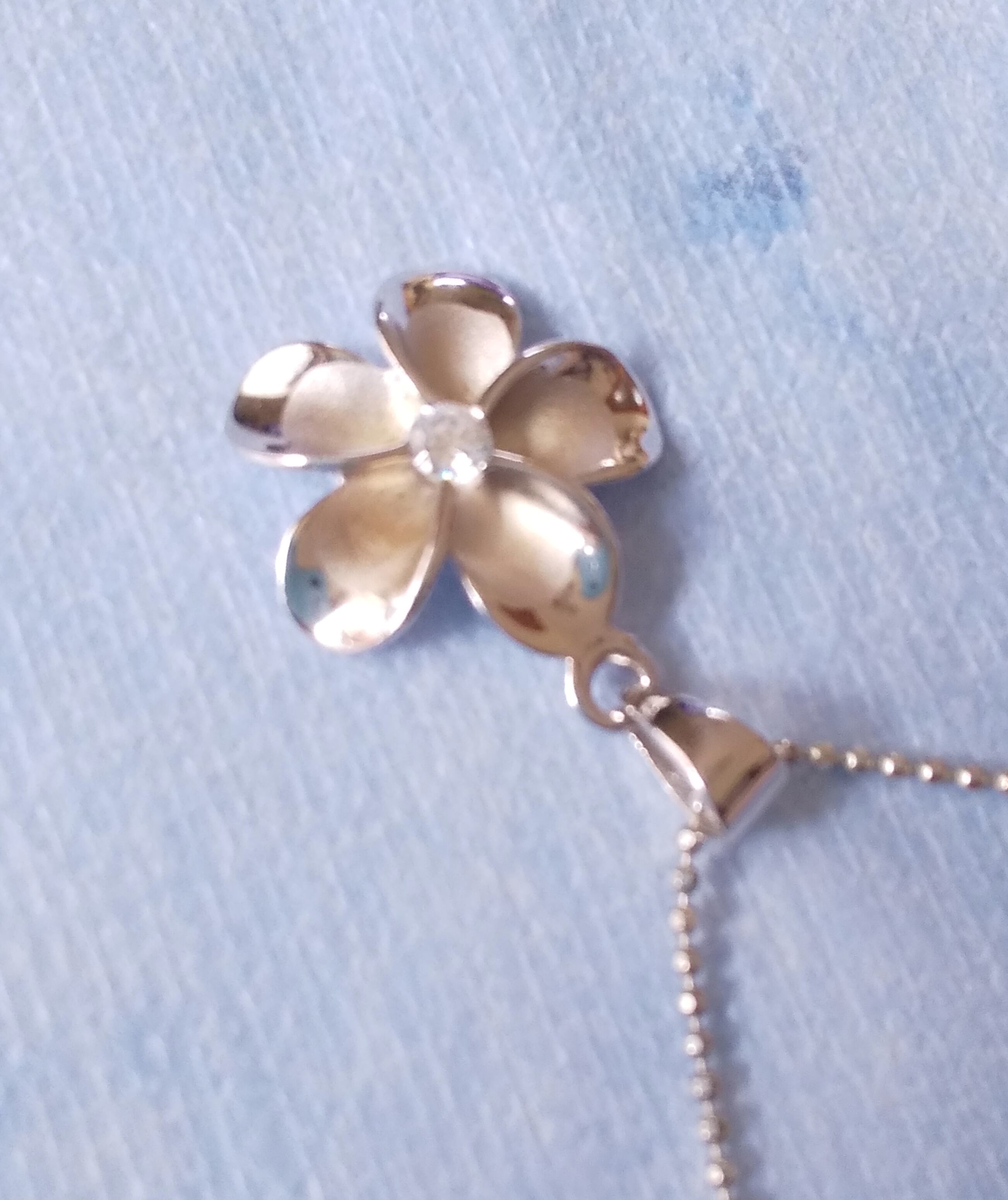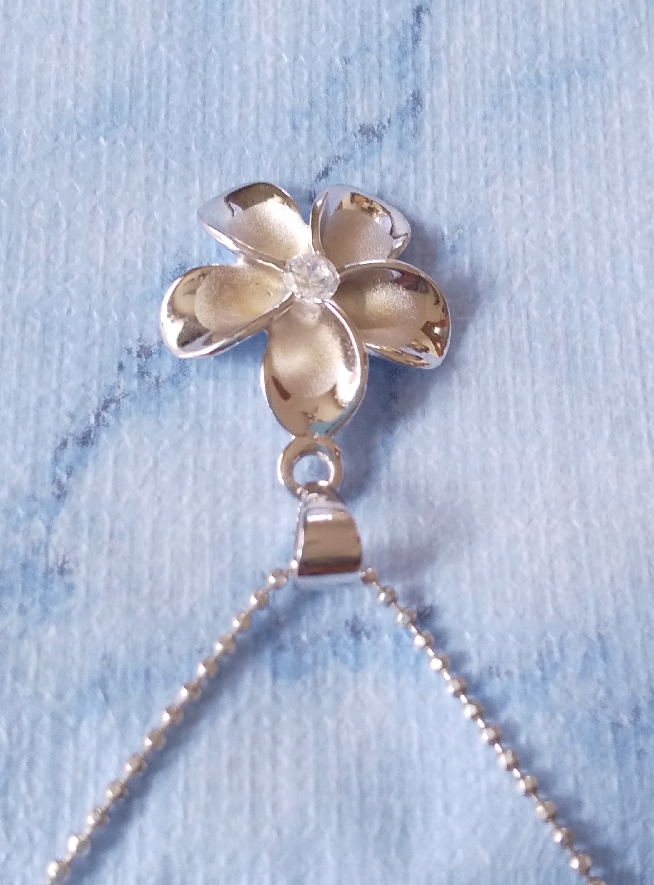 ハワイアンネックレス シルバー925プルメリア &クリアCZ P-665