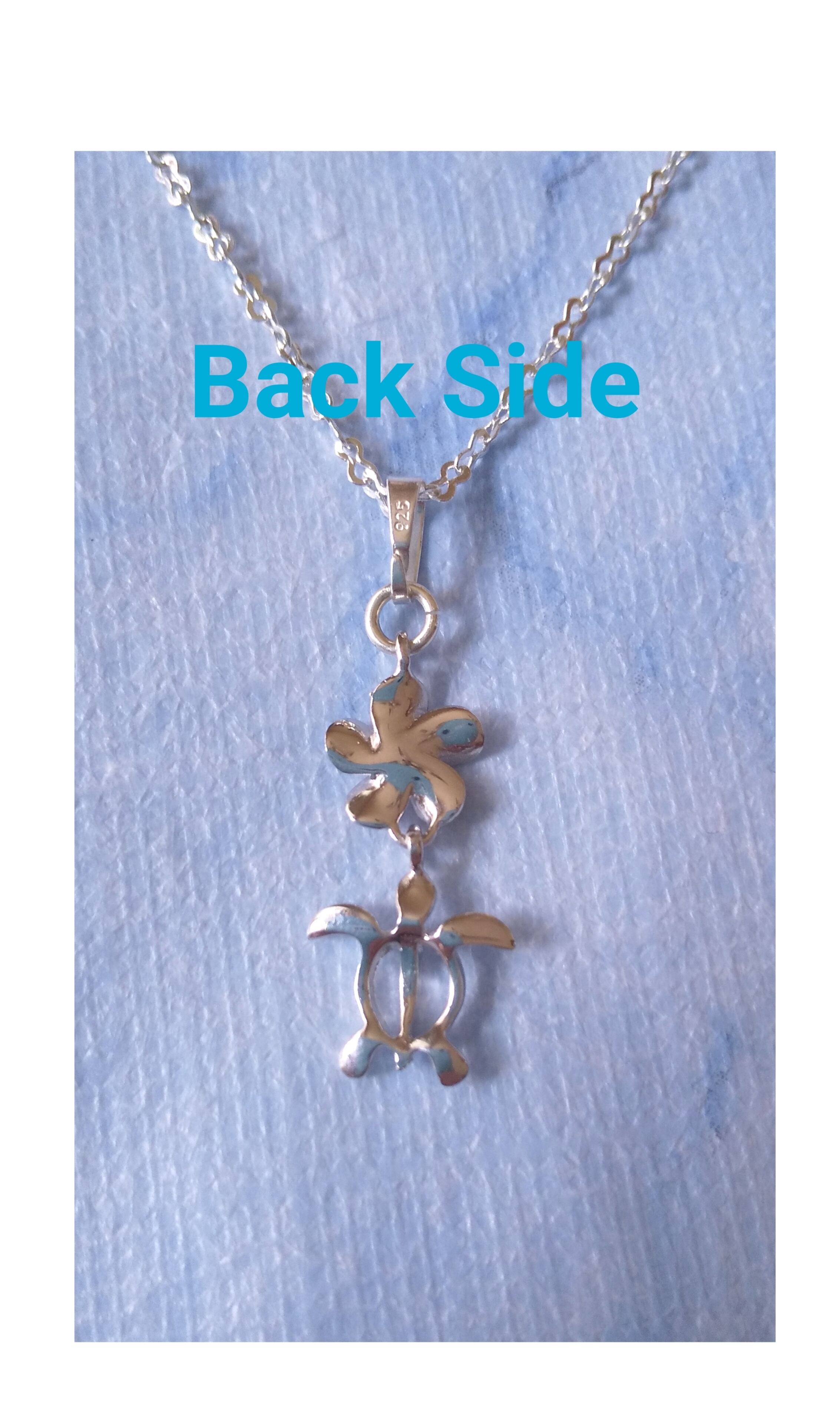ハワイアンネックレス シルバー925プルメリア& ホヌ クリアCZ H-143