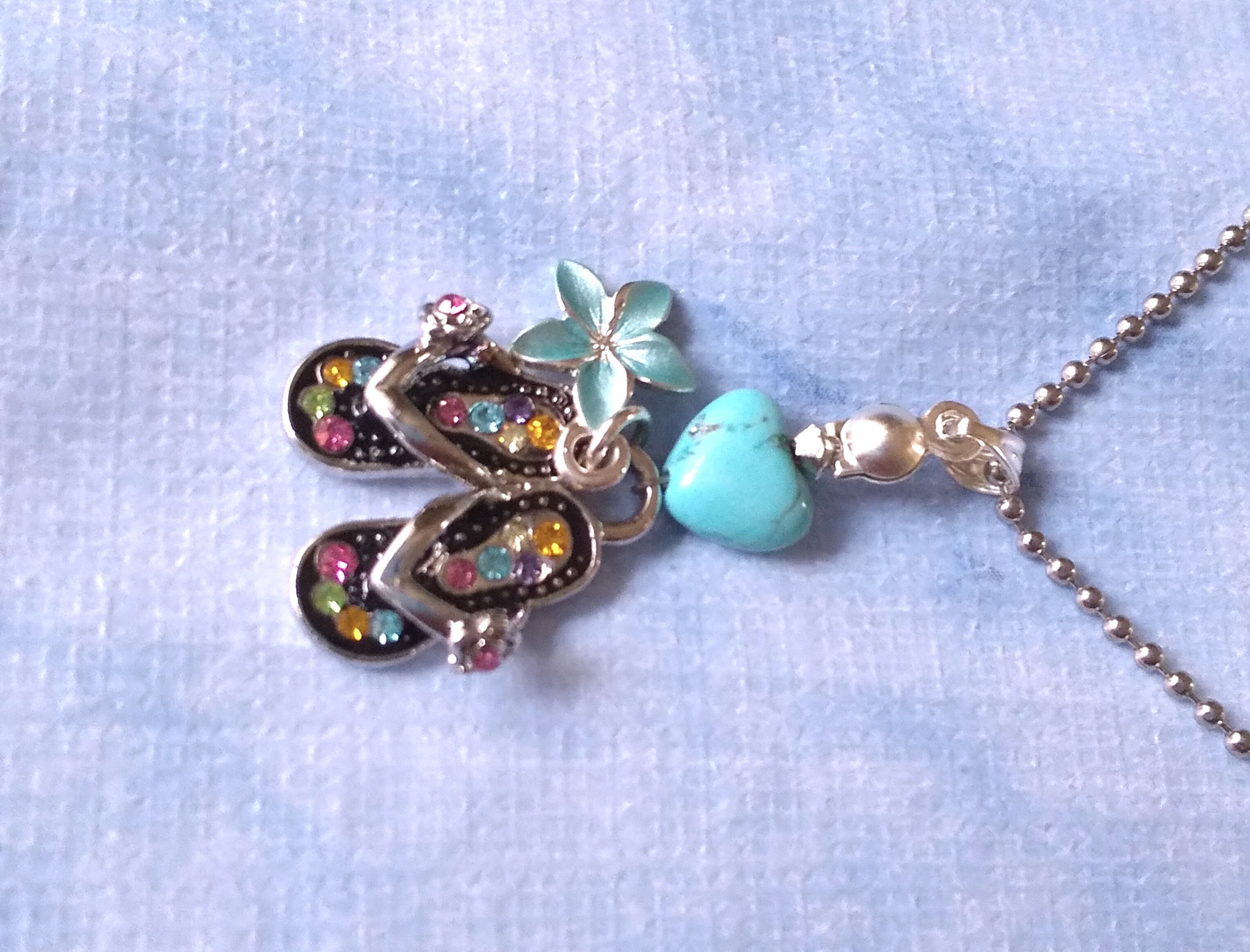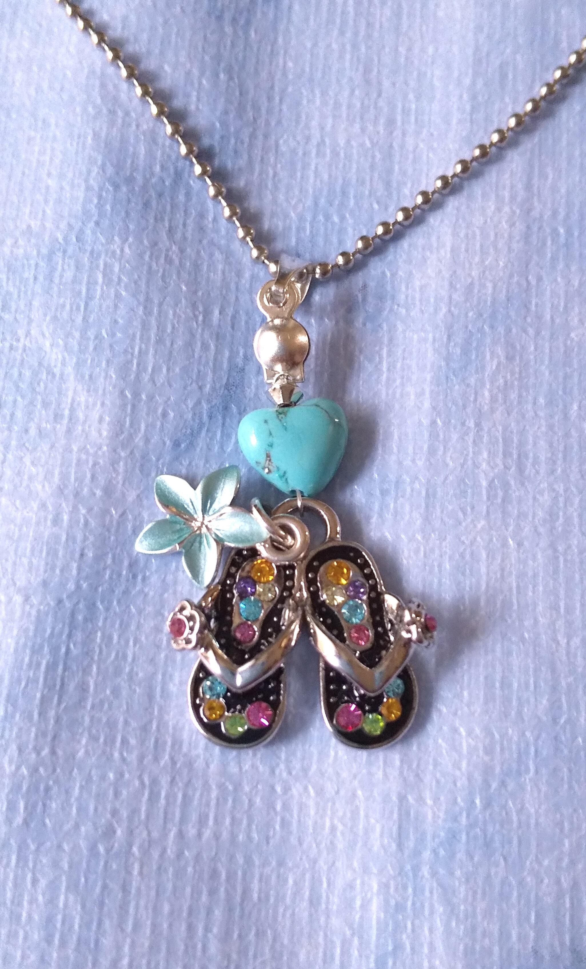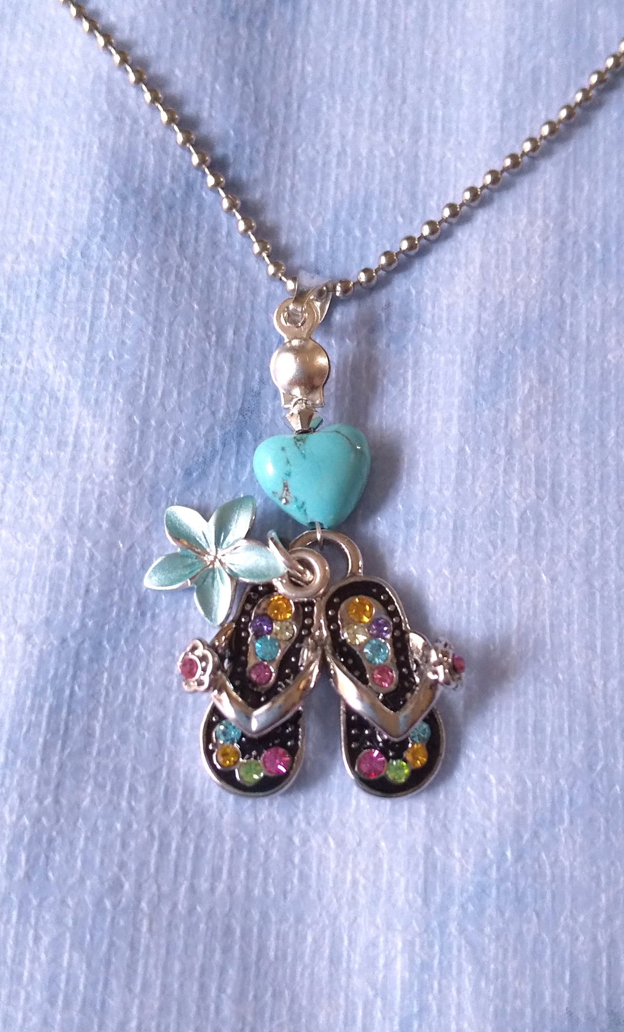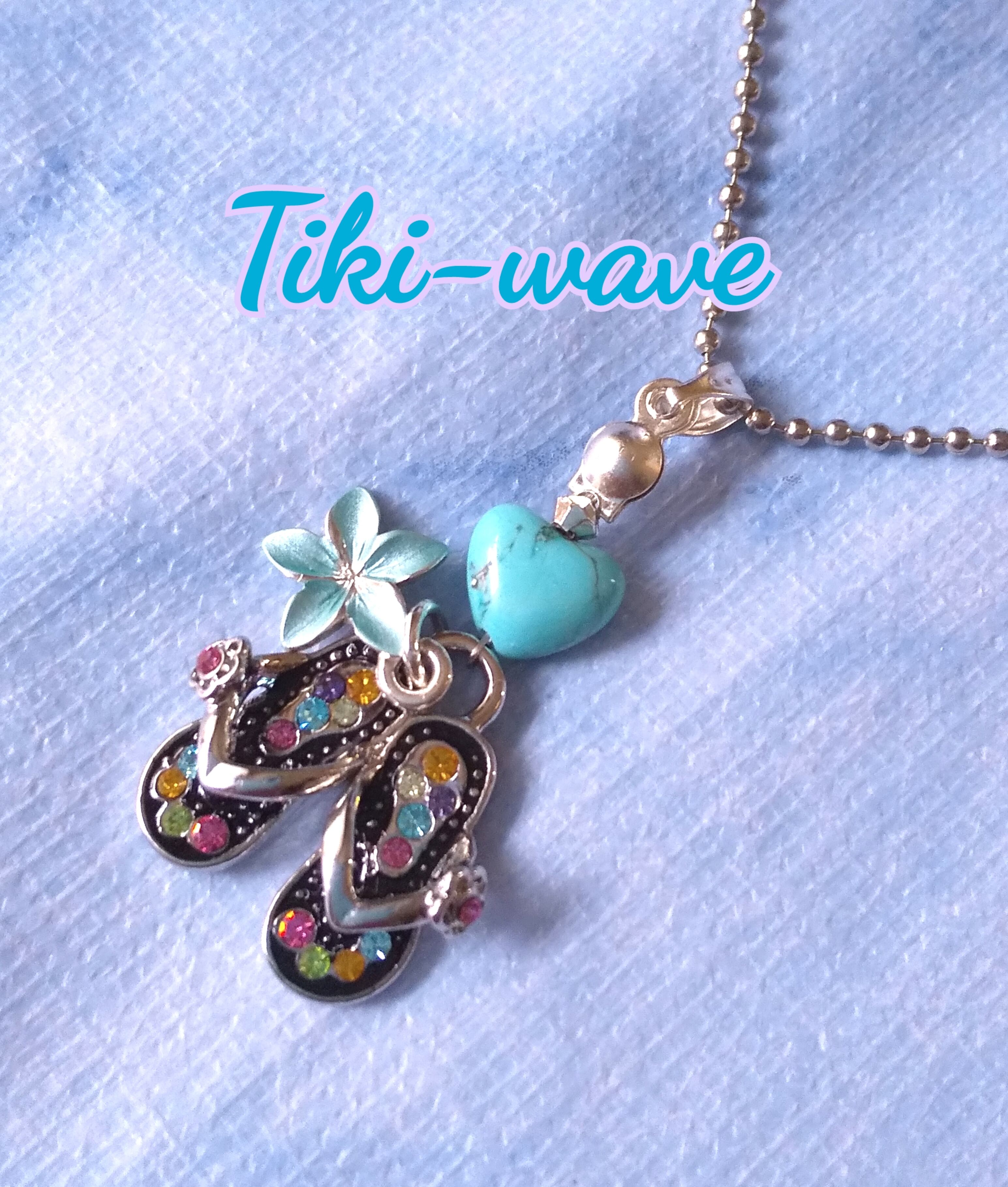 ハワイアンネックレス ブラックWサンダル&ハートターコイズ D-405