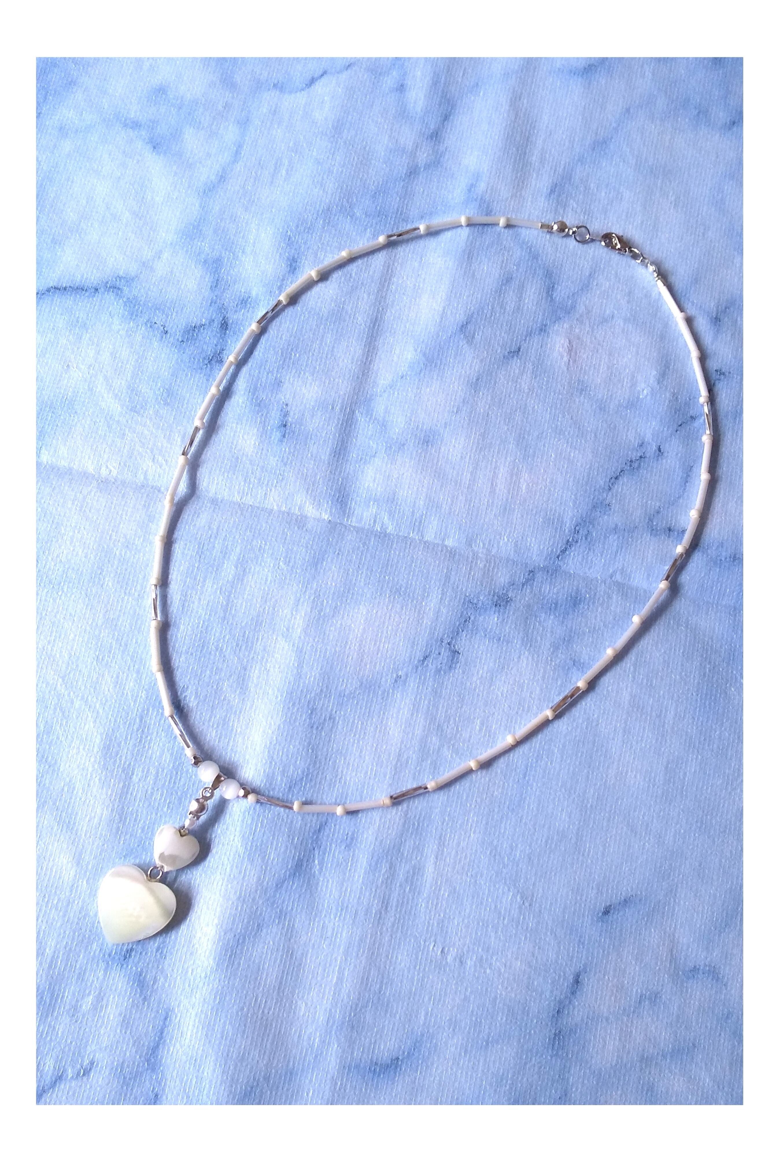 ハワイアンネックレス 天然シェル 2連ハート ホワイトシェル S-346