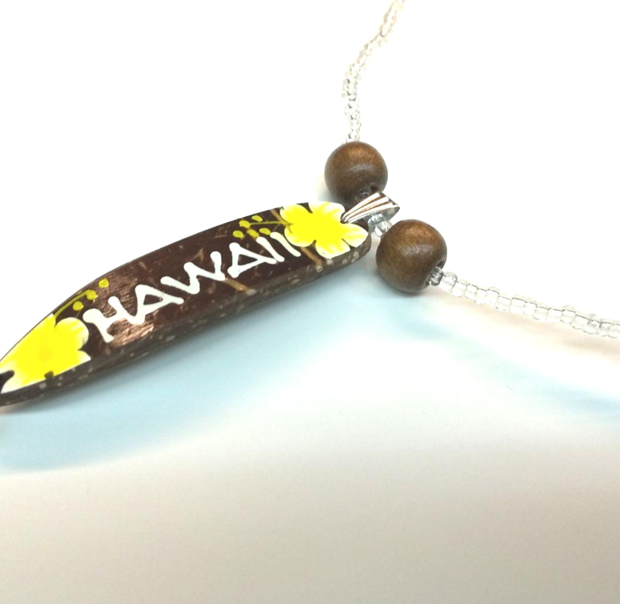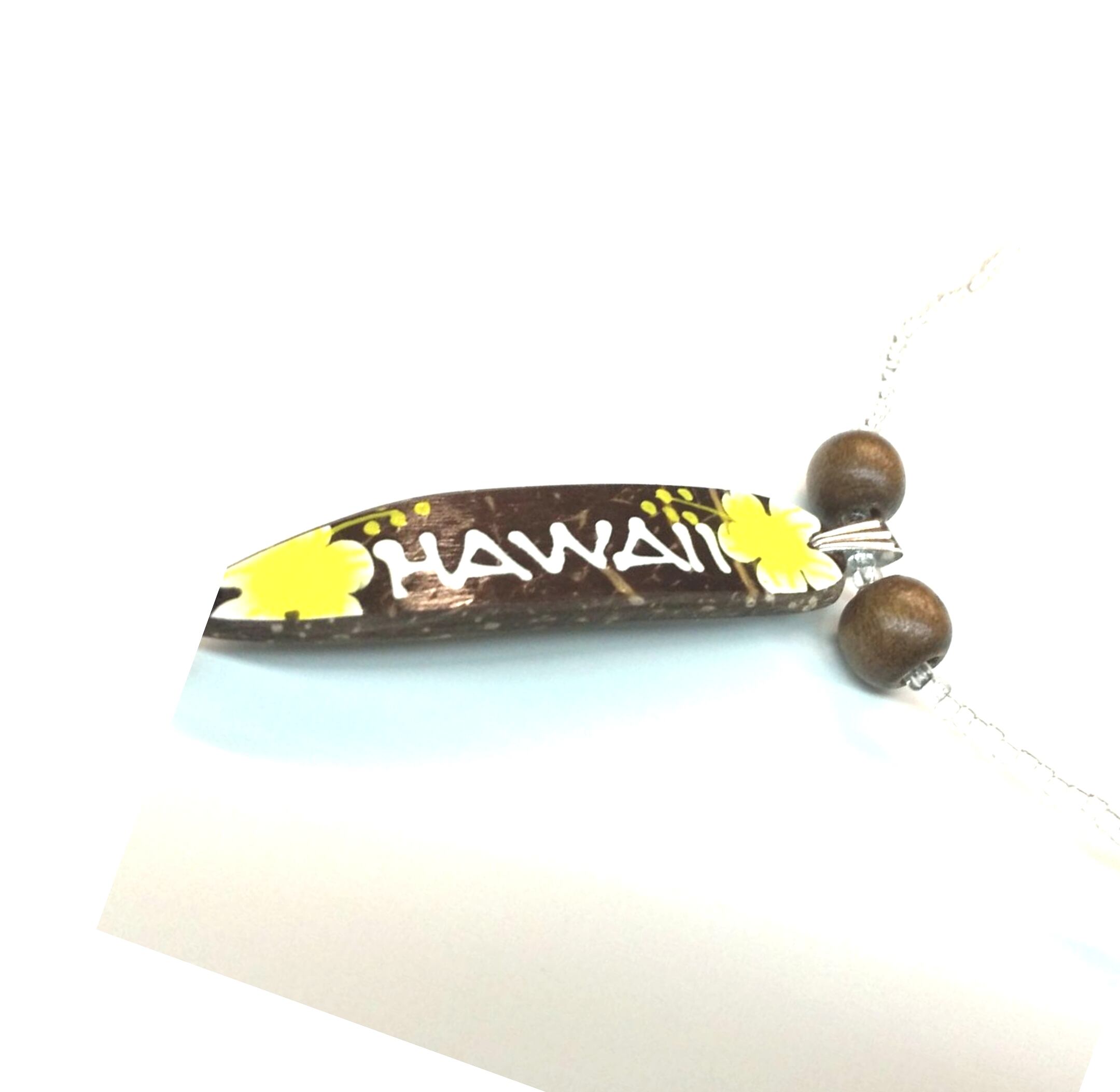 ハワイアンネックレス 椰子ウッド サーフボード &ハイビスカス U-411